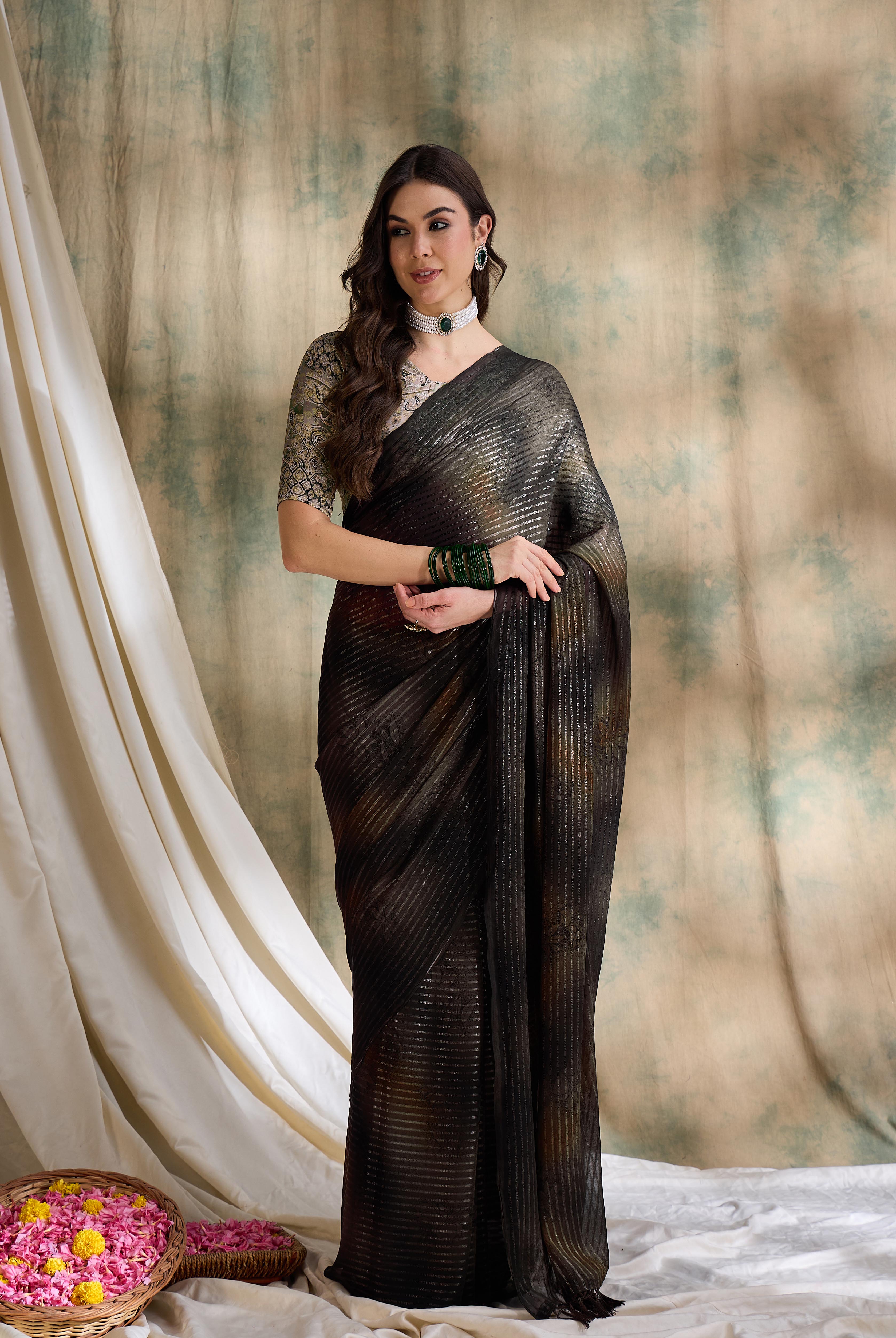 AASTHA FASHION Fashion Dream Womens Coffee Brown Sparkle Lining Saree | Soft & Elegant Traditional Wear