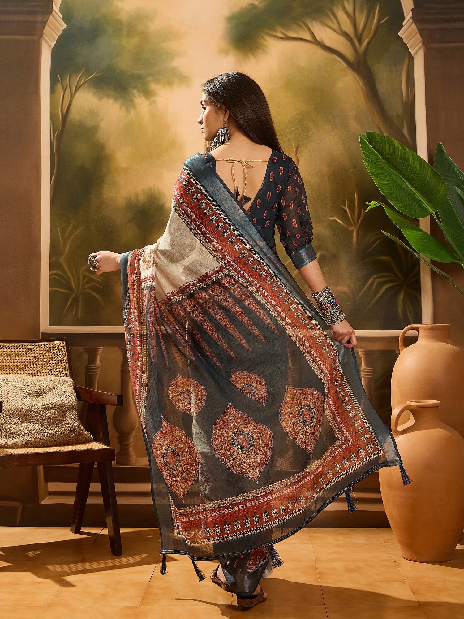 • Saree Fabric-Linen Cotton Blend ,Blouse Fabric-Linen Cotton Blend