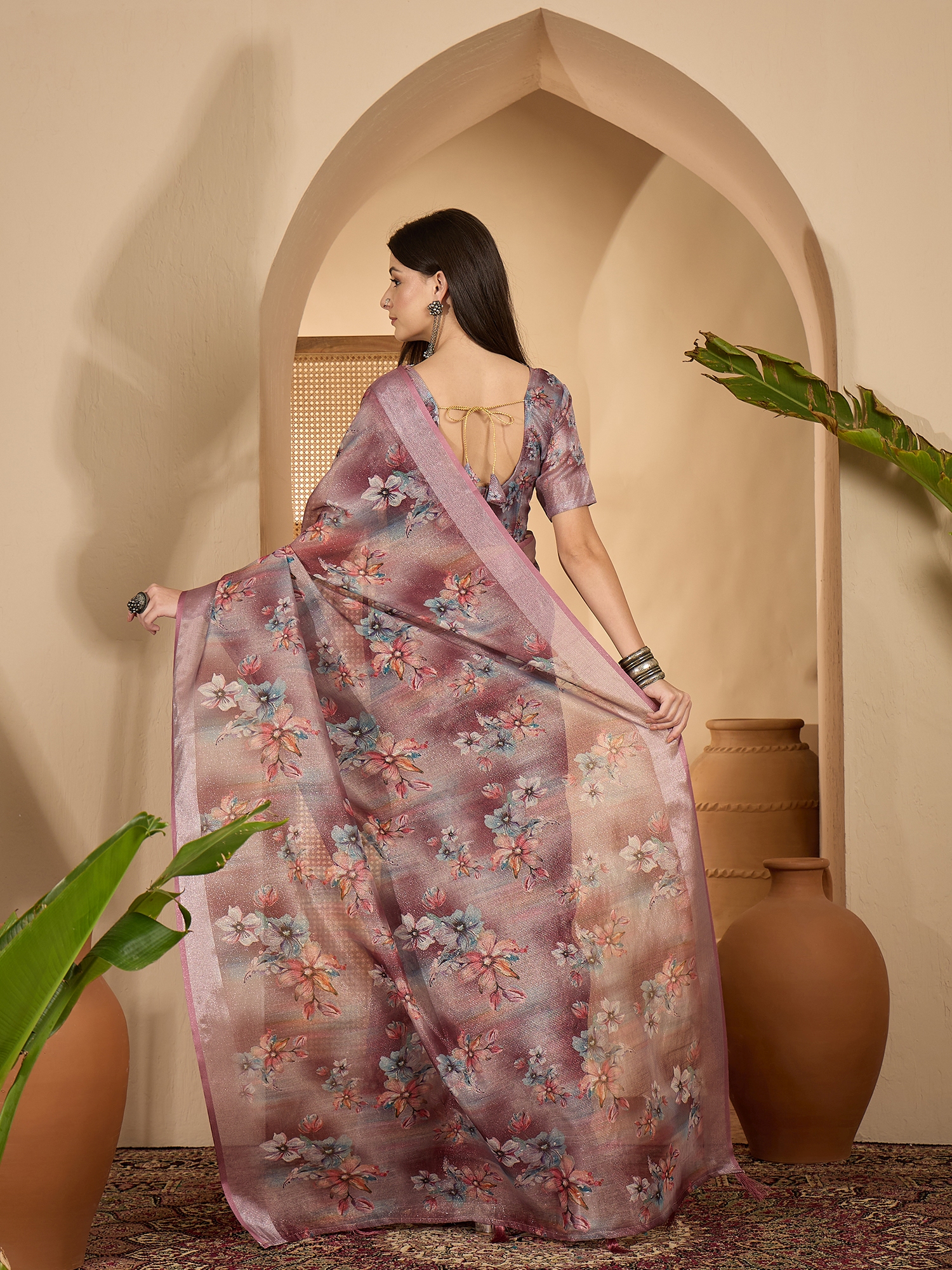 • Saree Work-Digital Print ,Blouse Work- Linen Zari Gold