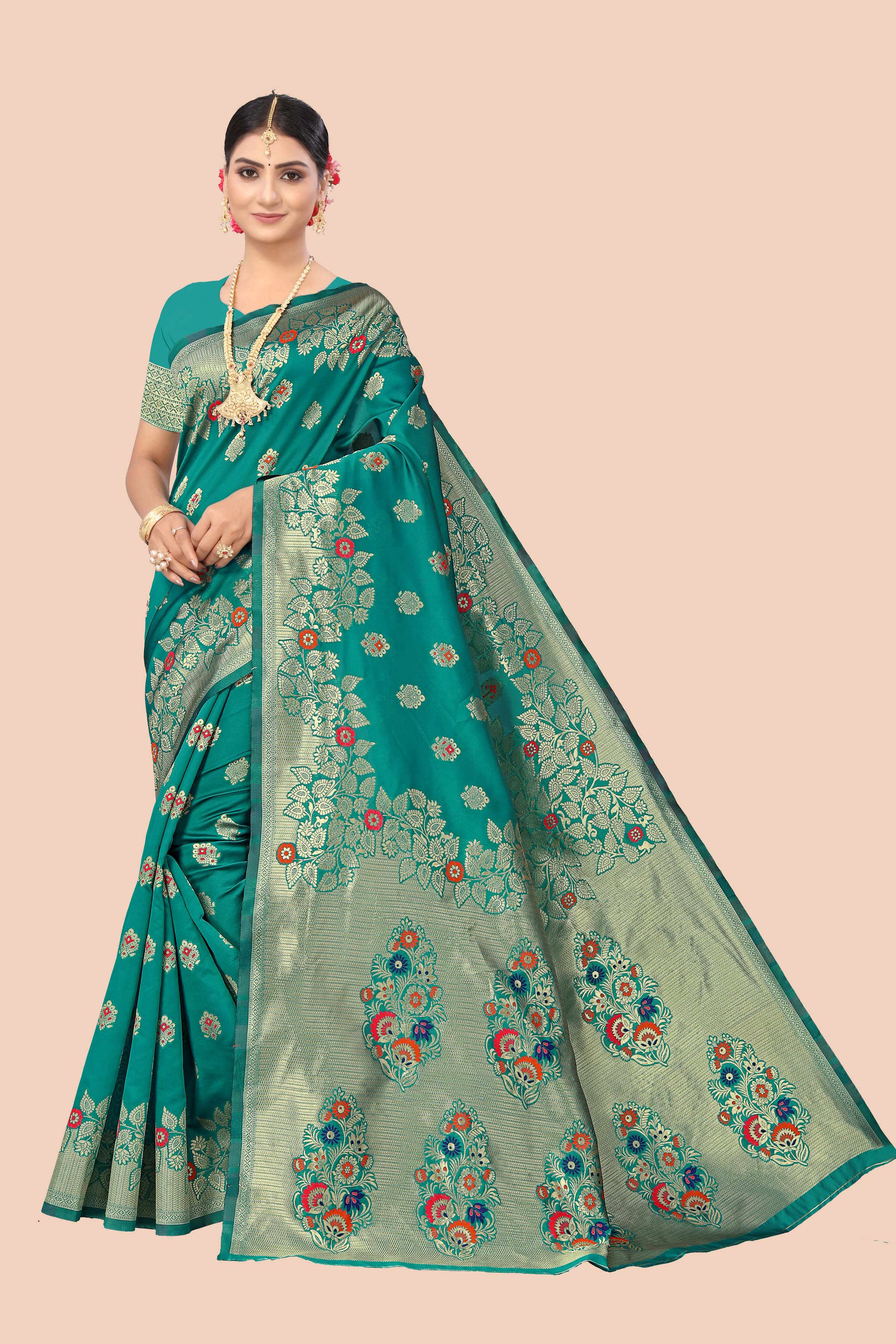 AASTHA FASHION Fashion Dream Womens Green Banarasi Silk Saree | Soft & Elegant Traditional Wear