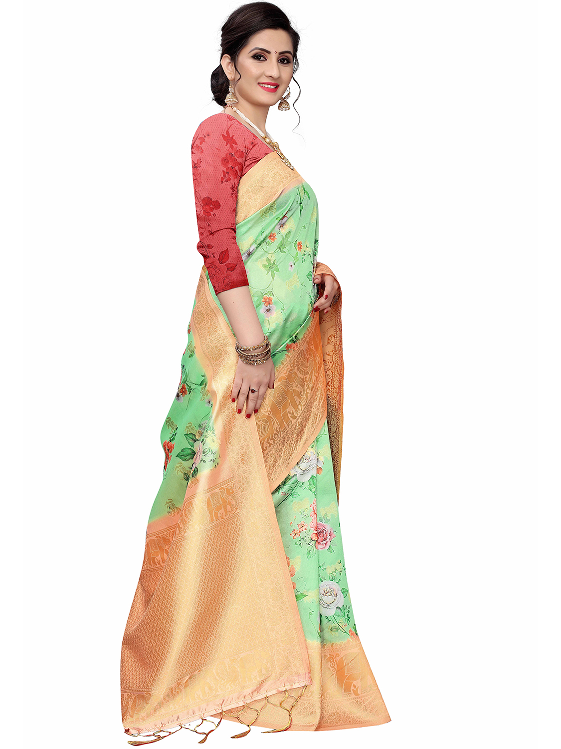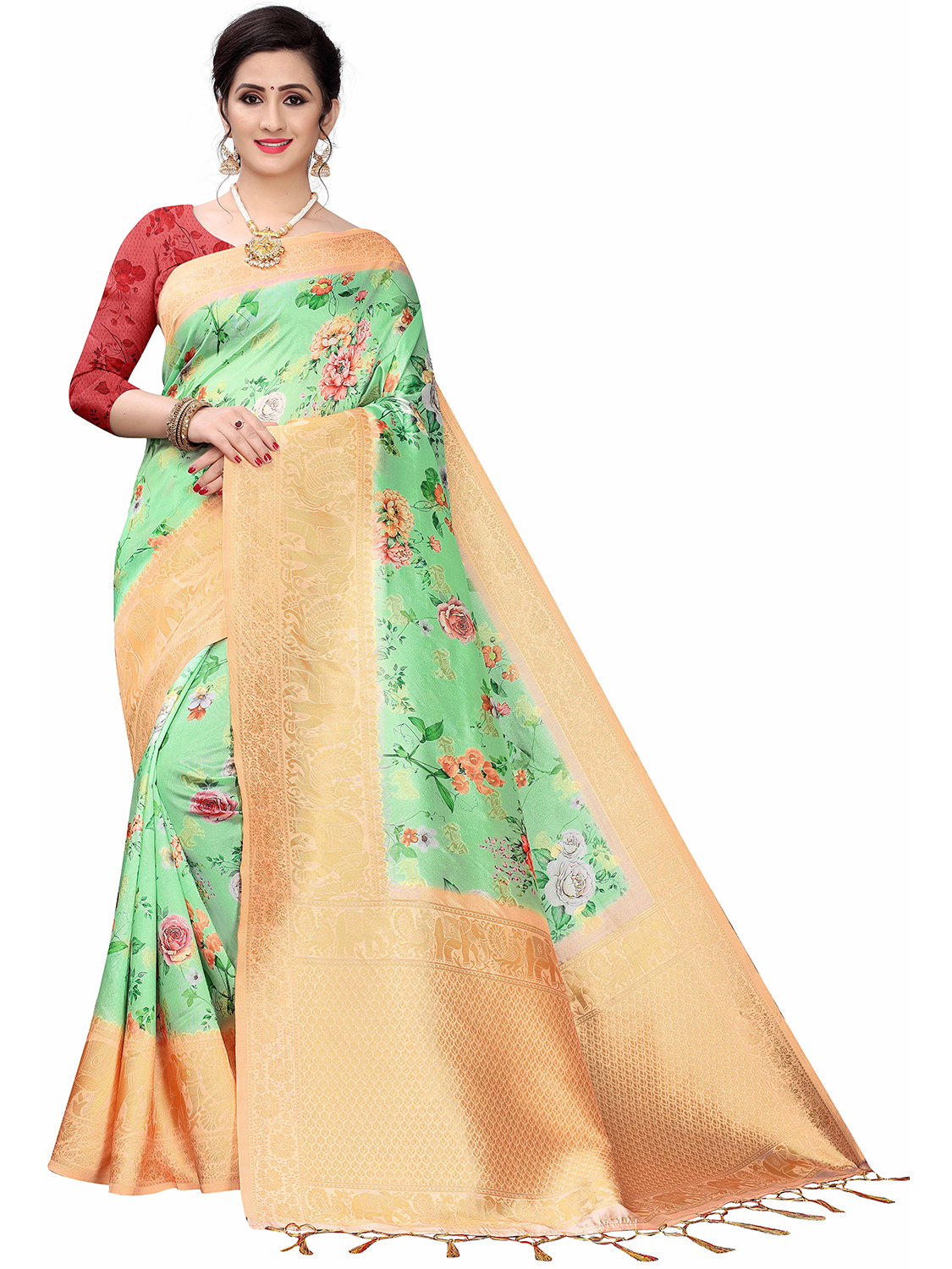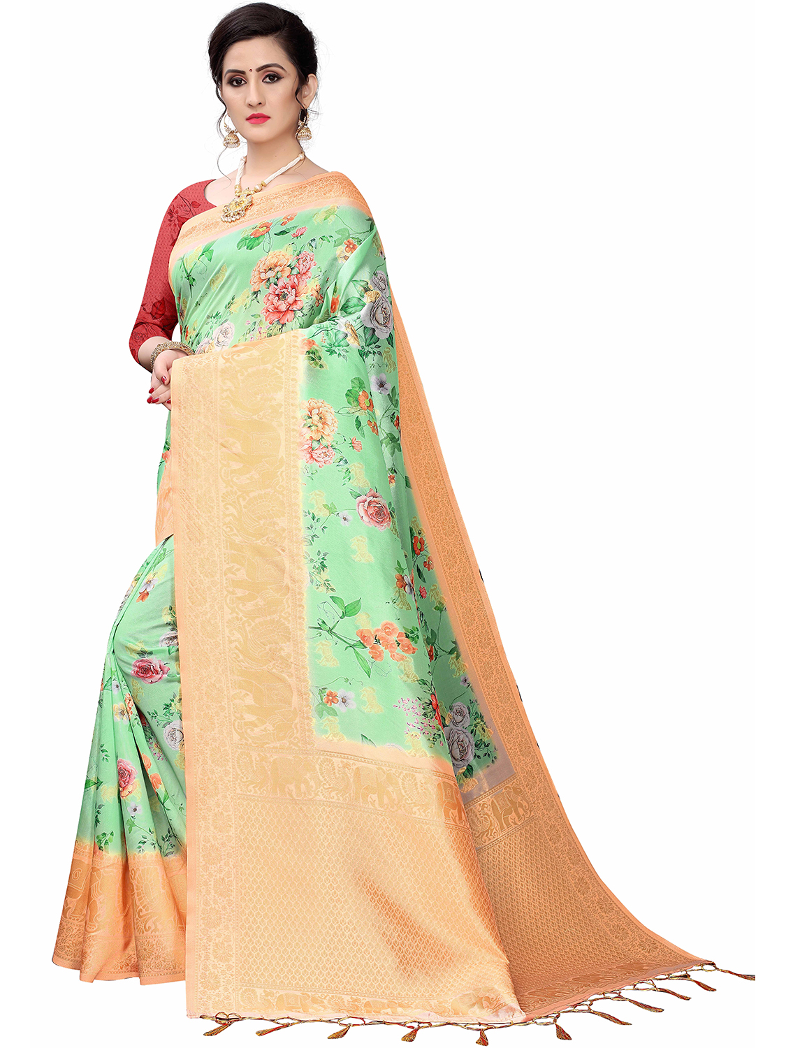 AASTHA FASHION Fashion Dream Womens Green Cotton Silk Blend Saree | Soft & Elegant Traditional Wear