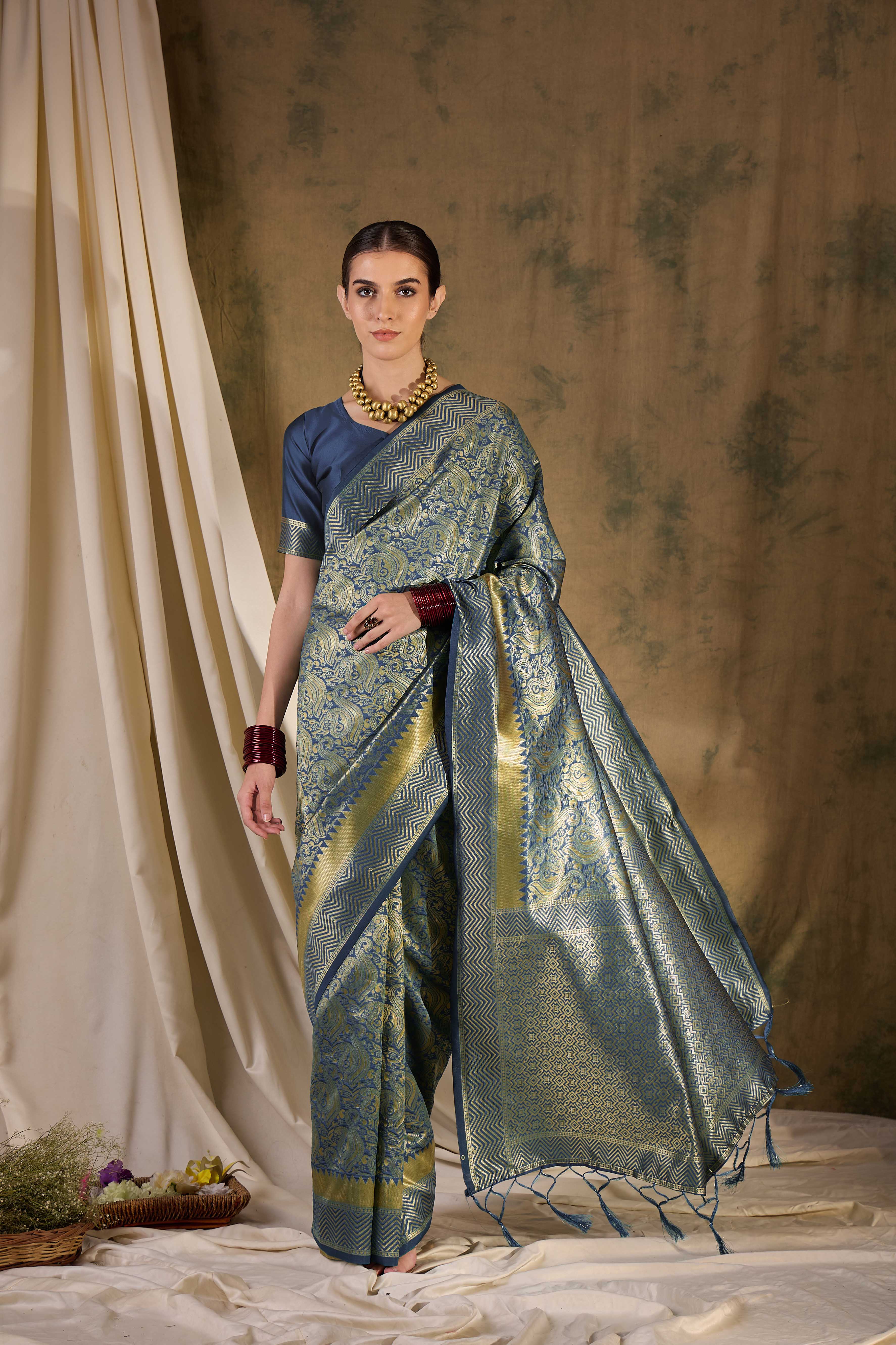 AASTHA FASHION Fashion Dream Womens Grey Banarasi Silk Saree | Soft & Elegant Traditional Wear