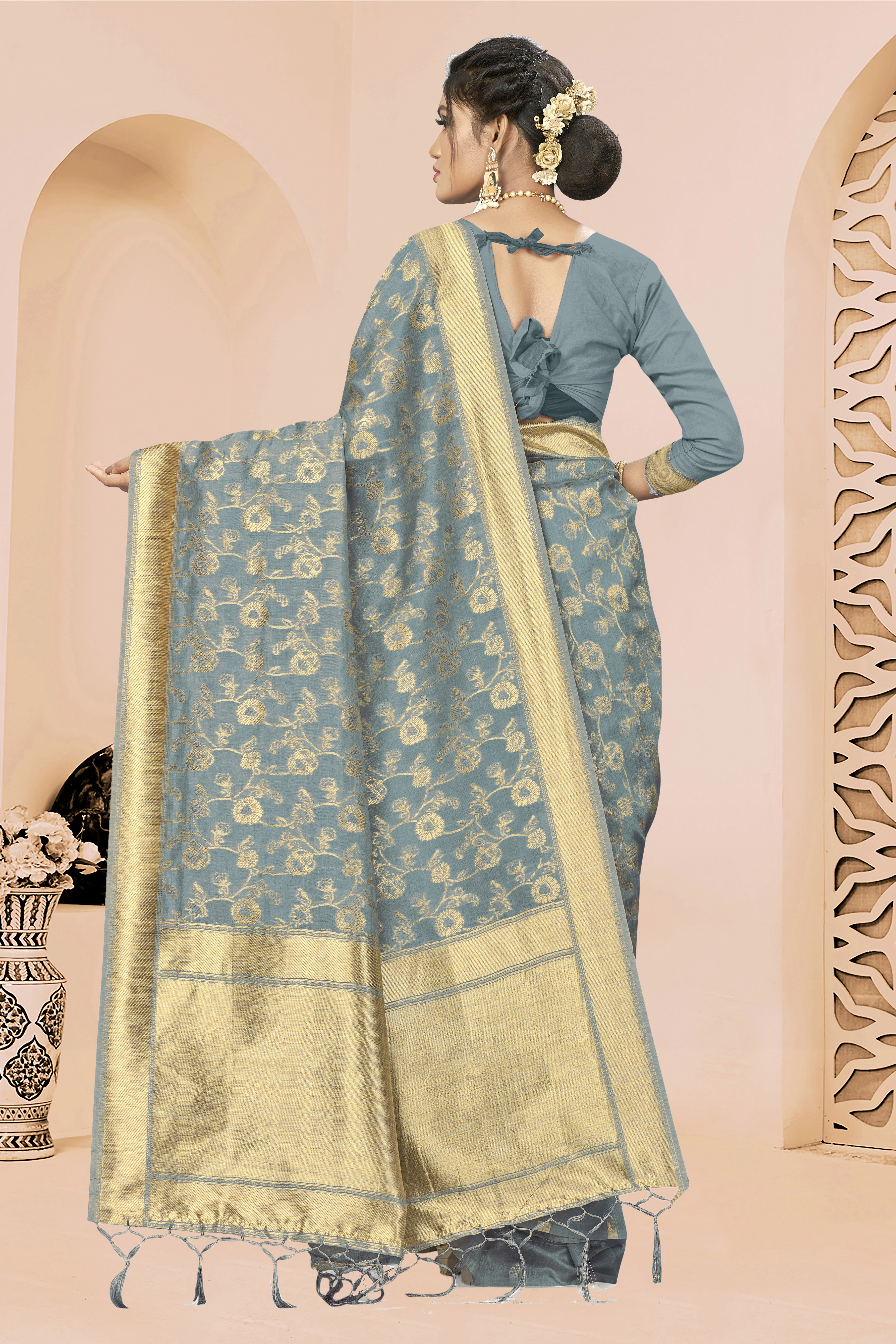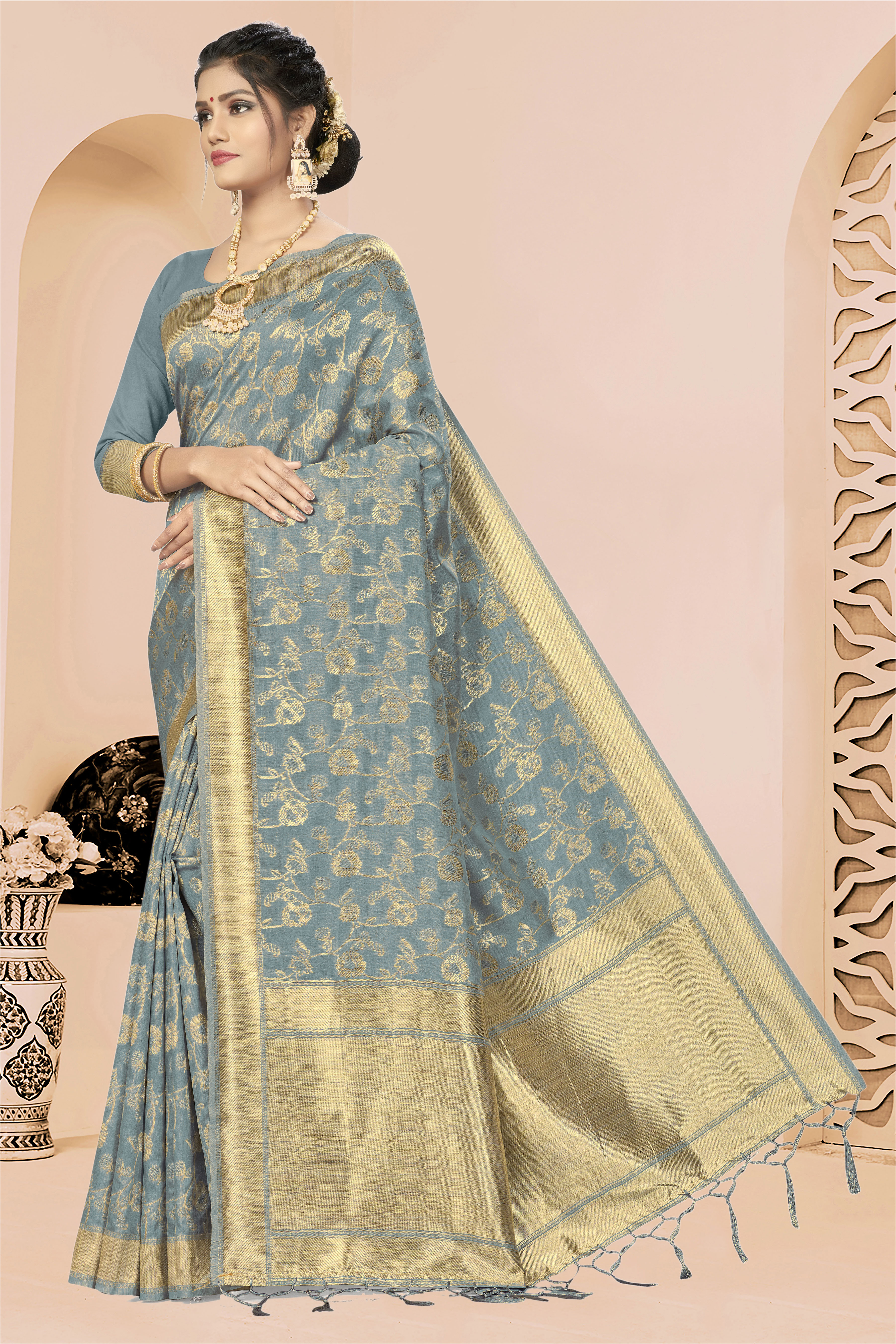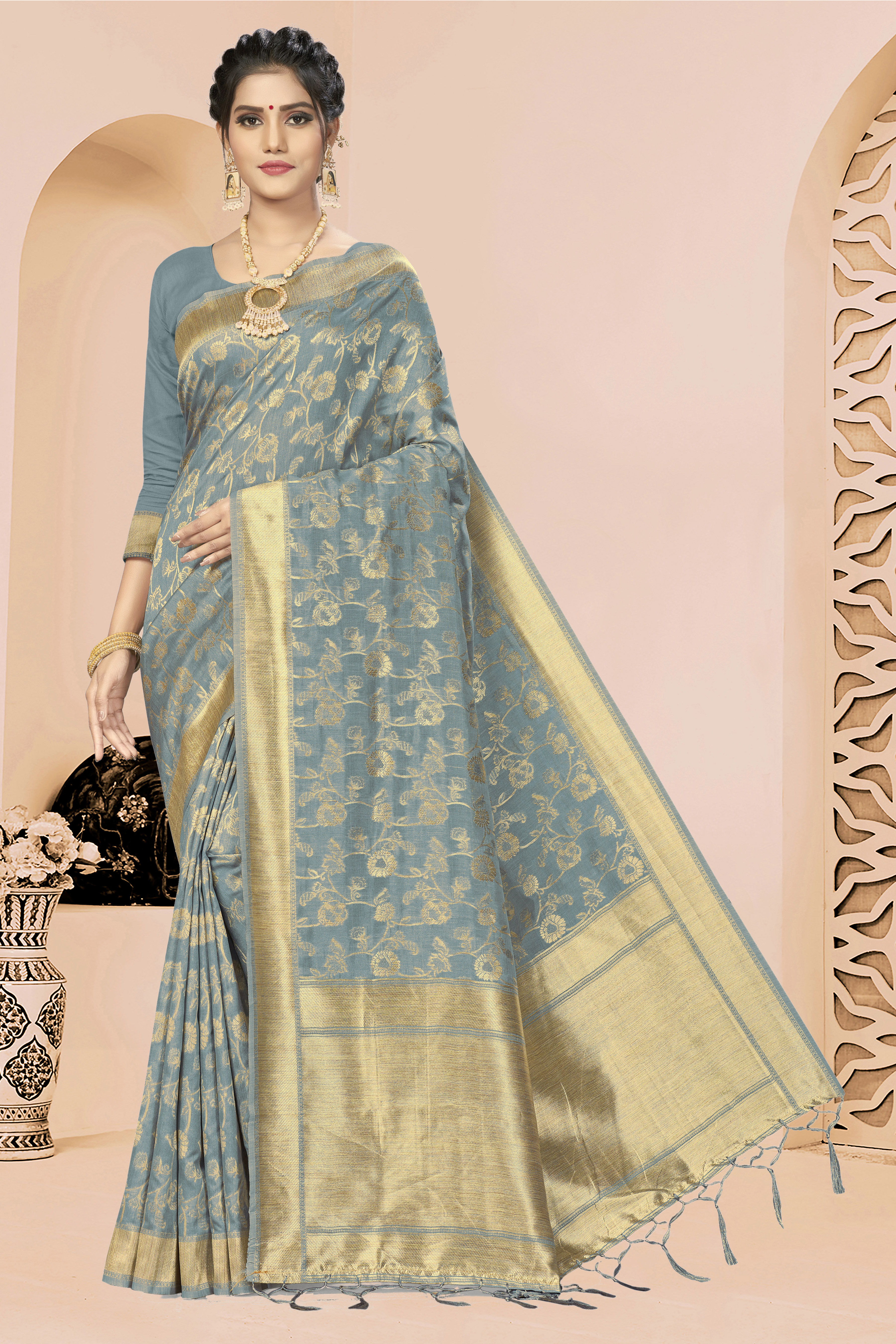AASTHA FASHION Fashion Dream Womens GREY BANARASI SILK Saree | Soft & Elegant Traditional Wear
