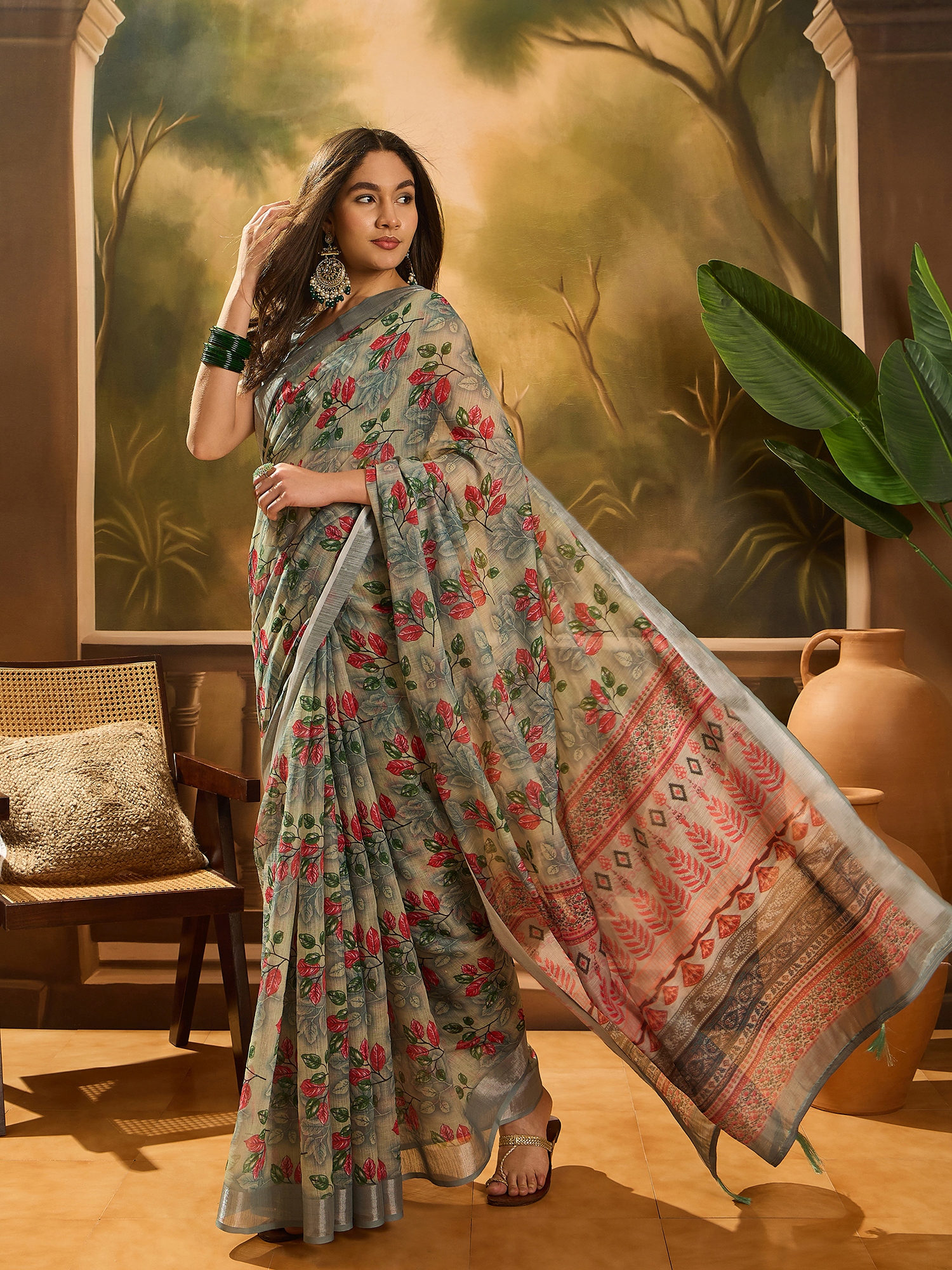 AASTHA FASHION Fashion Dream Womens Grey Linen Cotton Blend Saree | Soft & Elegant Traditional Wear