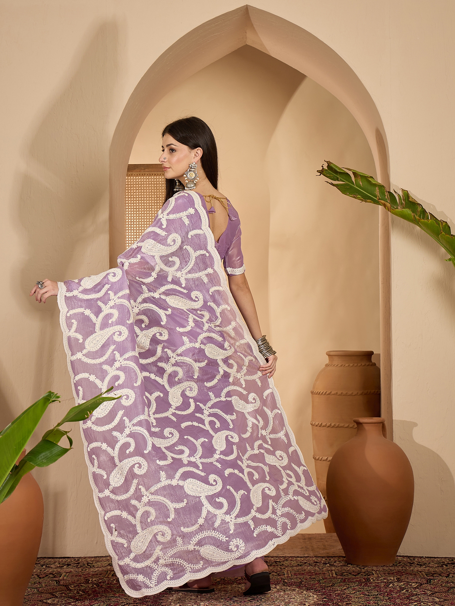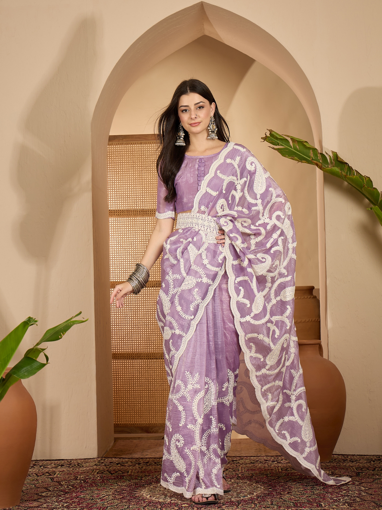 AASTHA FASHION Fashion Dream Womens Lavender Gold Crush Saree | Soft & Elegant Traditional Wear