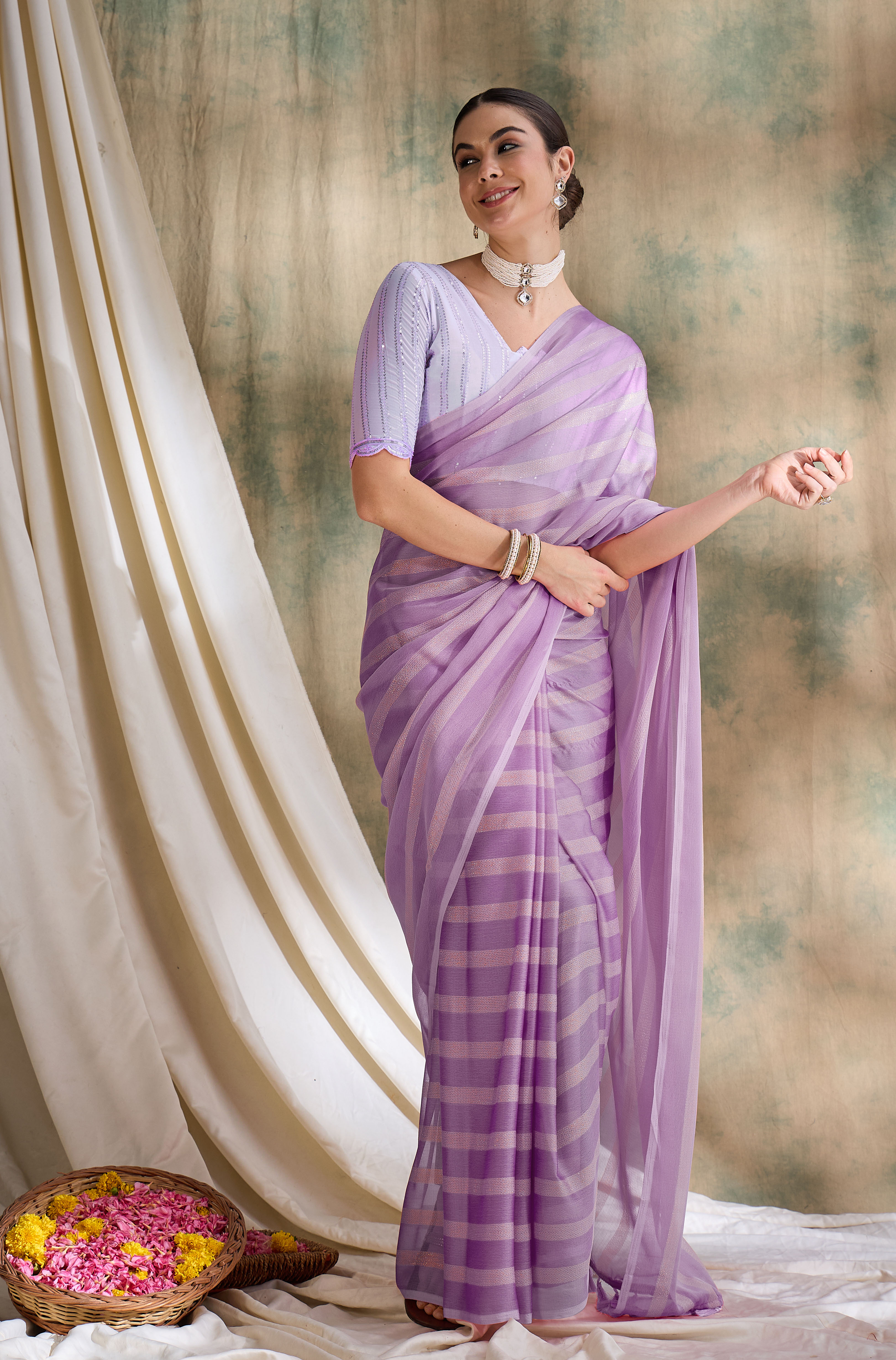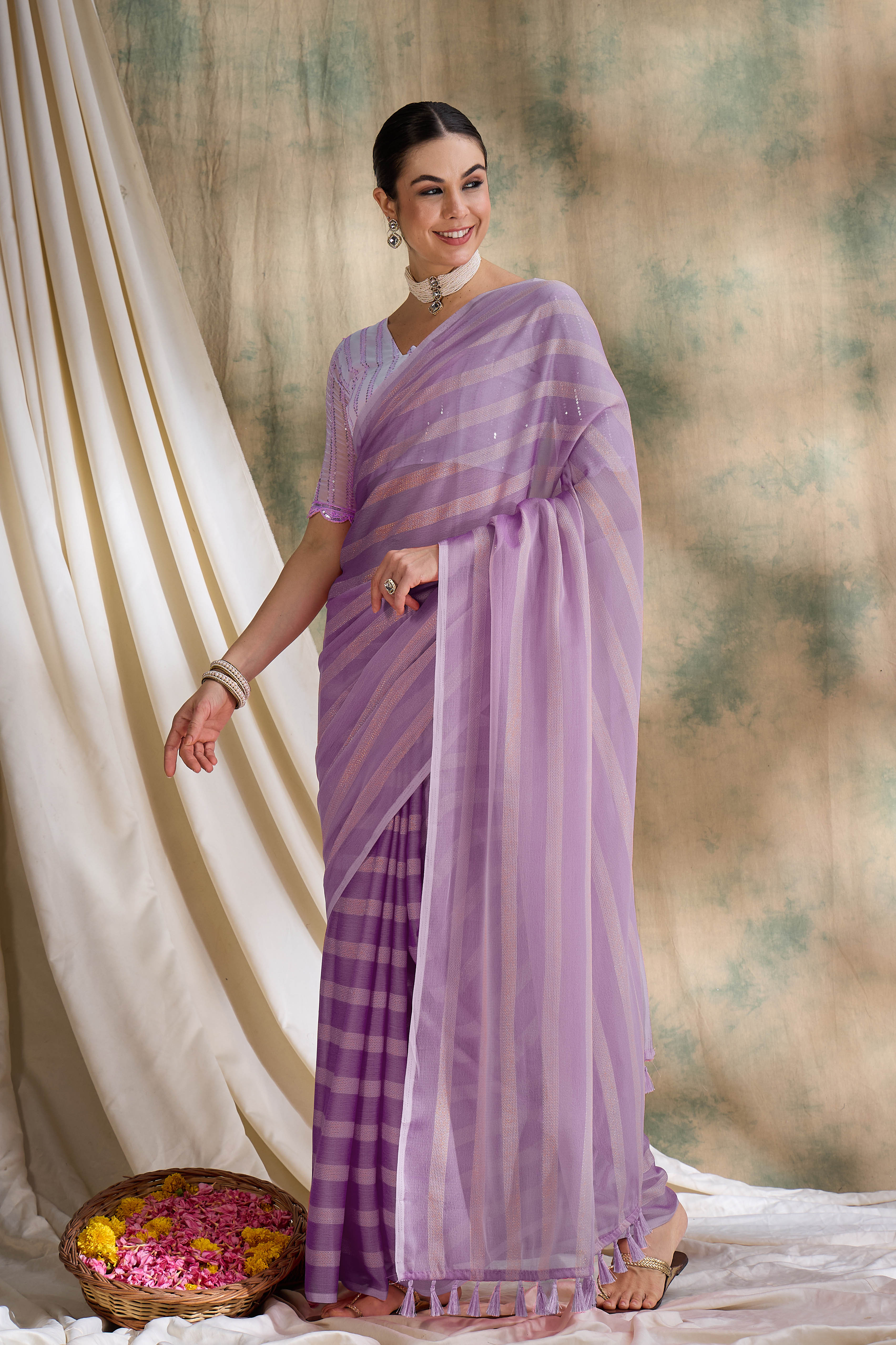 AASTHA FASHION Fashion Dream Womens Lavender Vichitra Silk Saree | Soft & Elegant Traditional Wear