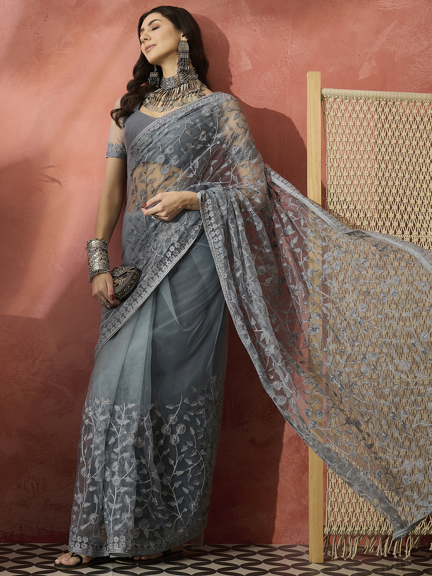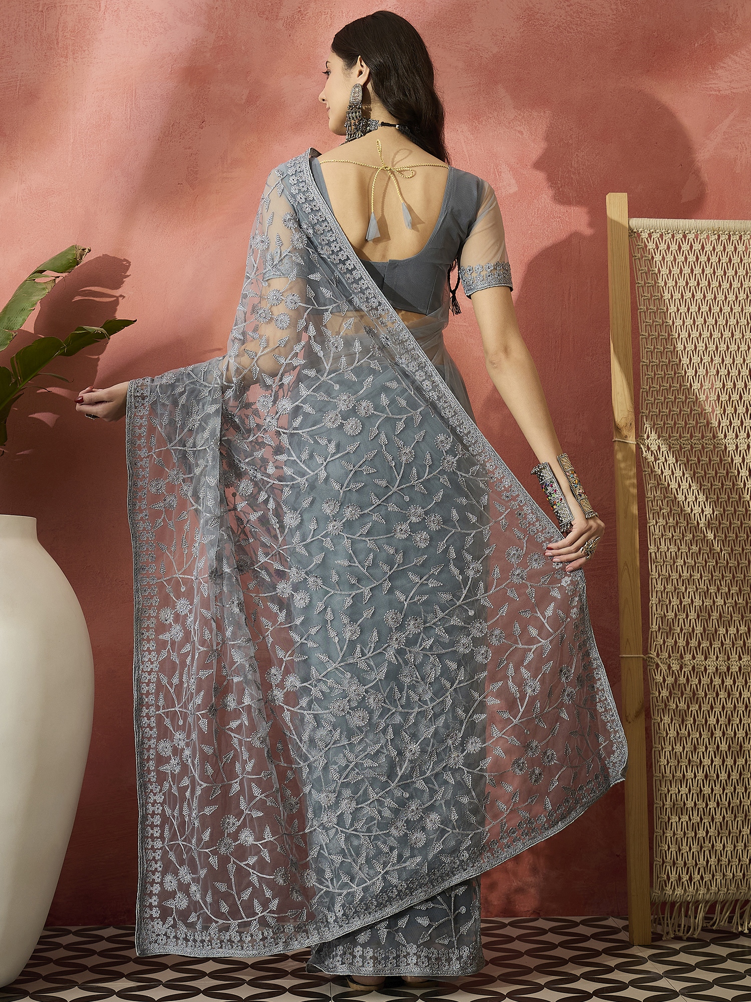 AASTHA FASHION Fashion Dream Womens Light Grey Net Saree | Soft & Elegant Traditional Wear