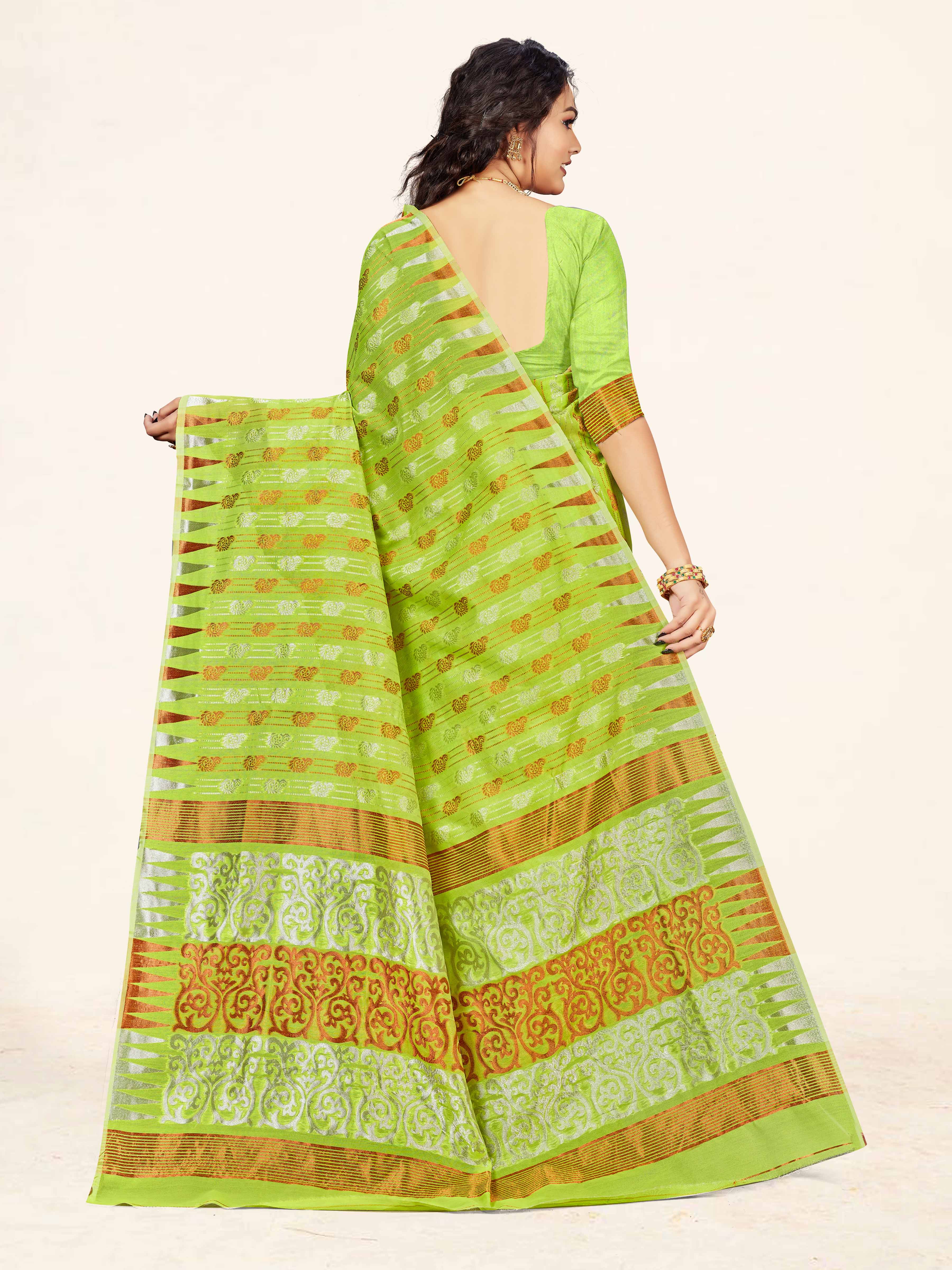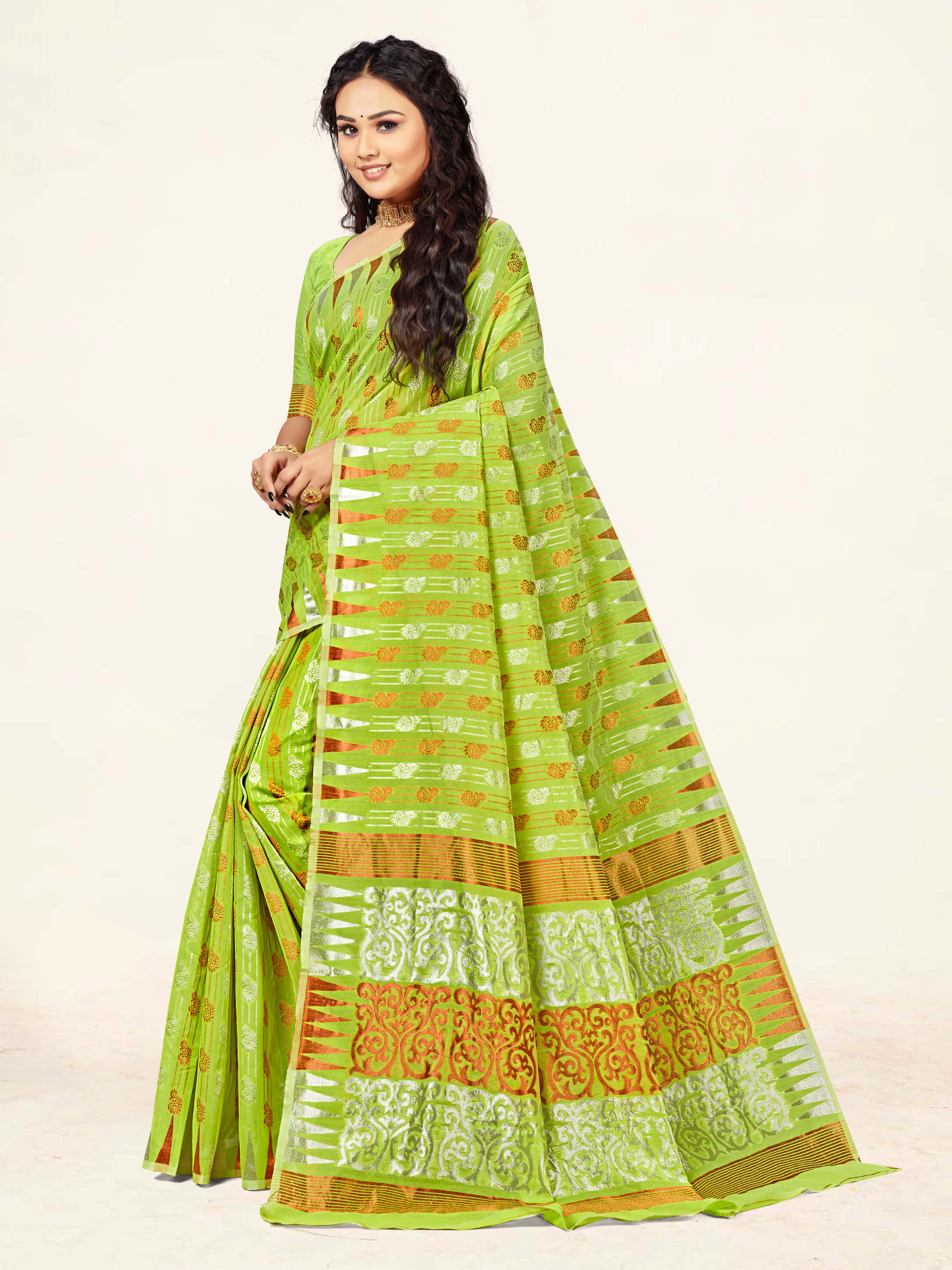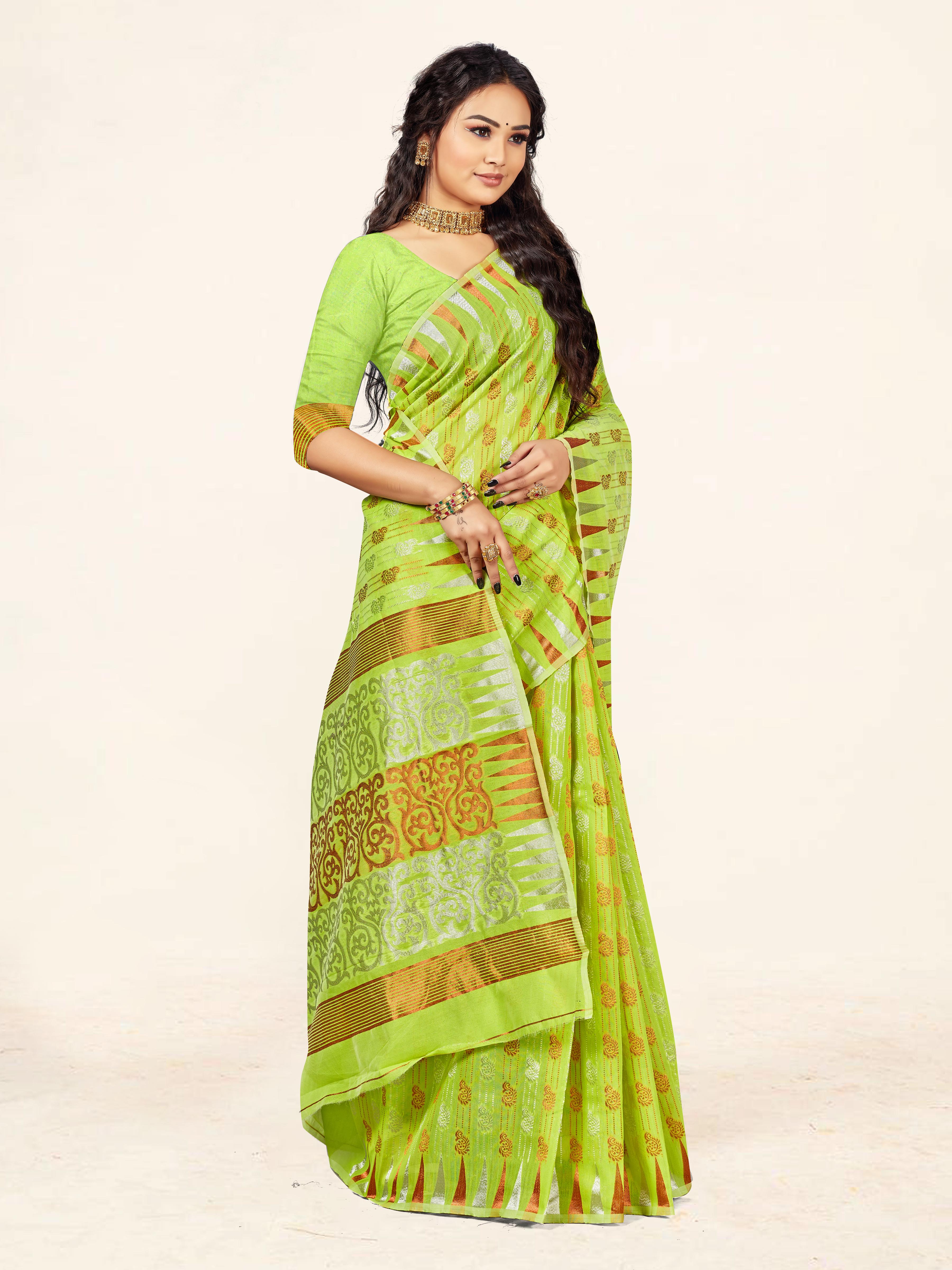 AASTHA FASHION Fashion Dream Womens Lime Green Cotton Saree | Soft & Elegant Traditional Wear