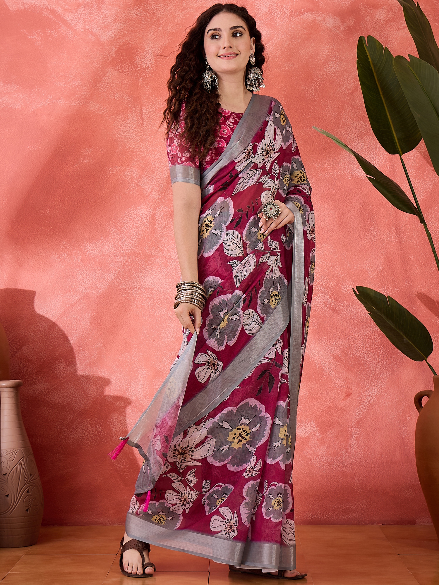 AASTHA FASHION Fashion Dream Womens Magenta Linen Cotton Blend Saree | Soft & Elegant Traditional Wear