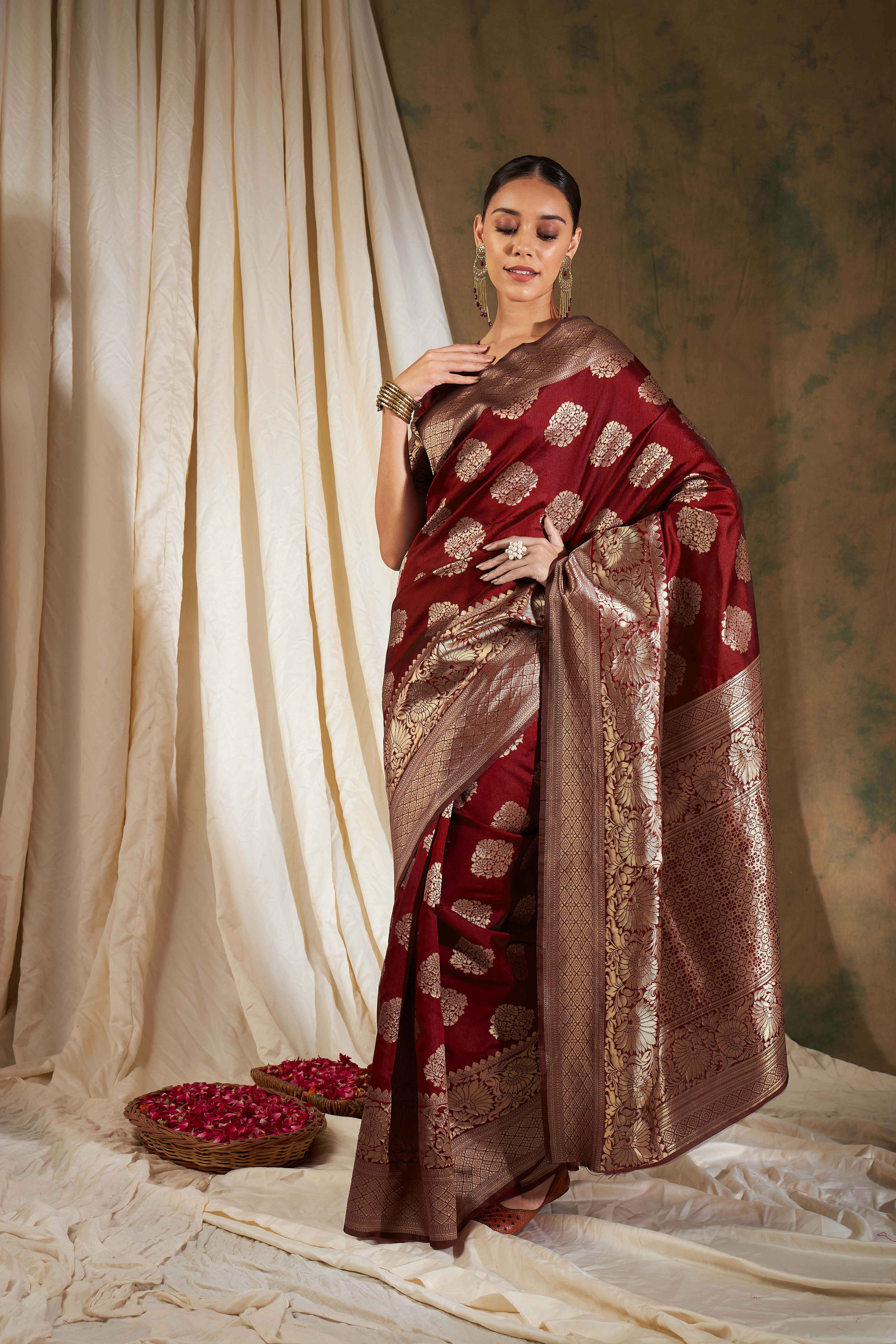 AASTHA FASHION Fashion Dream Womens MAROON Banarasi Silk Saree | Soft & Elegant Traditional Wear