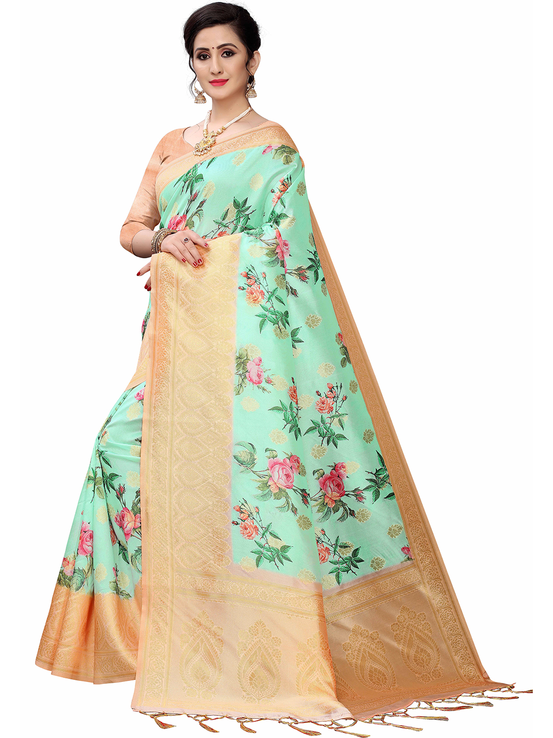 AASTHA FASHION Fashion Dream Womens Mint Green Cotton Silk Blend Saree | Soft & Elegant Traditional Wear