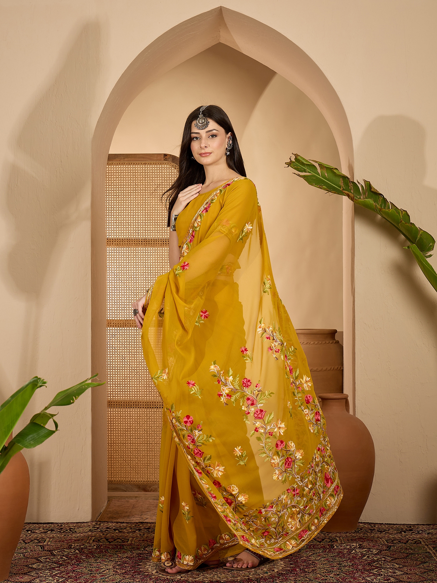 AASTHA FASHION Fashion Dream Womens Mustard Georgette Saree | Soft & Elegant Traditional Wear