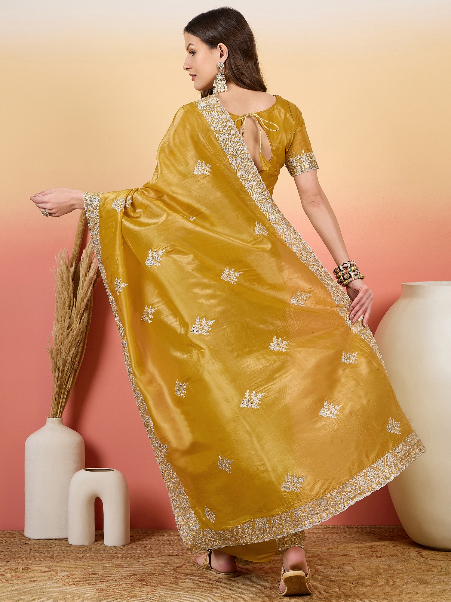 • Saree Fabric-Gold Crush ,Blouse Fabric-Gold Crush