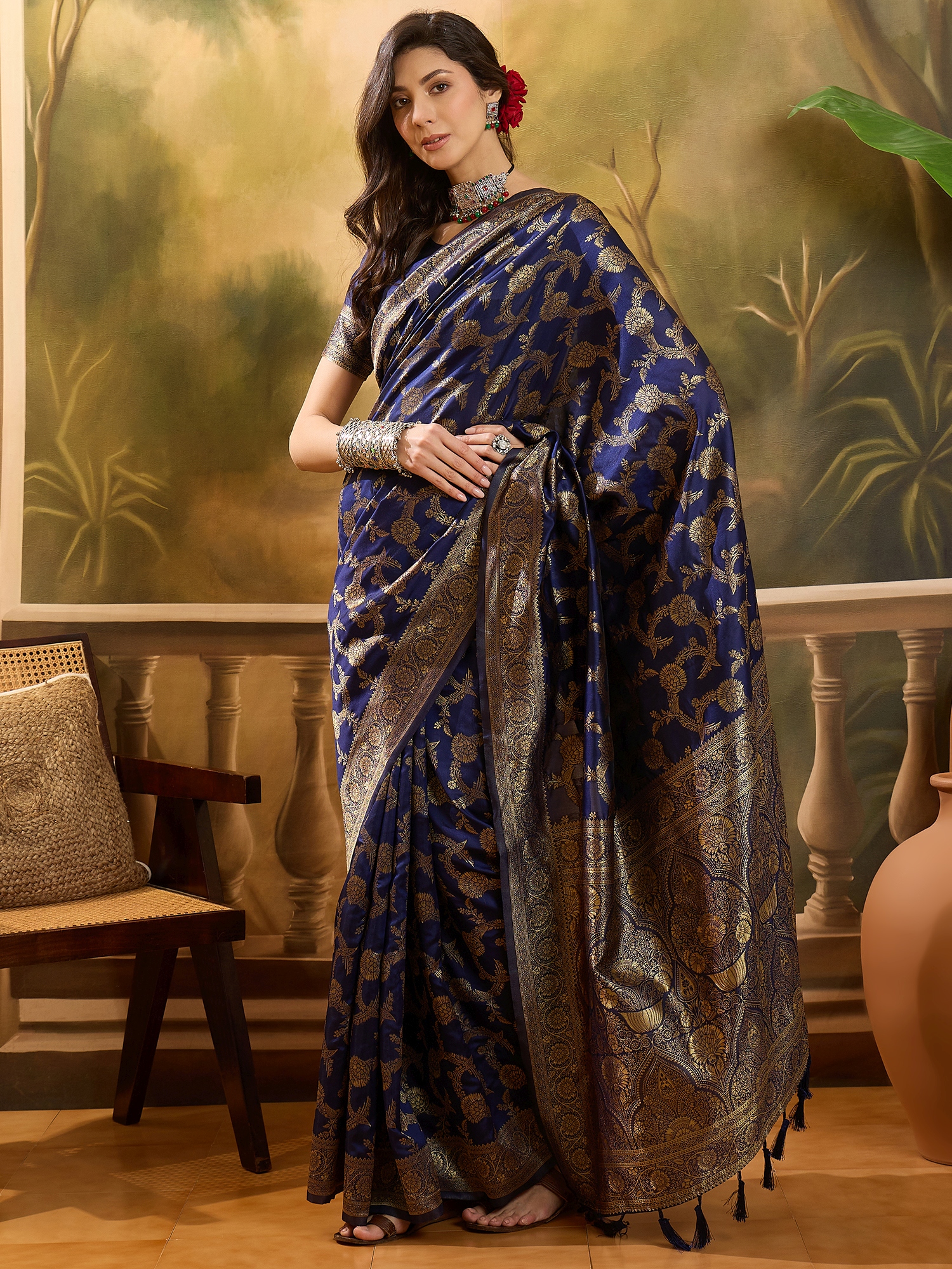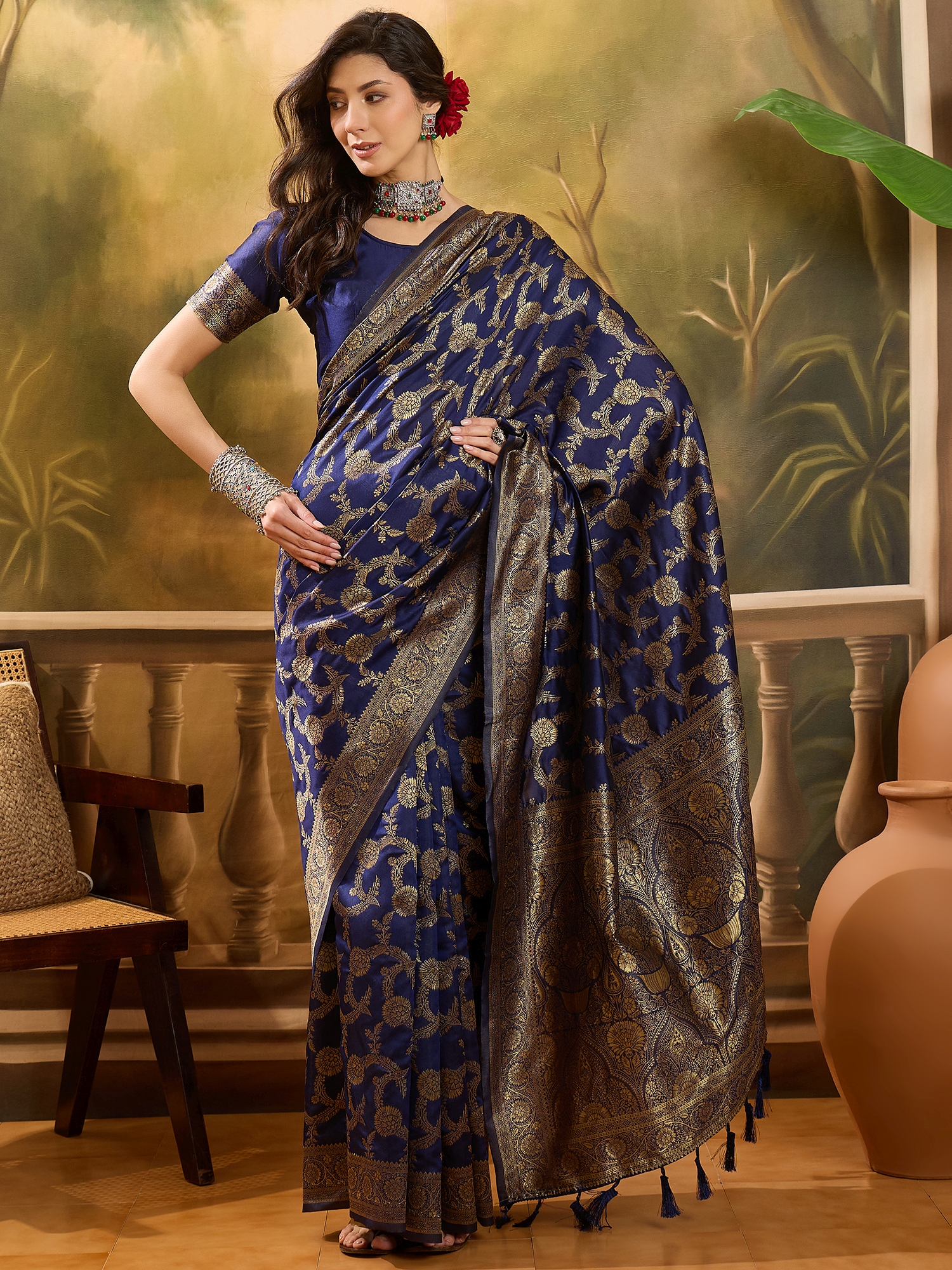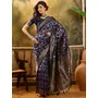 AASTHA FASHION Fashion Dream Womens Navy Blue Banarasi Jacquard Saree | Soft & Elegant Traditional Wear