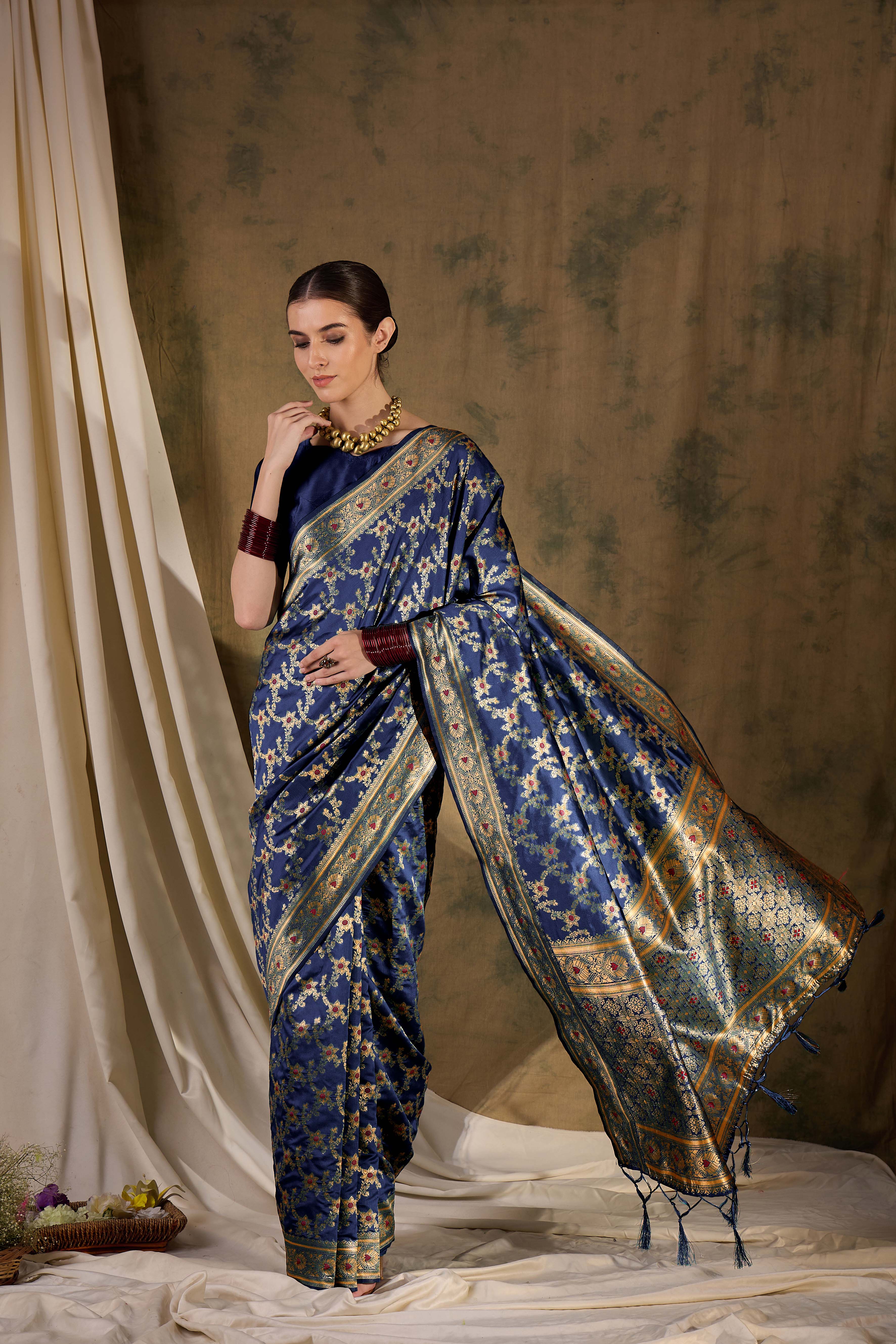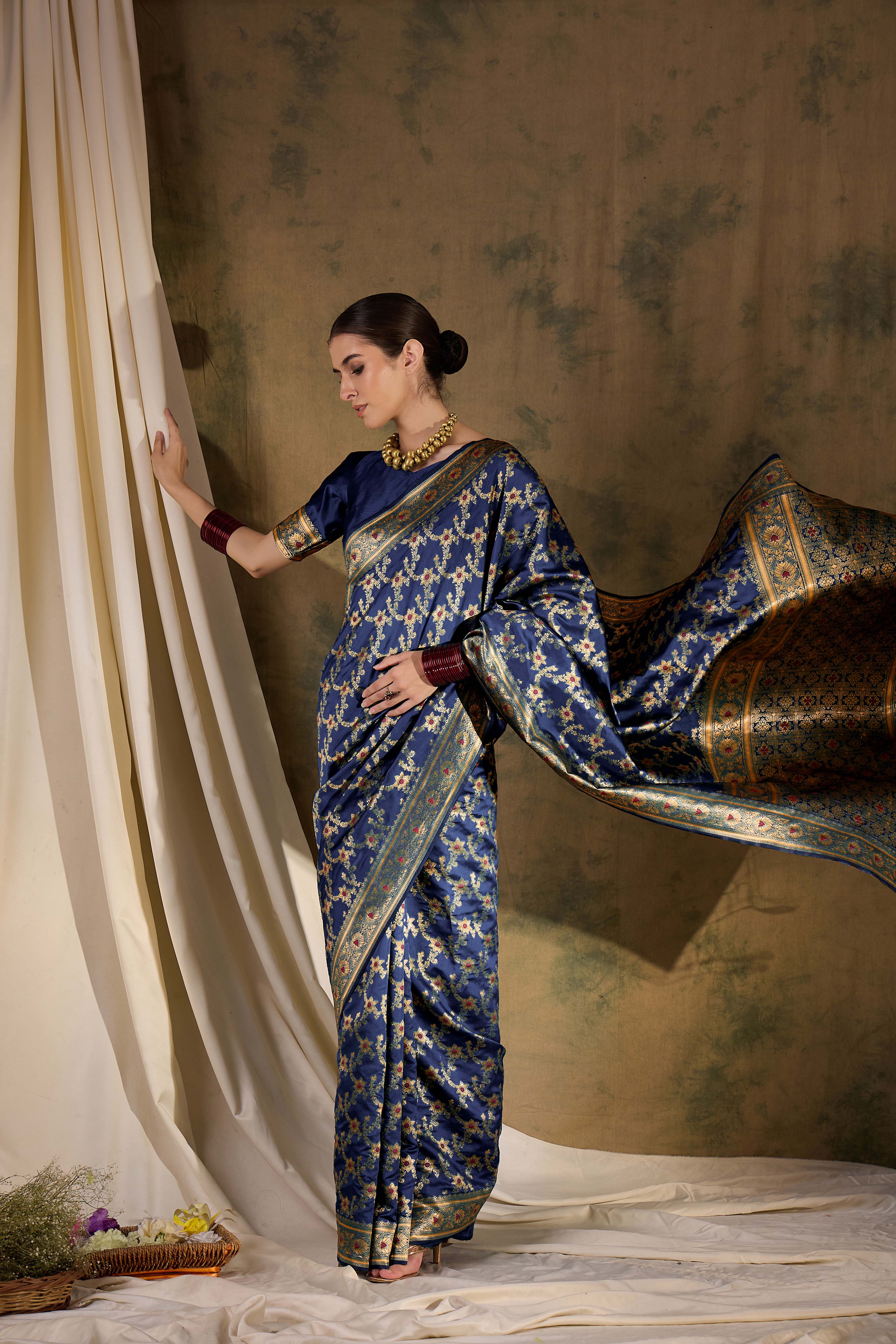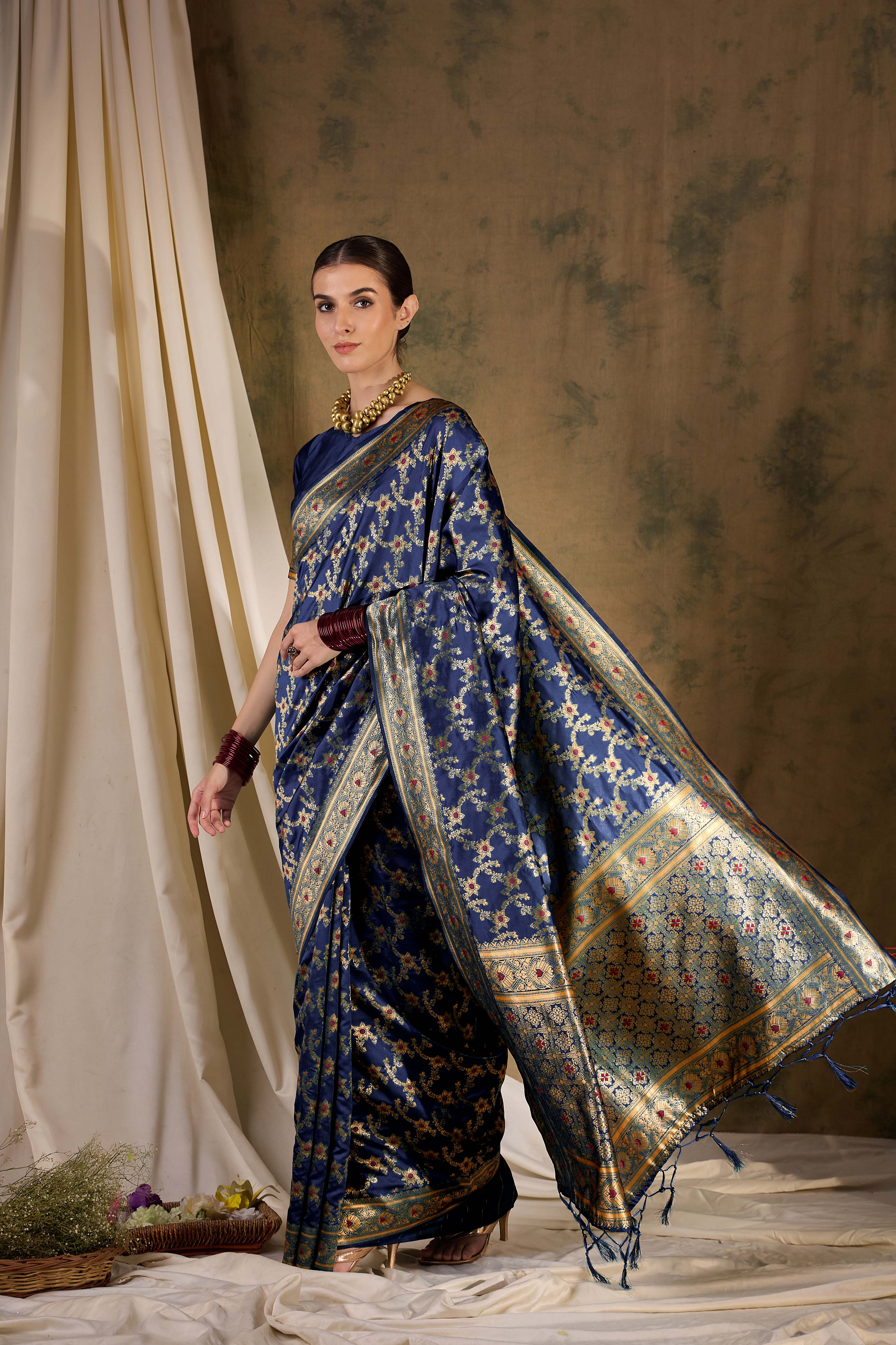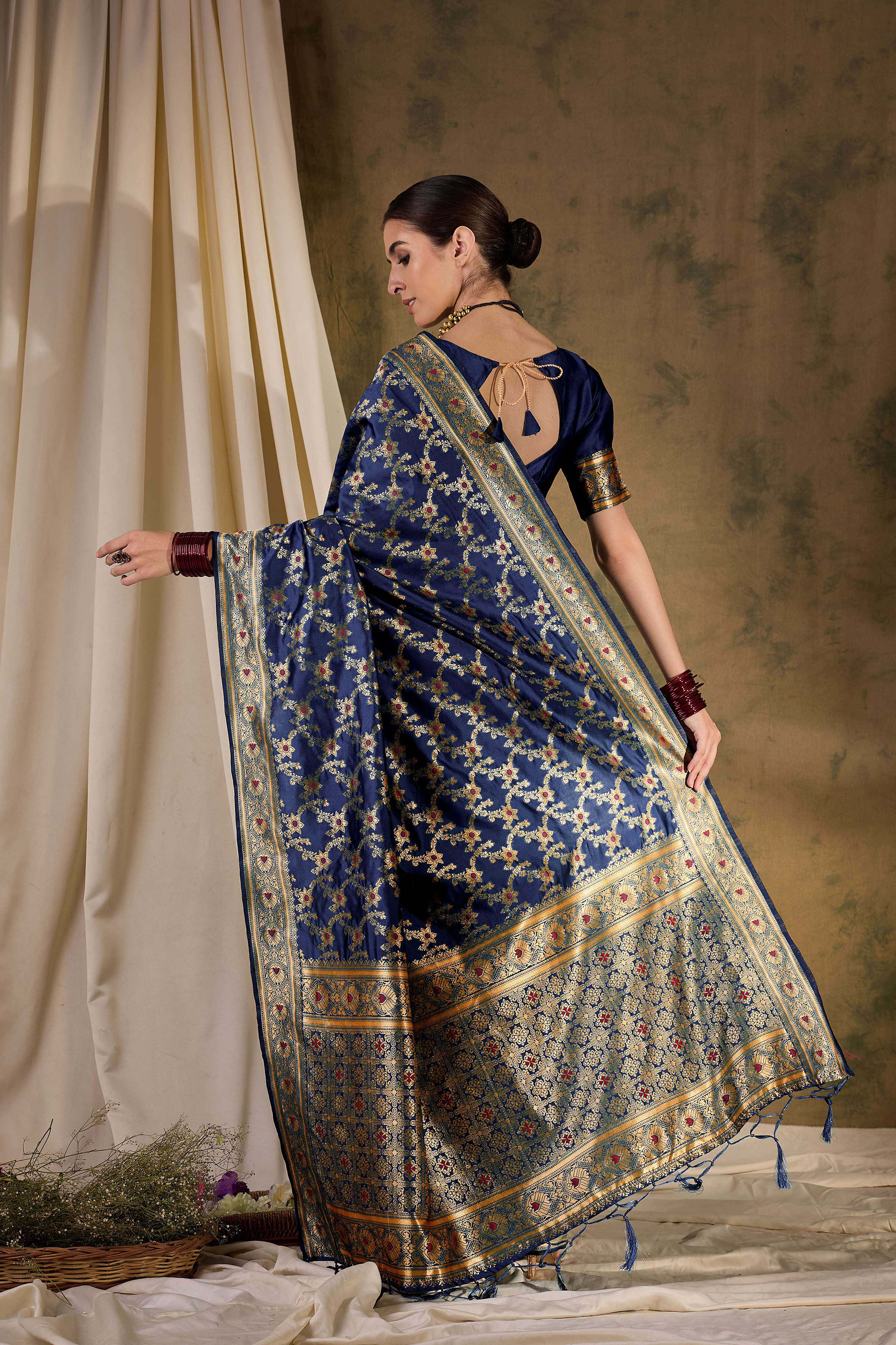 AASTHA FASHION Fashion Dream Womens Navy Blue Banarasi Silk Saree | Soft & Elegant Traditional Wear