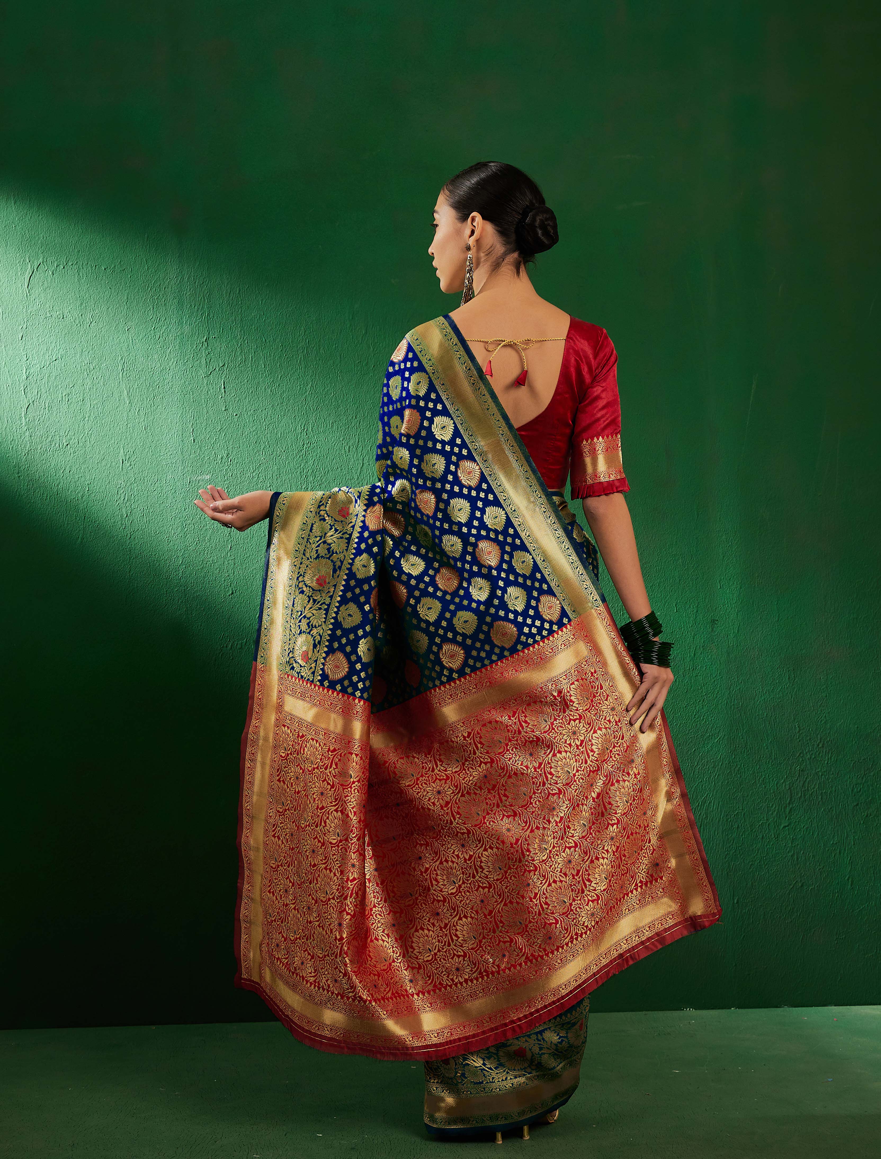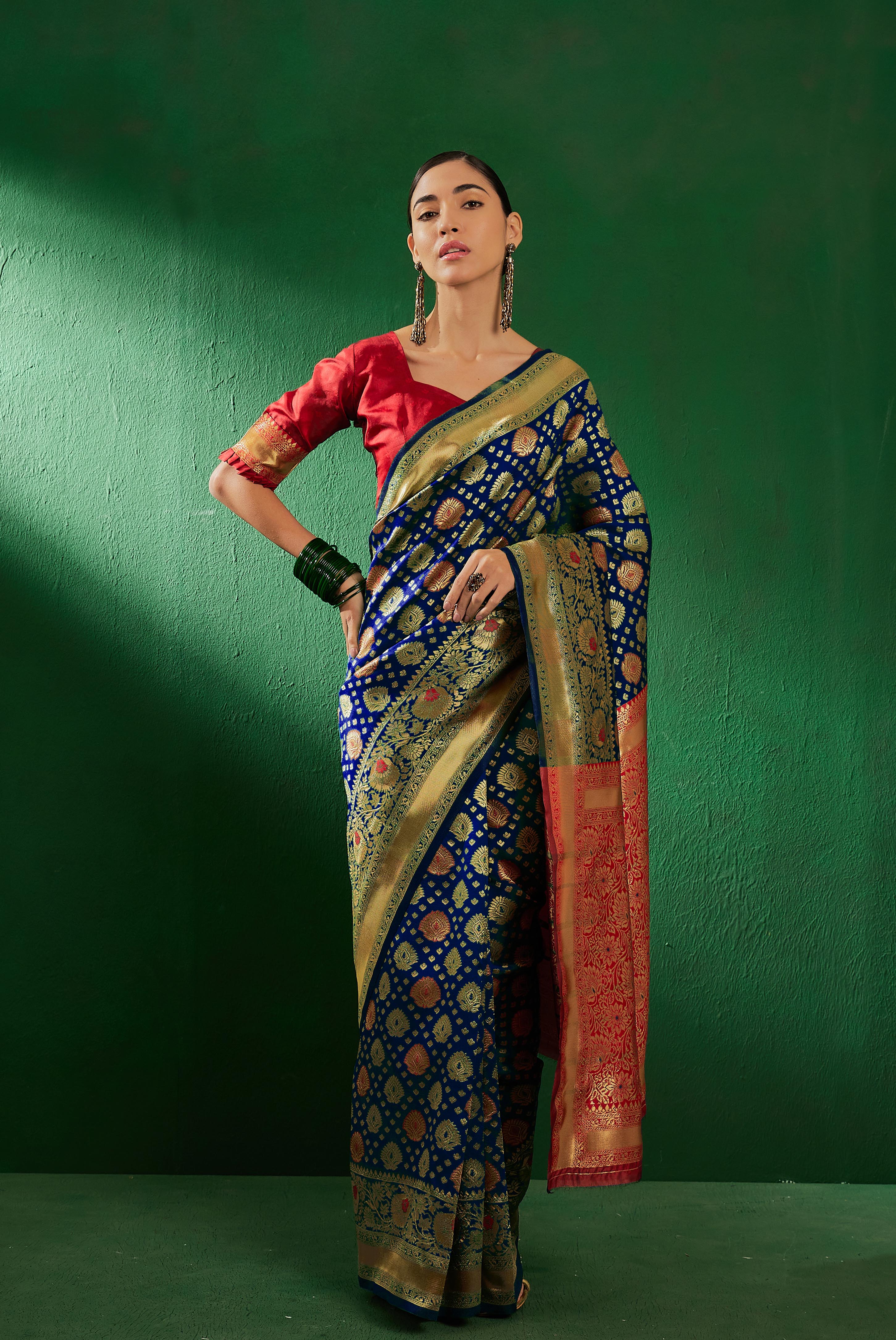 AASTHA FASHION Fashion Dream Womens Navy Blue Banarasi Silk Saree | Soft & Elegant Traditional Wear
