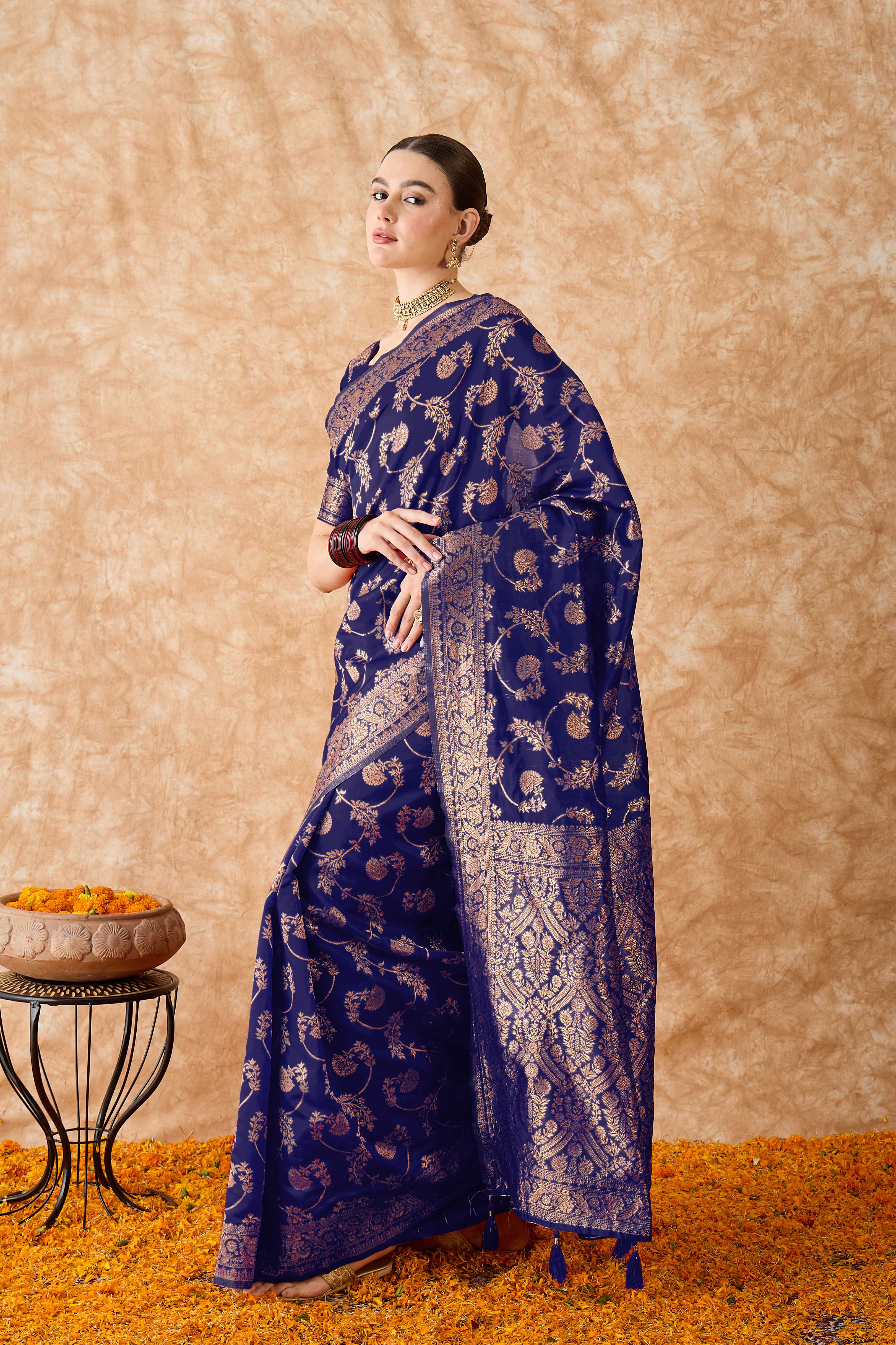 AASTHA FASHION Fashion Dream Womens Navy Blue Banarasi Silk Saree | Soft & Elegant Traditional Wear