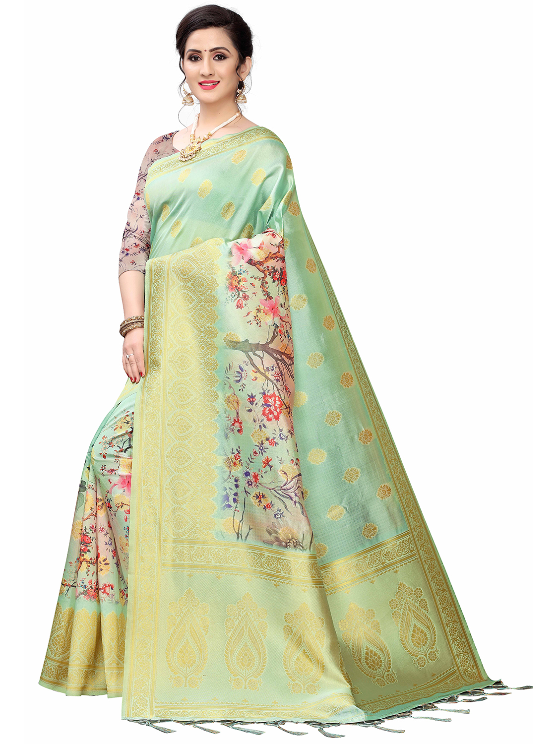 AASTHA FASHION Fashion Dream Womens Ocean Green Cotton Silk Blend Saree | Soft & Elegant Traditional Wear