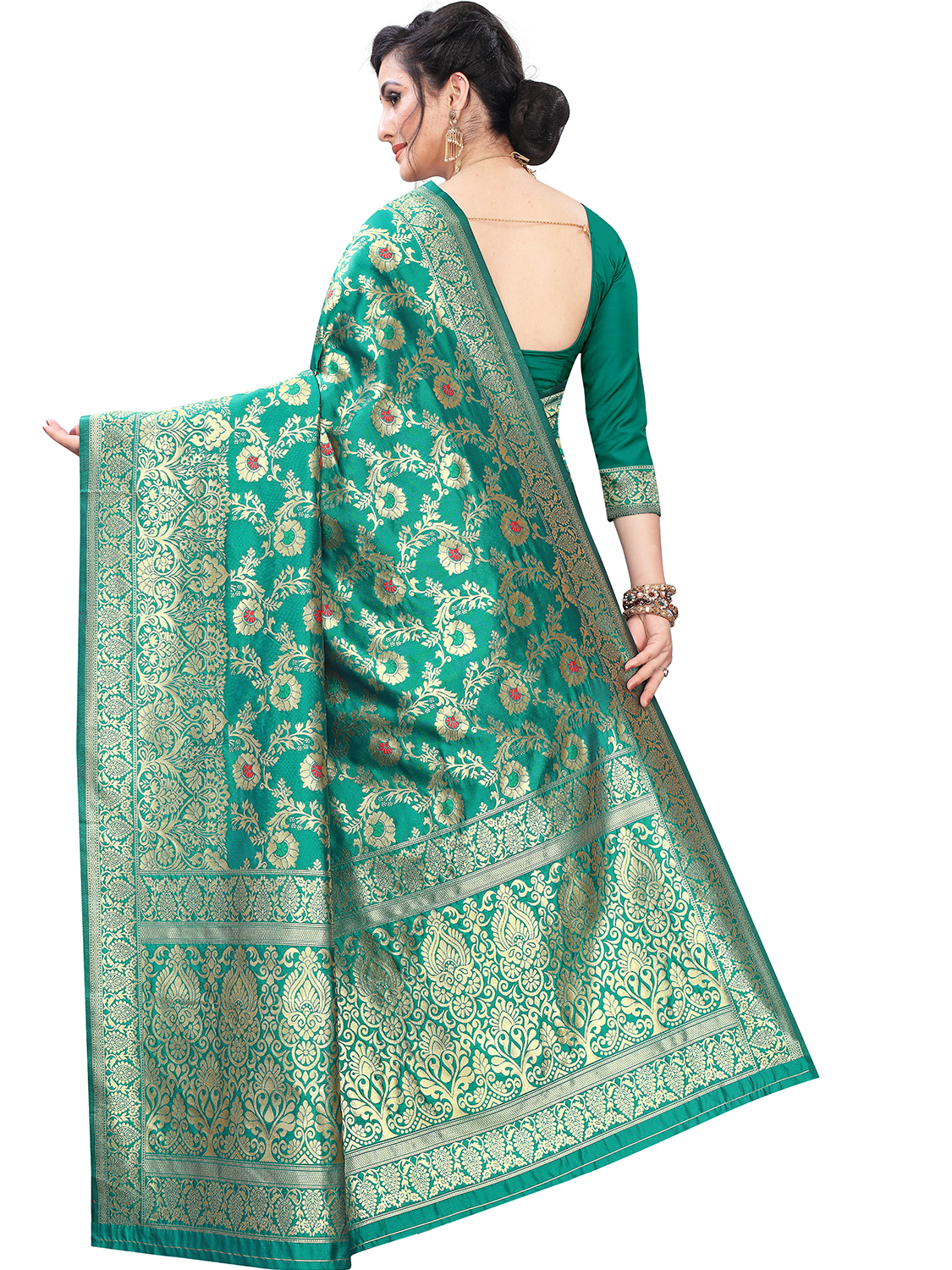 AASTHA FASHION Fashion Dream Womens Ocean Green Silk Blend Saree | Soft & Elegant Traditional Wear