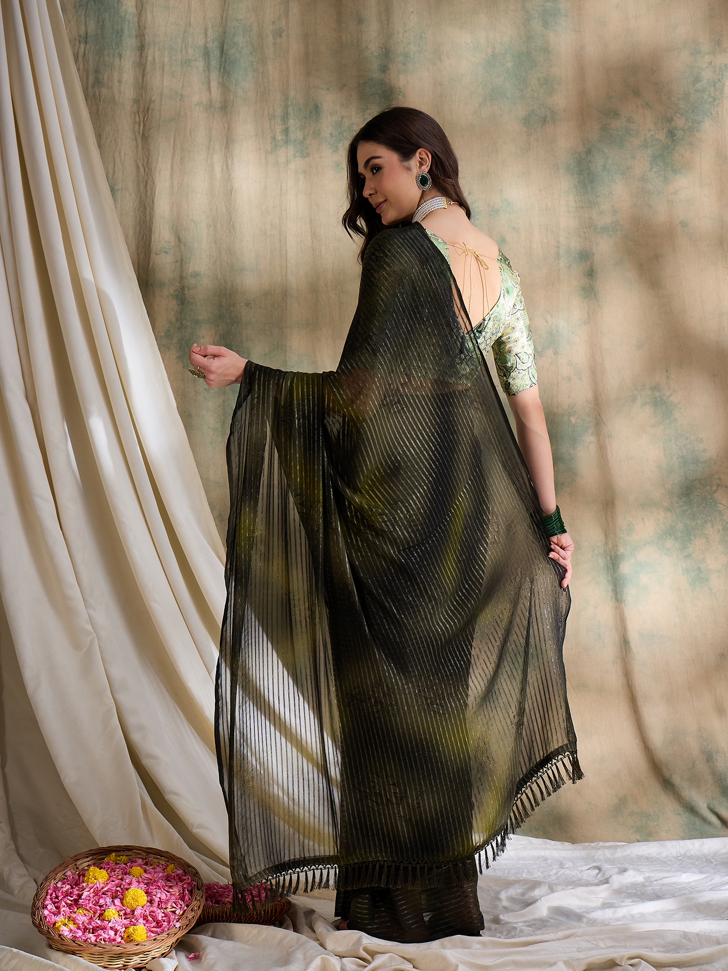 AASTHA FASHION Fashion Dream Womens Olive Green Sparkle Lining Saree | Soft & Elegant Traditional Wear