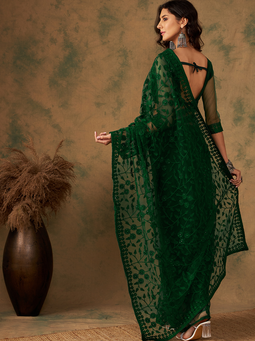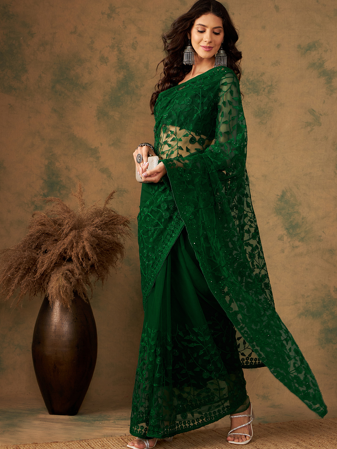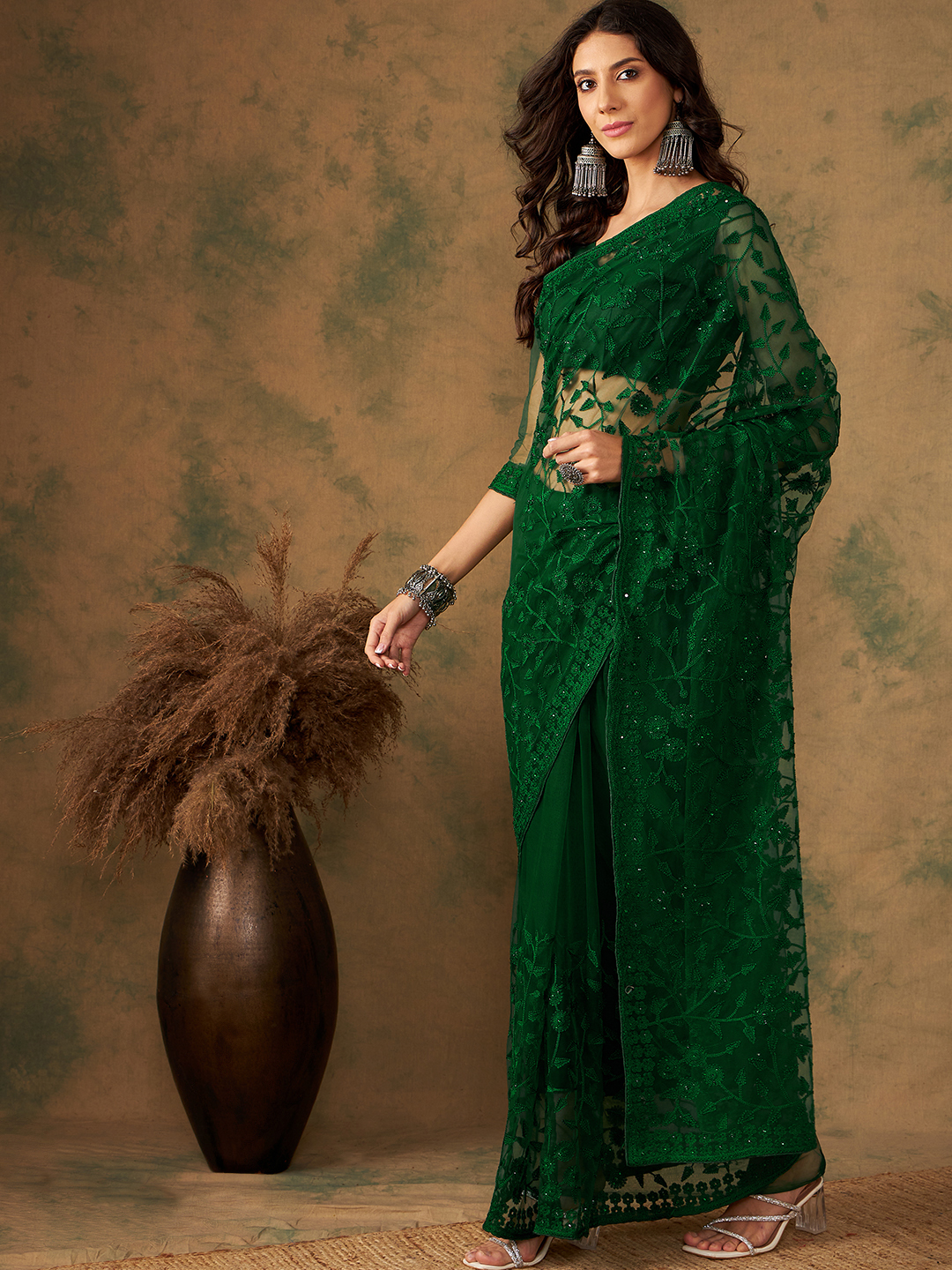 AASTHA FASHION Fashion Dream Womens Olive Net Saree | Soft & Elegant Traditional Wear