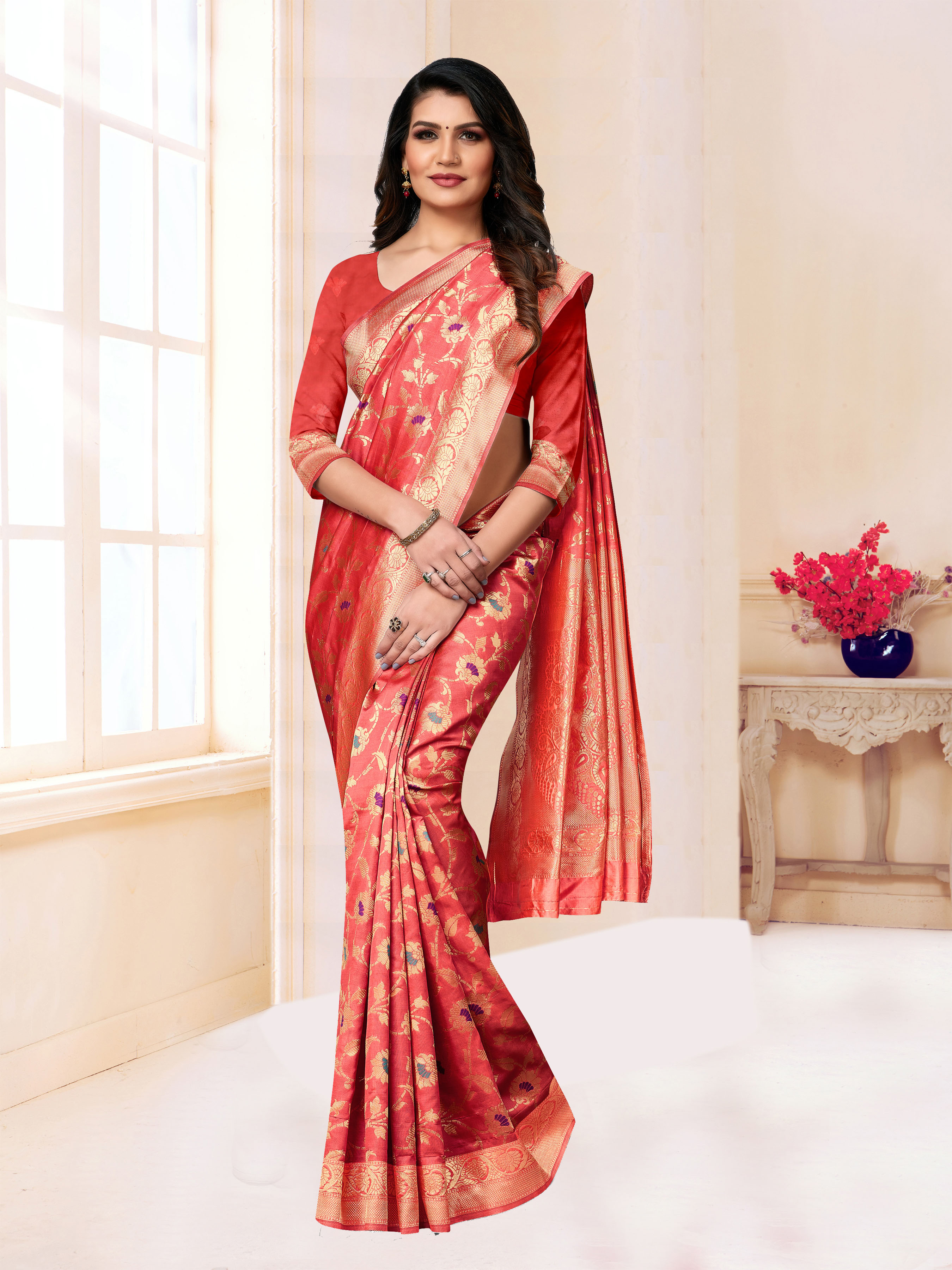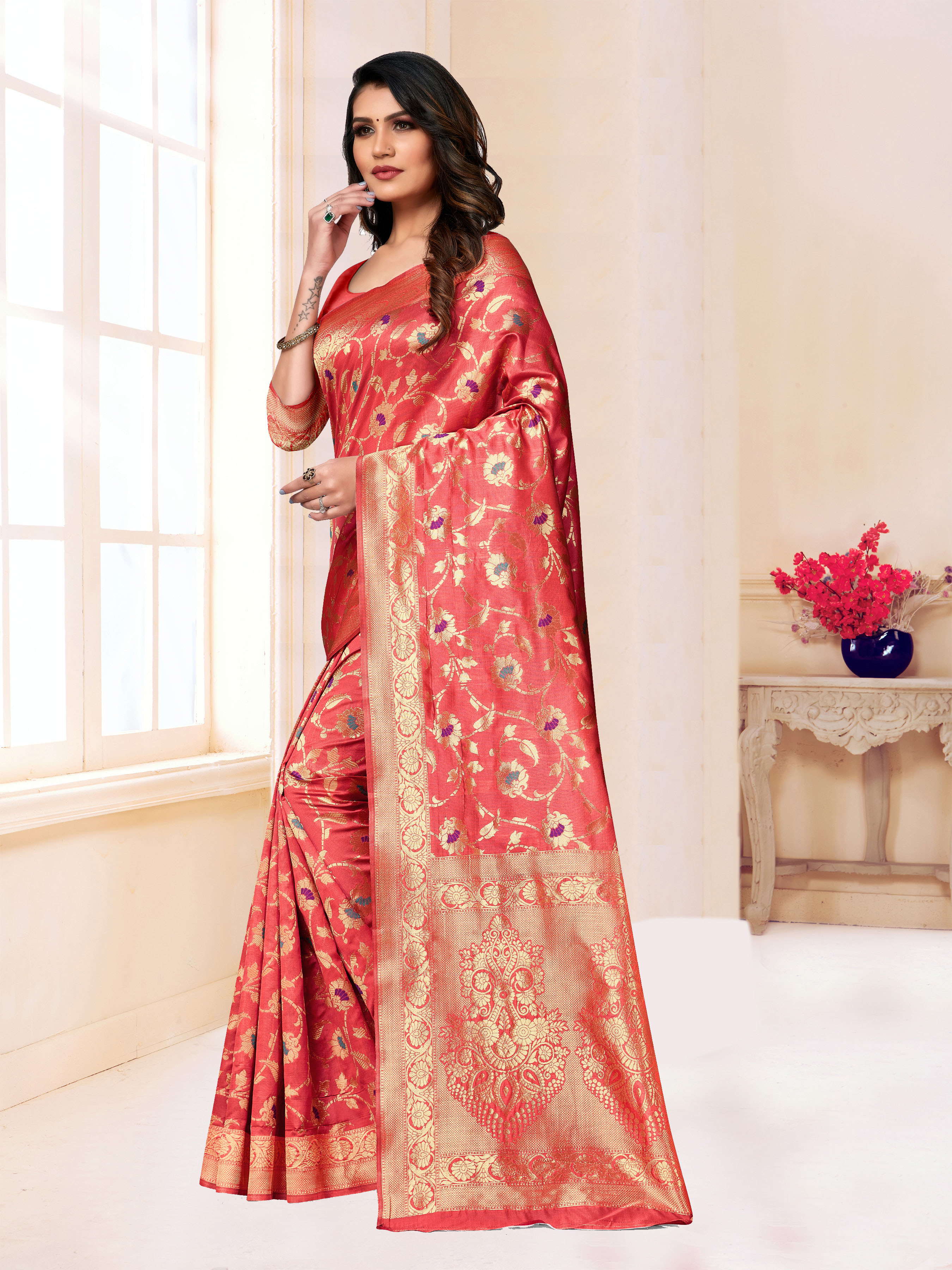 • Saree Fabric-BANARASI SILK ,Blouse Fabric-BANARASI SILK