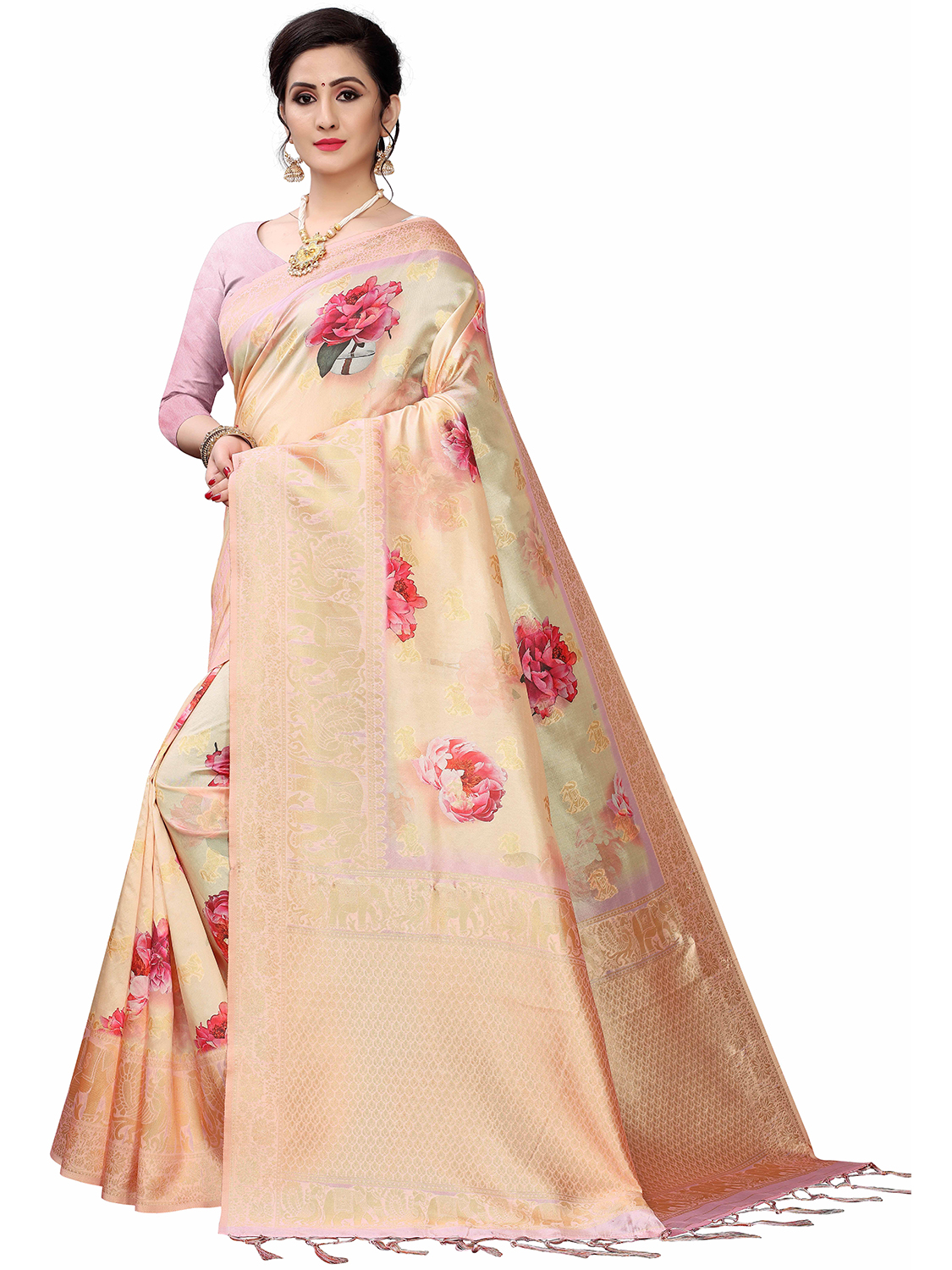 • Saree Work-Digital Printed ,Blouse Work- Cotton Silk Blend