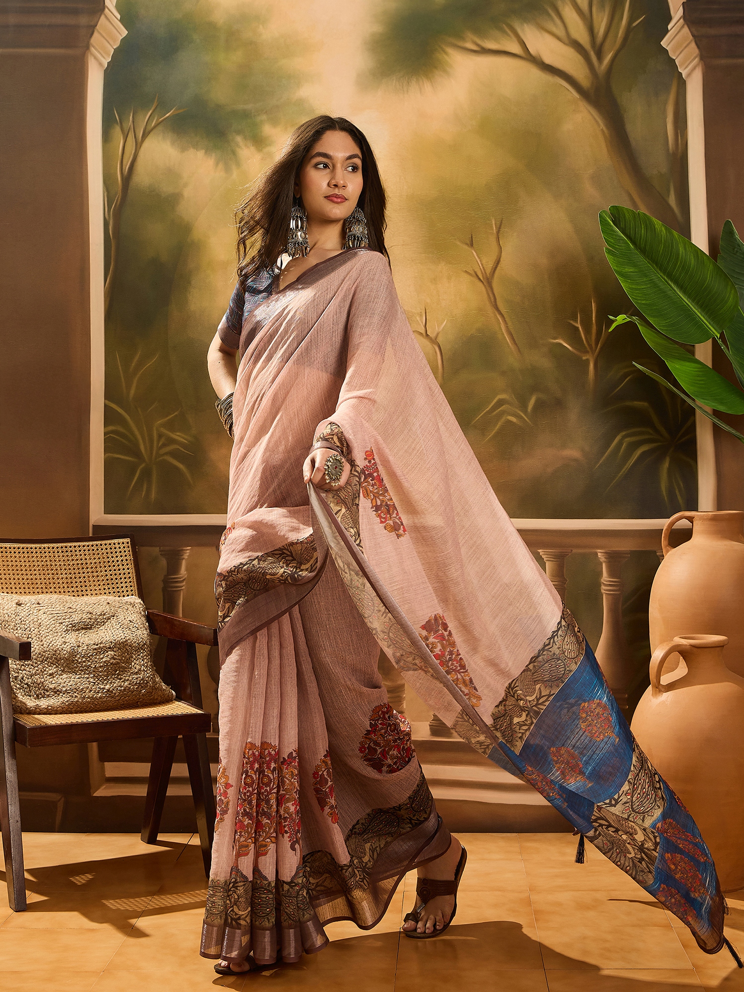 AASTHA FASHION Fashion Dream Womens Peach Linen Cotton Blend Saree | Soft & Elegant Traditional Wear
