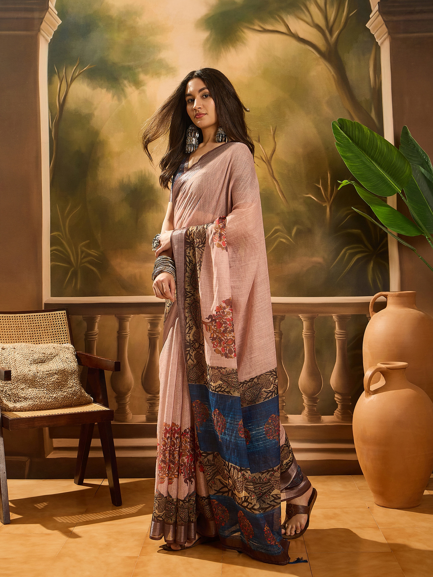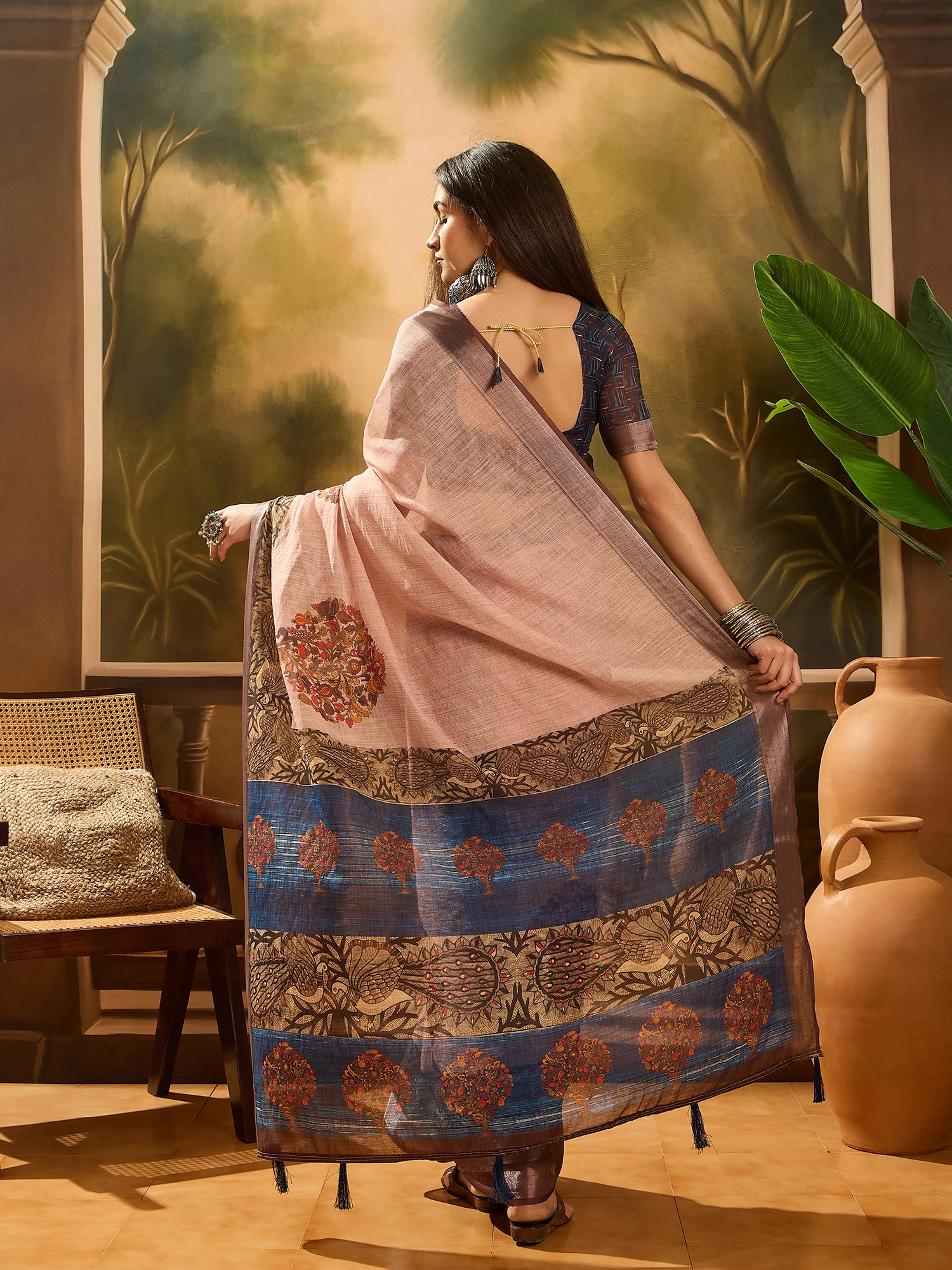 • Saree Fabric-Linen Cotton Blend ,Blouse Fabric-Linen Cotton Blend