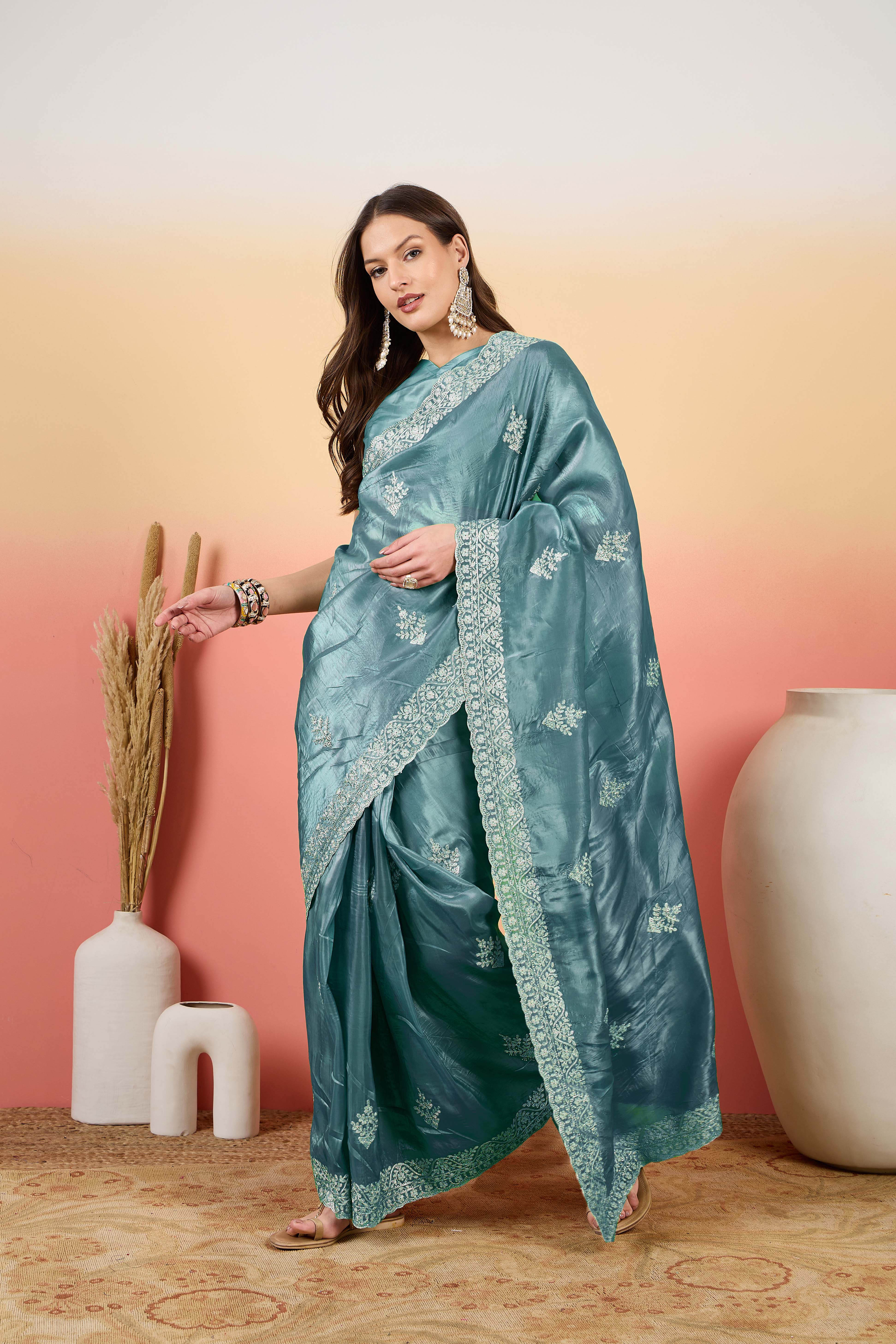 • Saree Work-Embroidered ,Blouse Work- Gold Crush