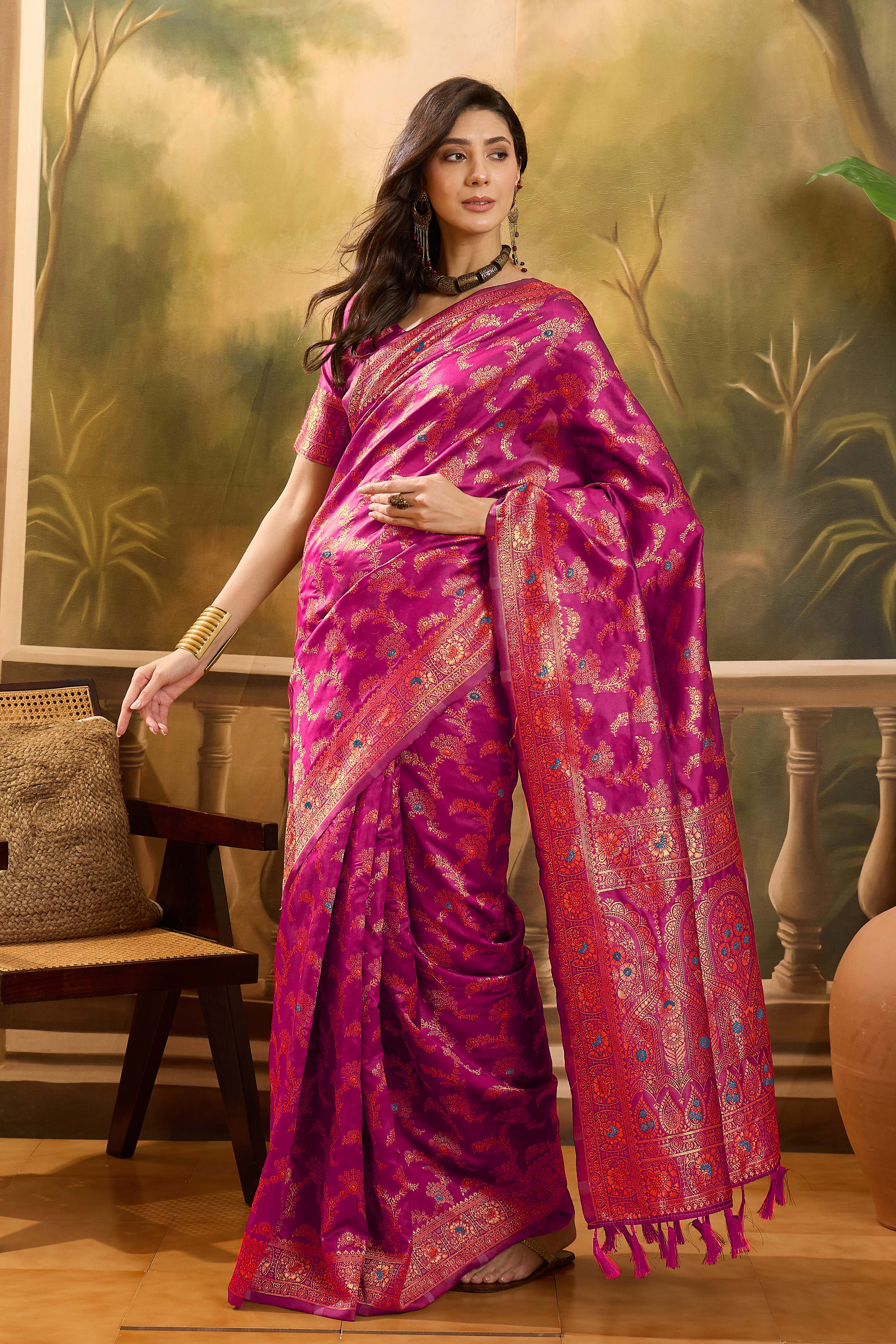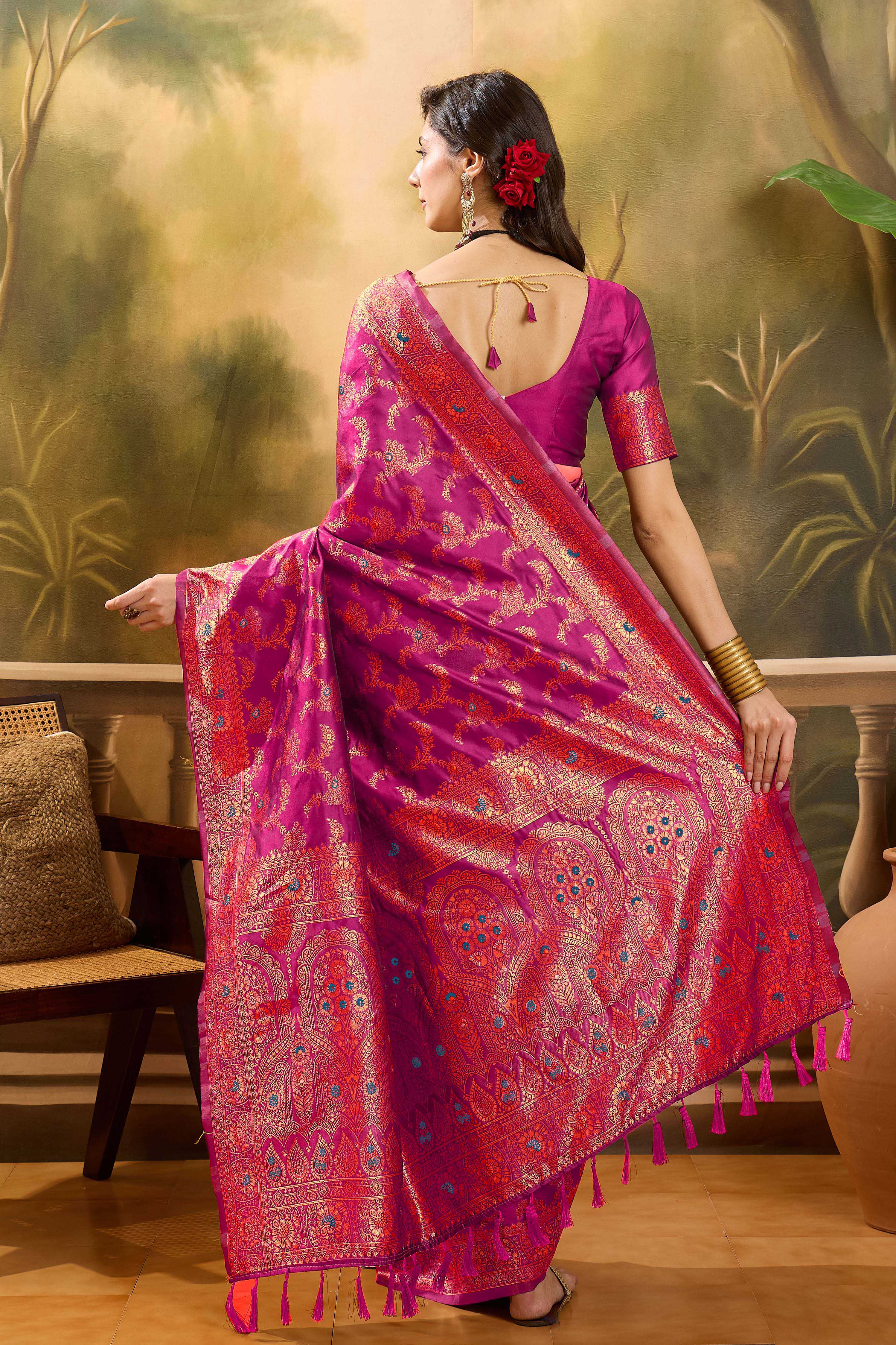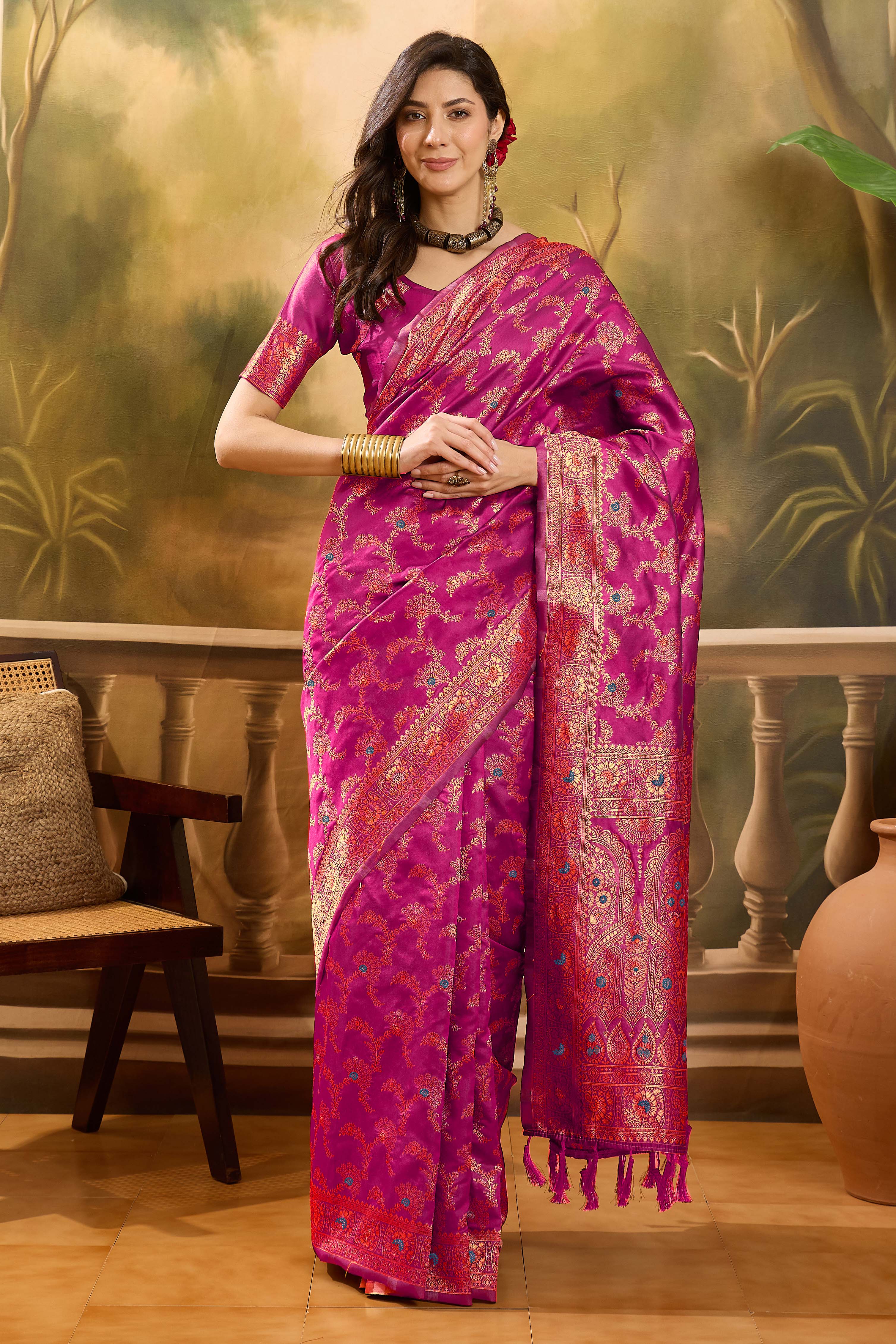 AASTHA FASHION Fashion Dream Womens Pink Banarasi Jacquard Saree | Soft & Elegant Traditional Wear
