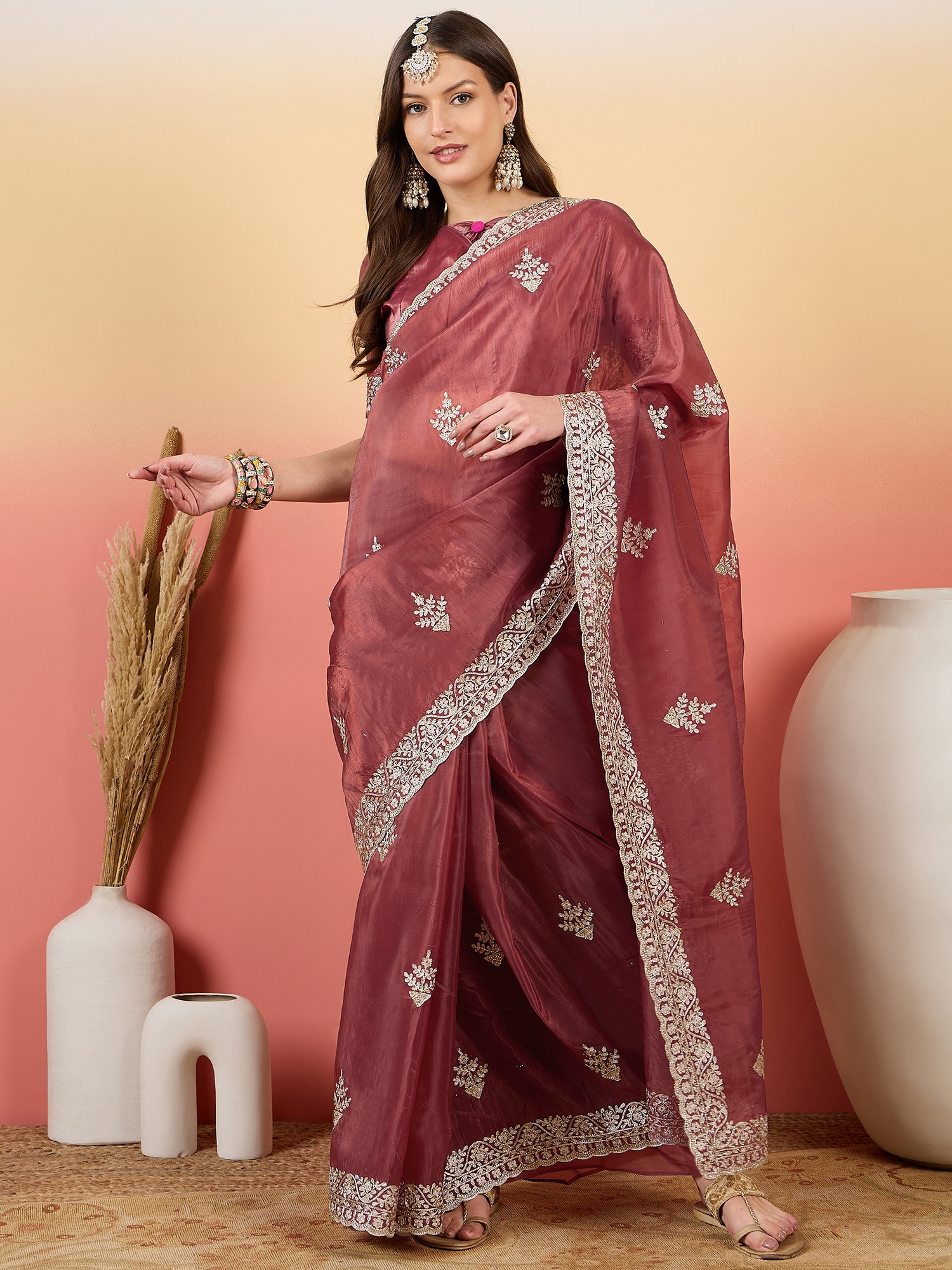 • Saree Work-Embroidered ,Blouse Work- Gold Crush