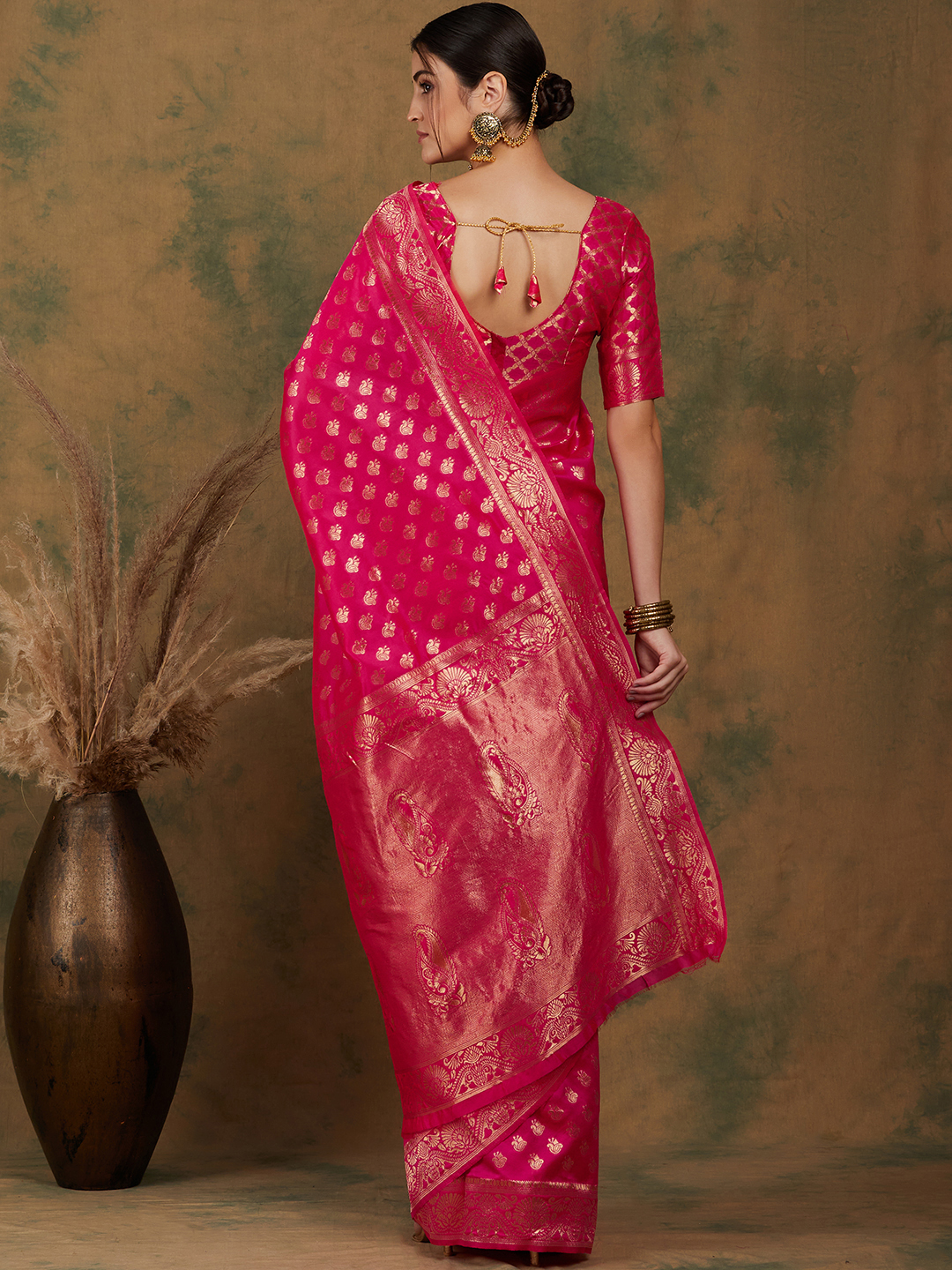 AASTHA FASHION Fashion Dream Womens Pink Kanjivaram Silk Saree | Soft & Elegant Traditional Wear