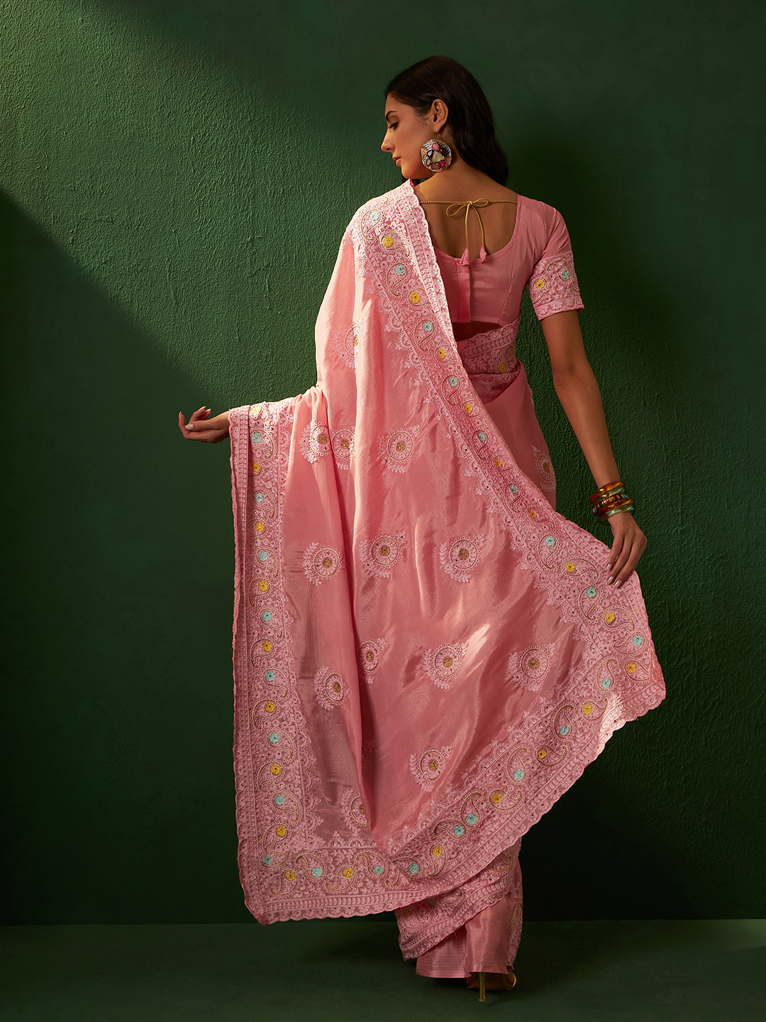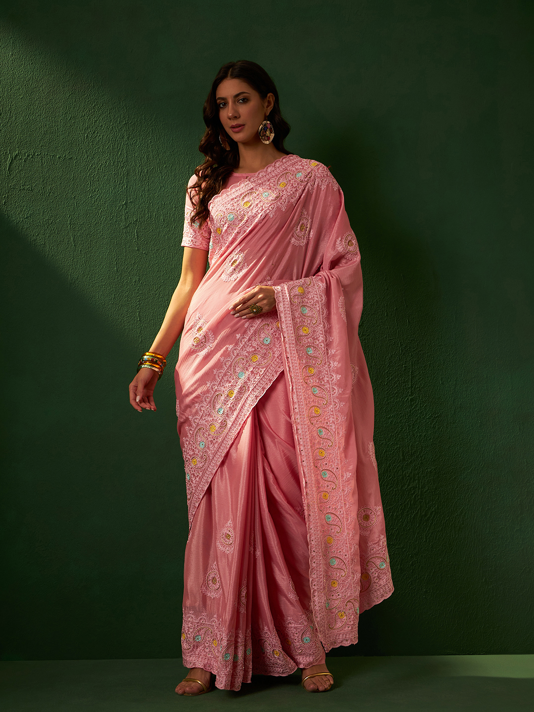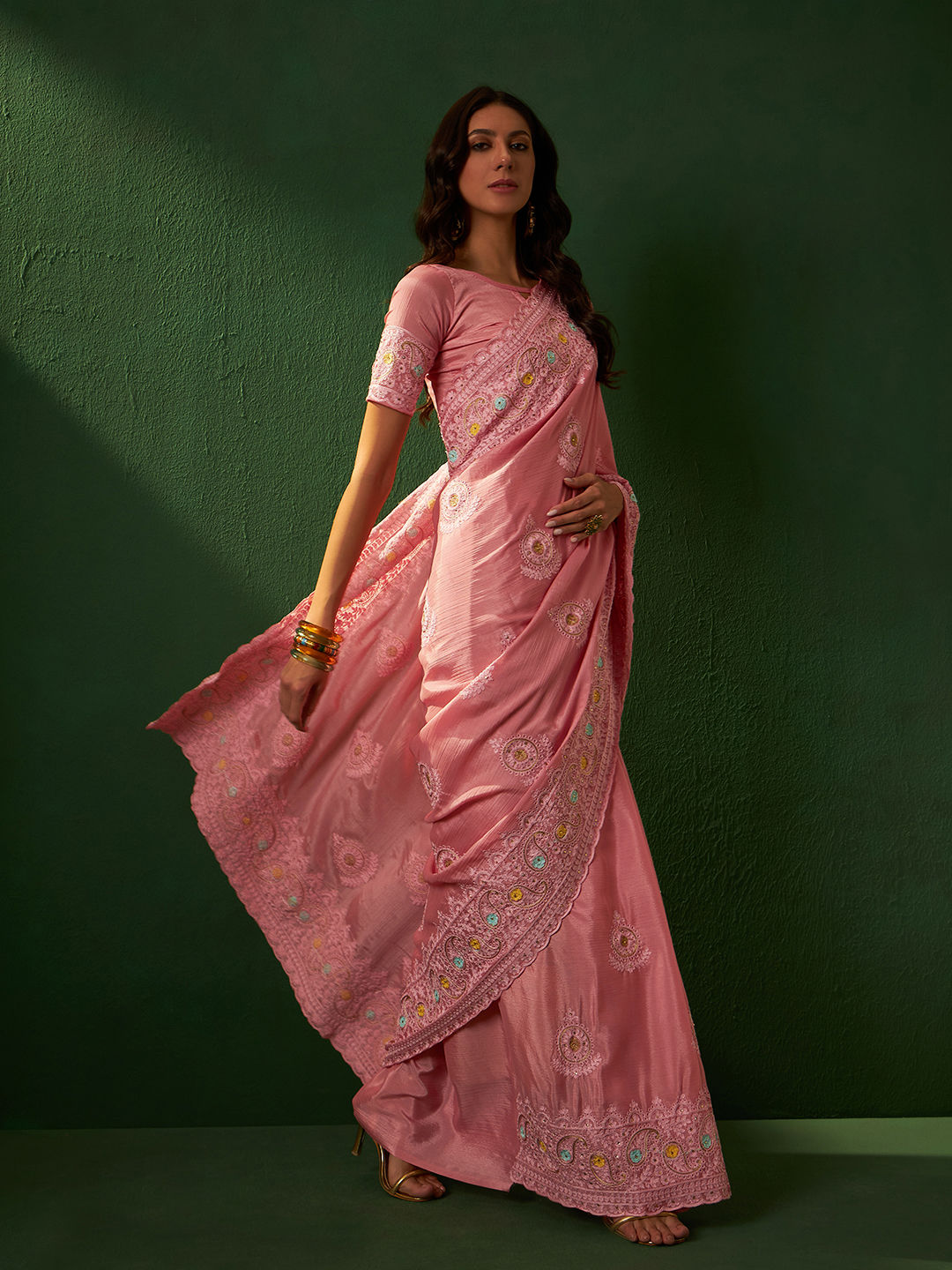 AASTHA FASHION Fashion Dream Womens Pink Lavender Chinon Saree | Soft & Elegant Traditional Wear