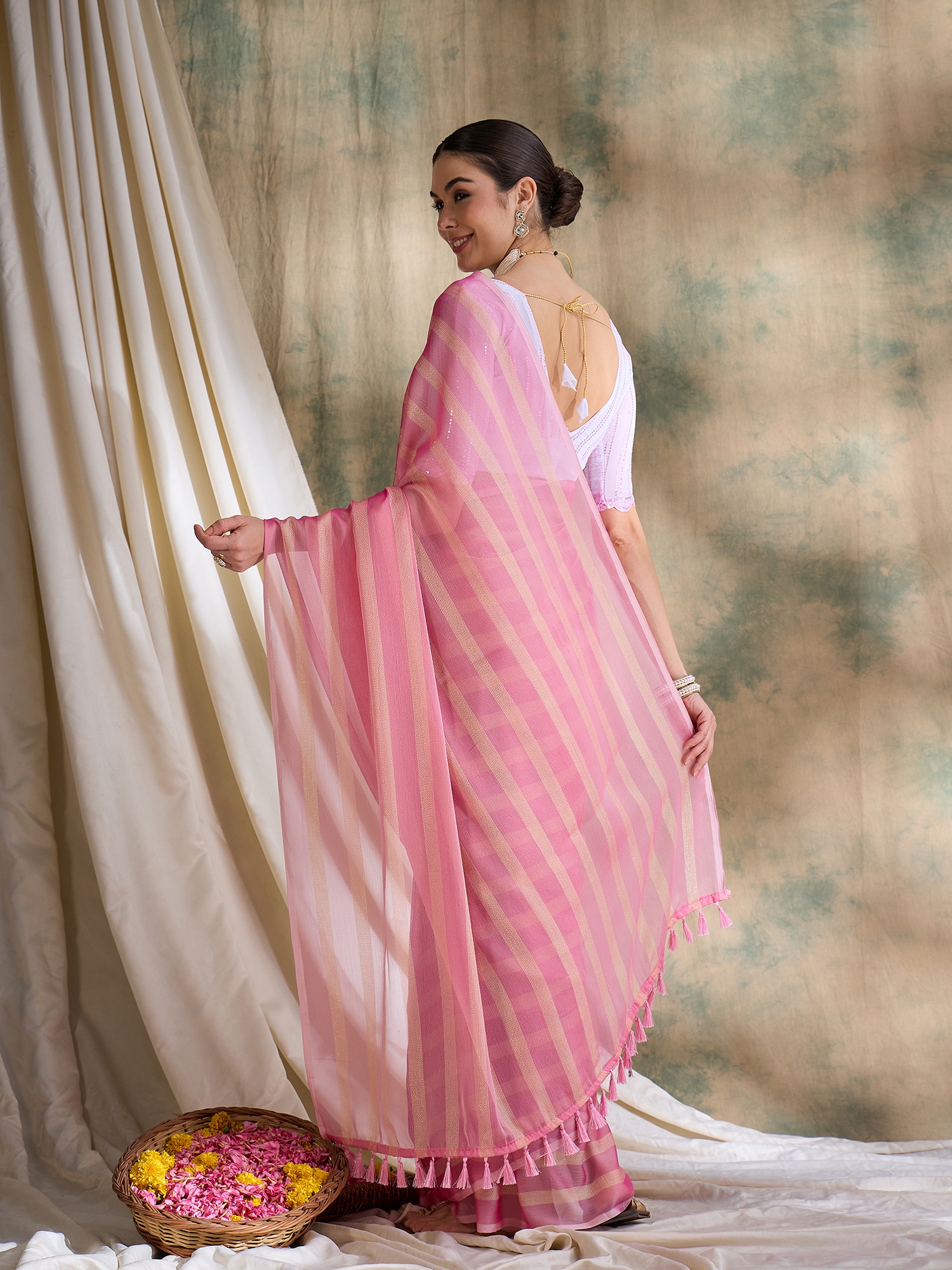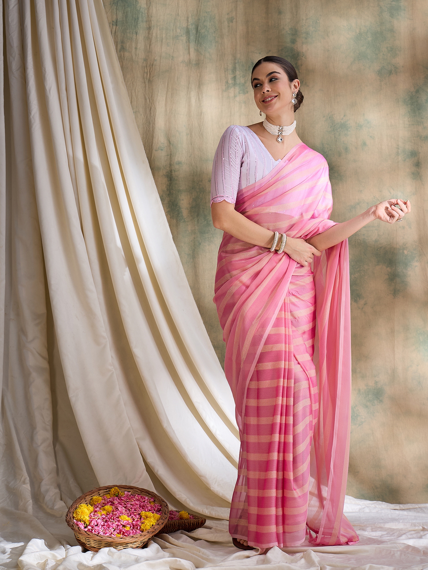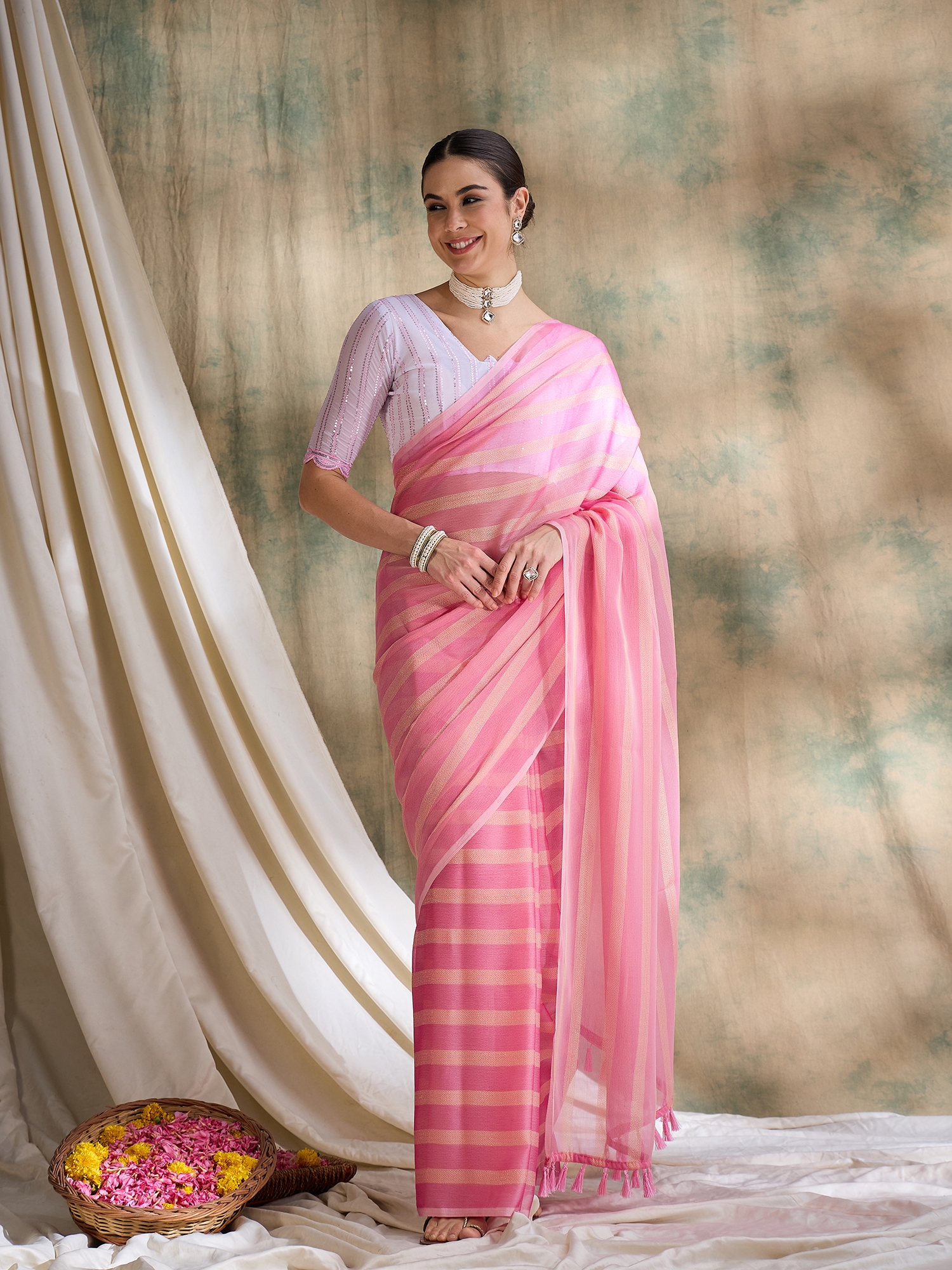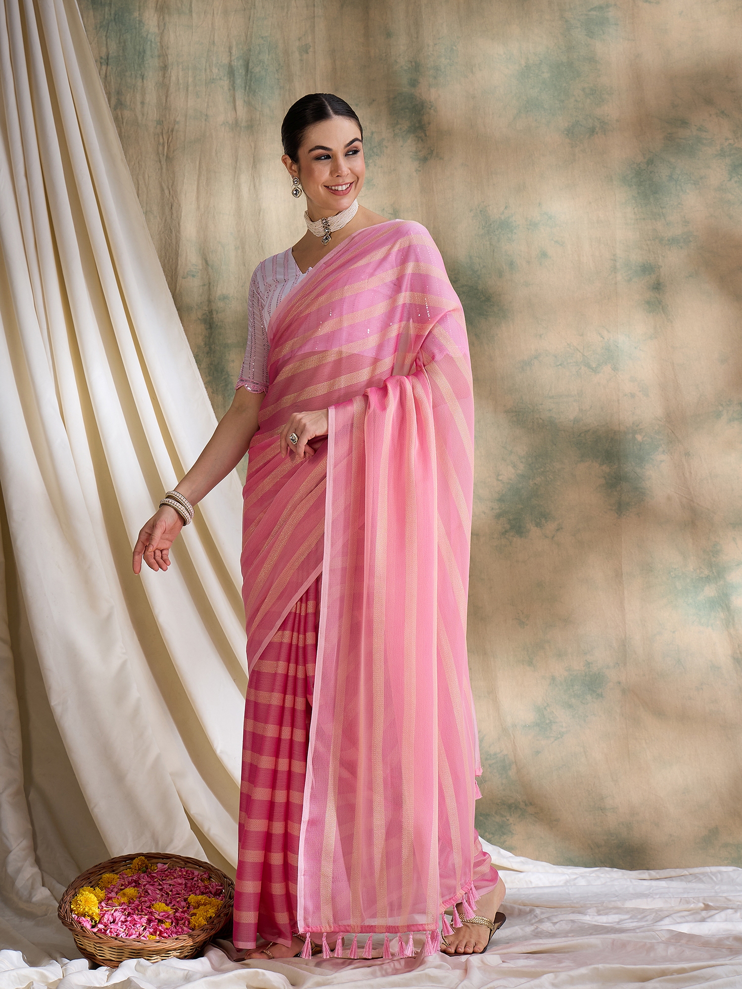 AASTHA FASHION Fashion Dream Womens Pink Vichitra Silk Saree | Soft & Elegant Traditional Wear
