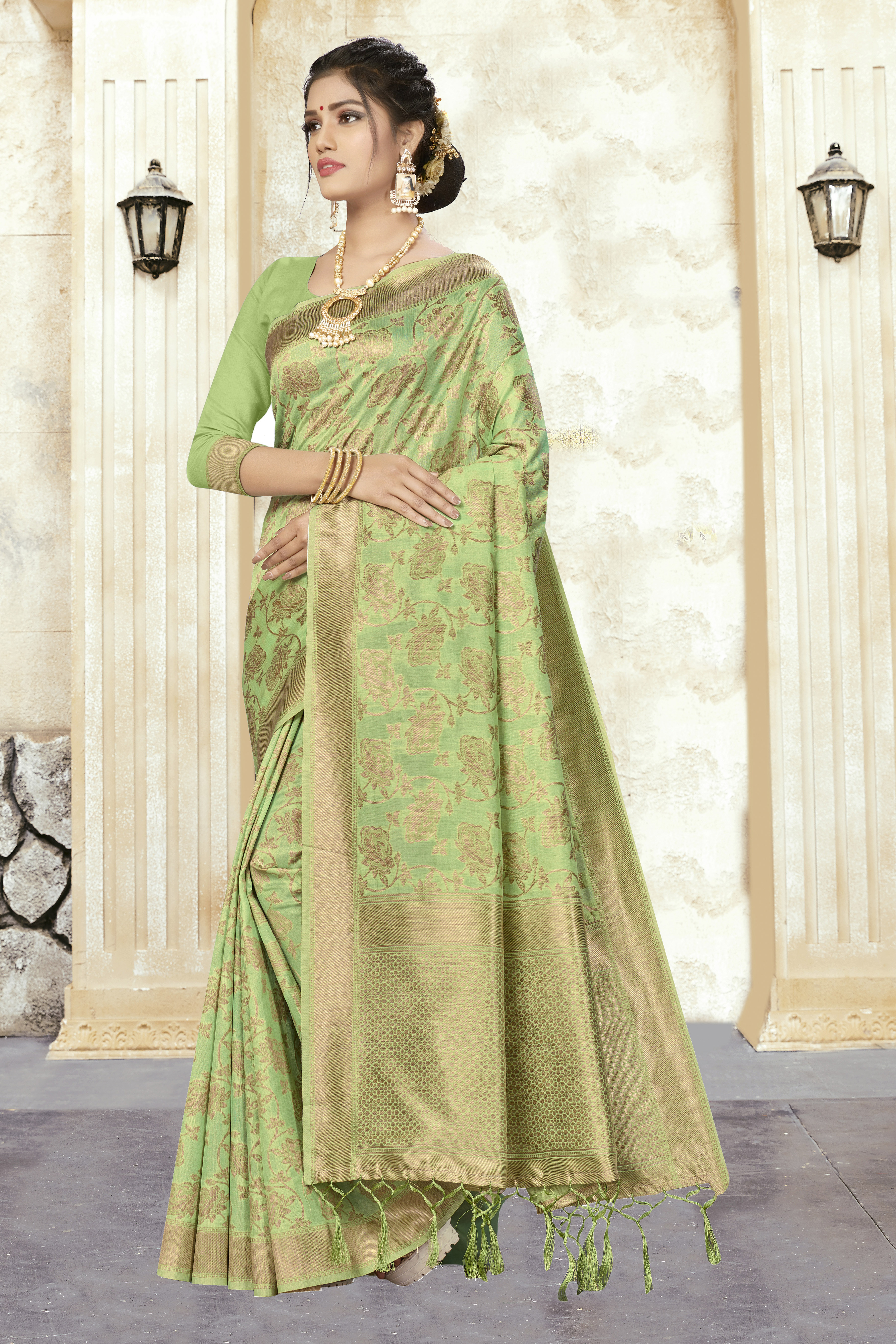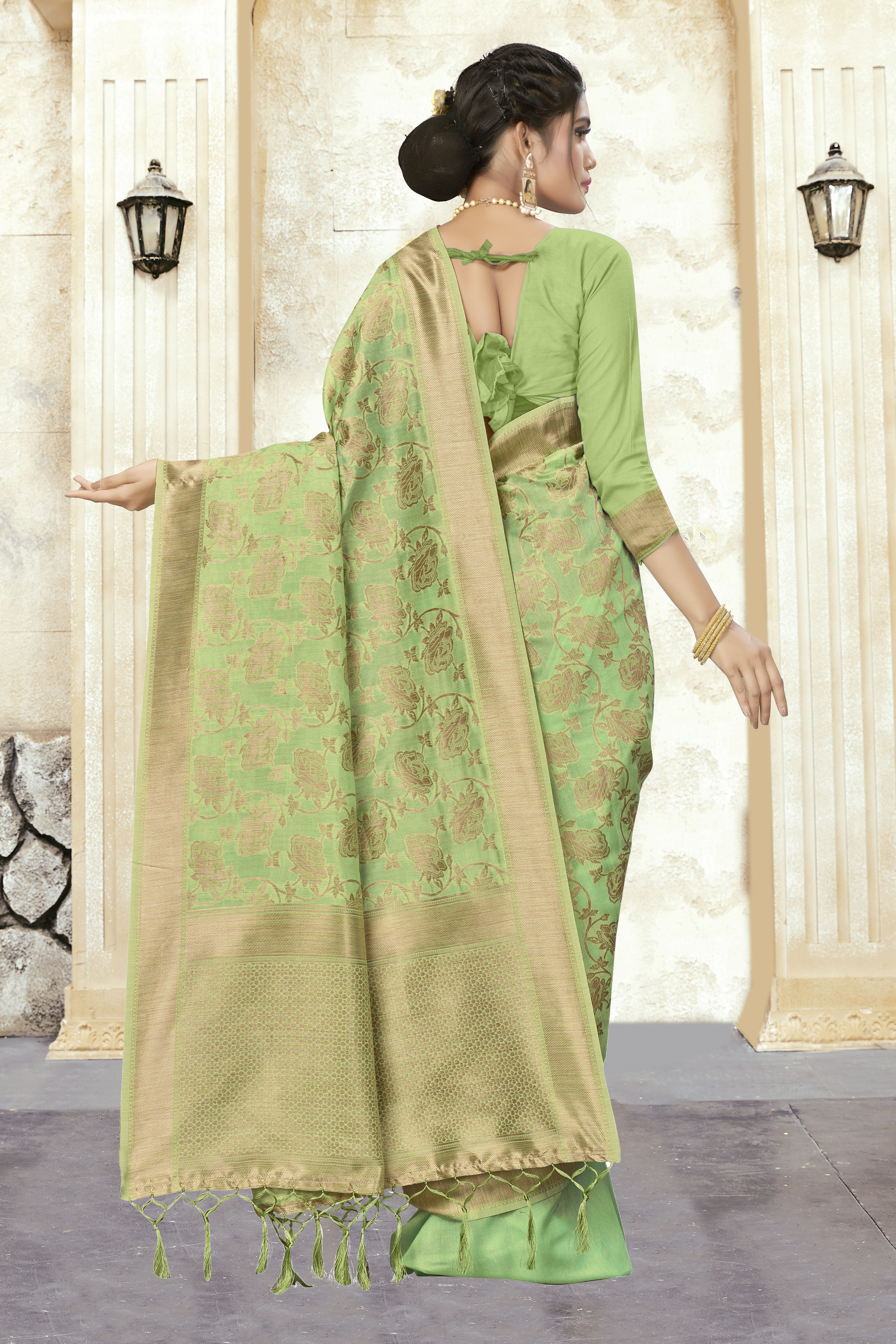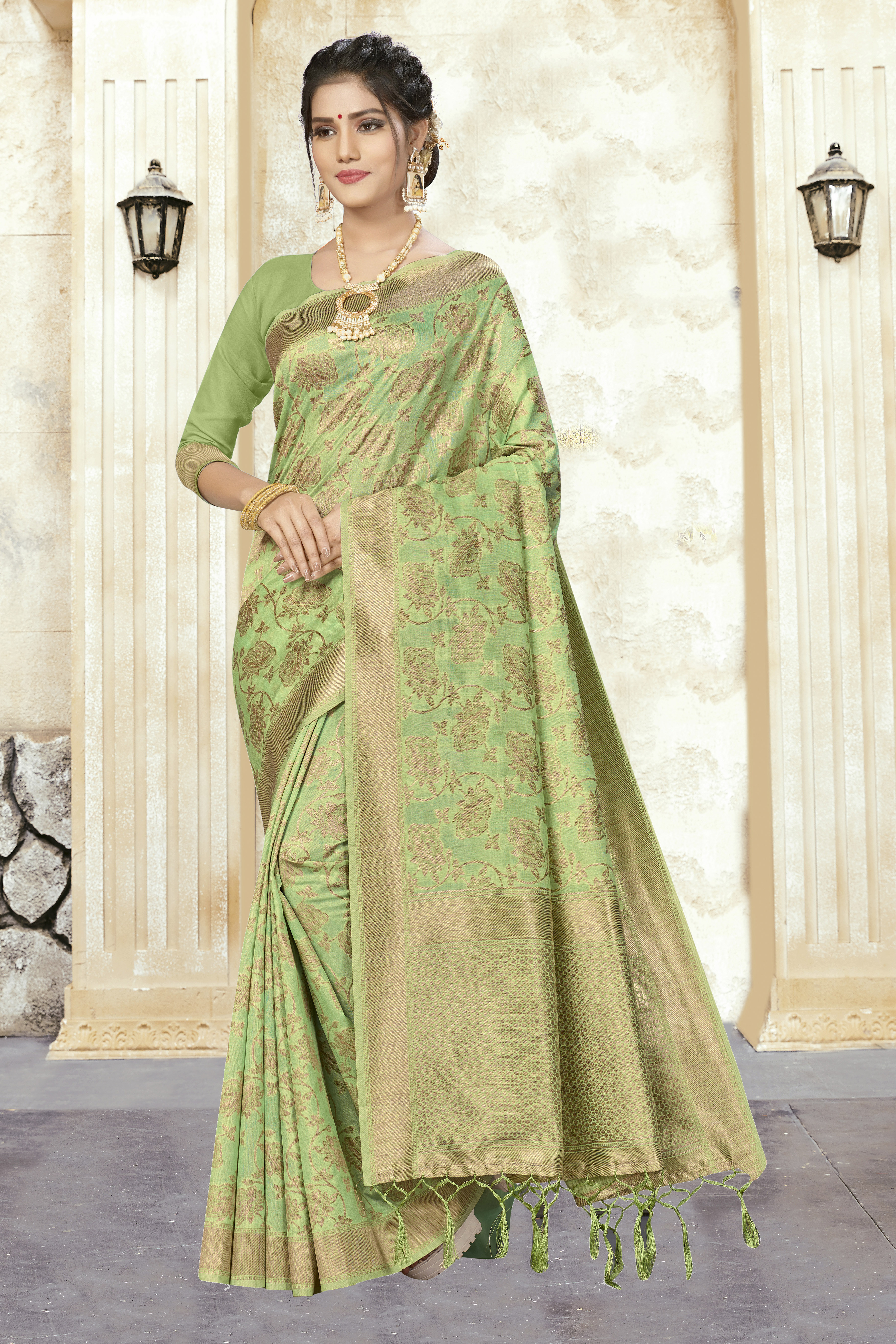 AASTHA FASHION Fashion Dream Womens PISTA GREEN BANARASI SILK Saree | Soft & Elegant Traditional Wear