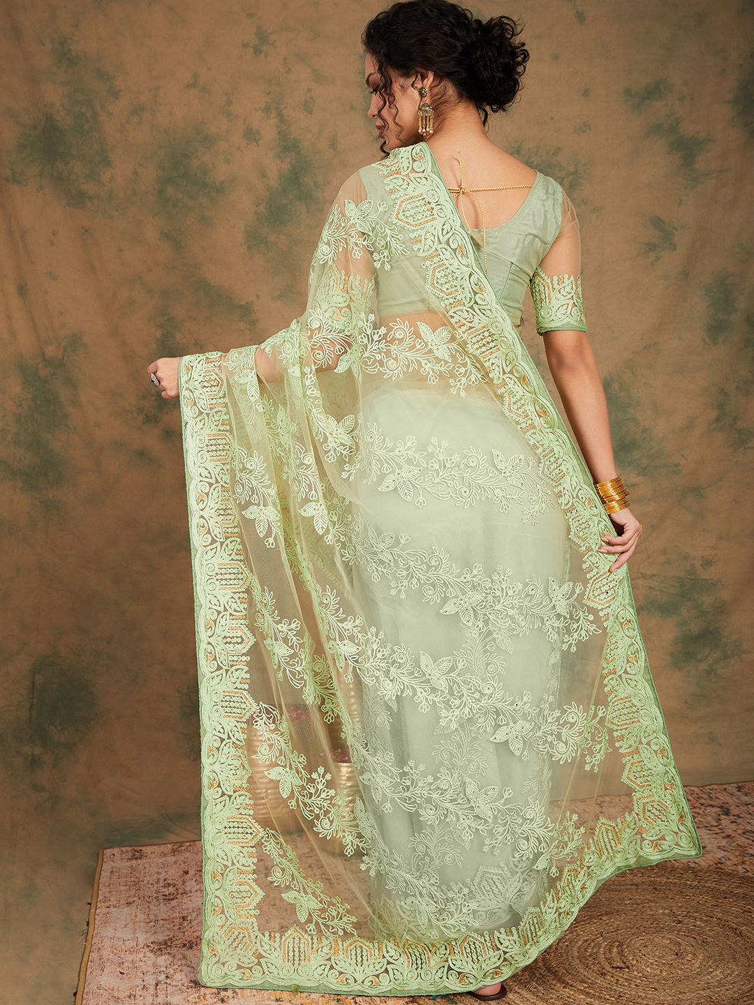 AASTHA FASHION Fashion Dream Womens Pista Green Net Saree | Soft & Elegant Traditional Wear