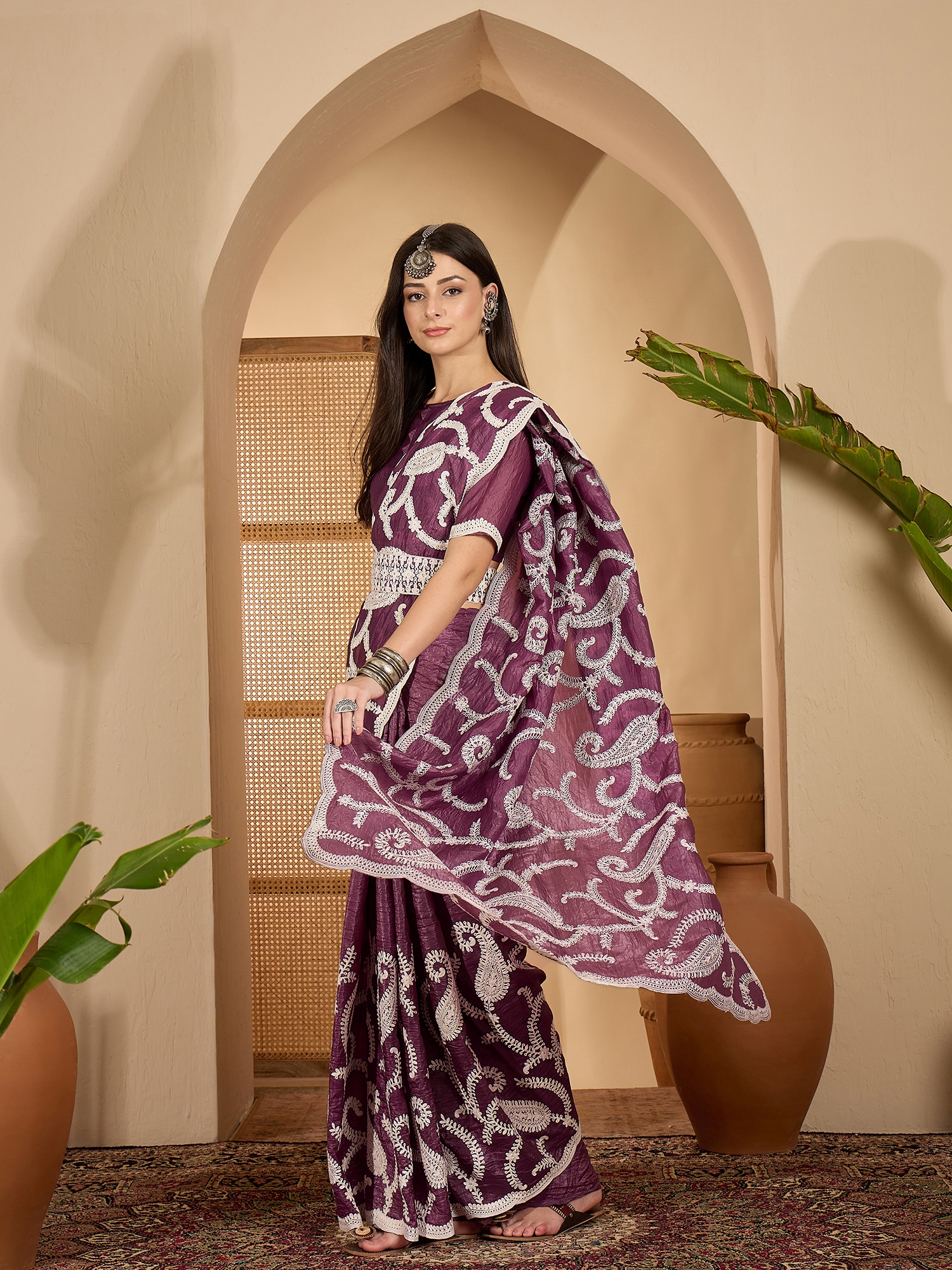 AASTHA FASHION Fashion Dream Womens Purple Gold Crush Saree | Soft & Elegant Traditional Wear