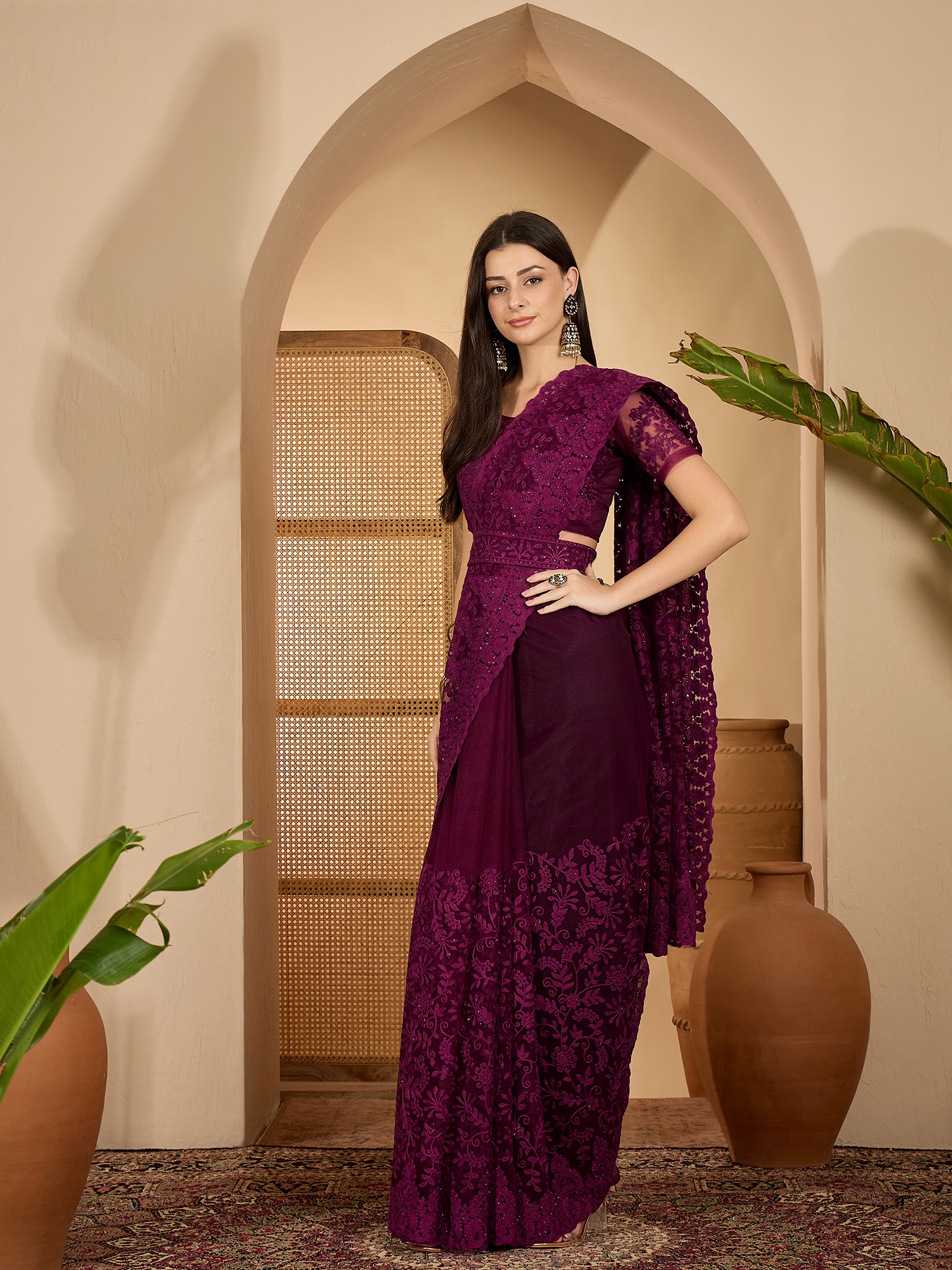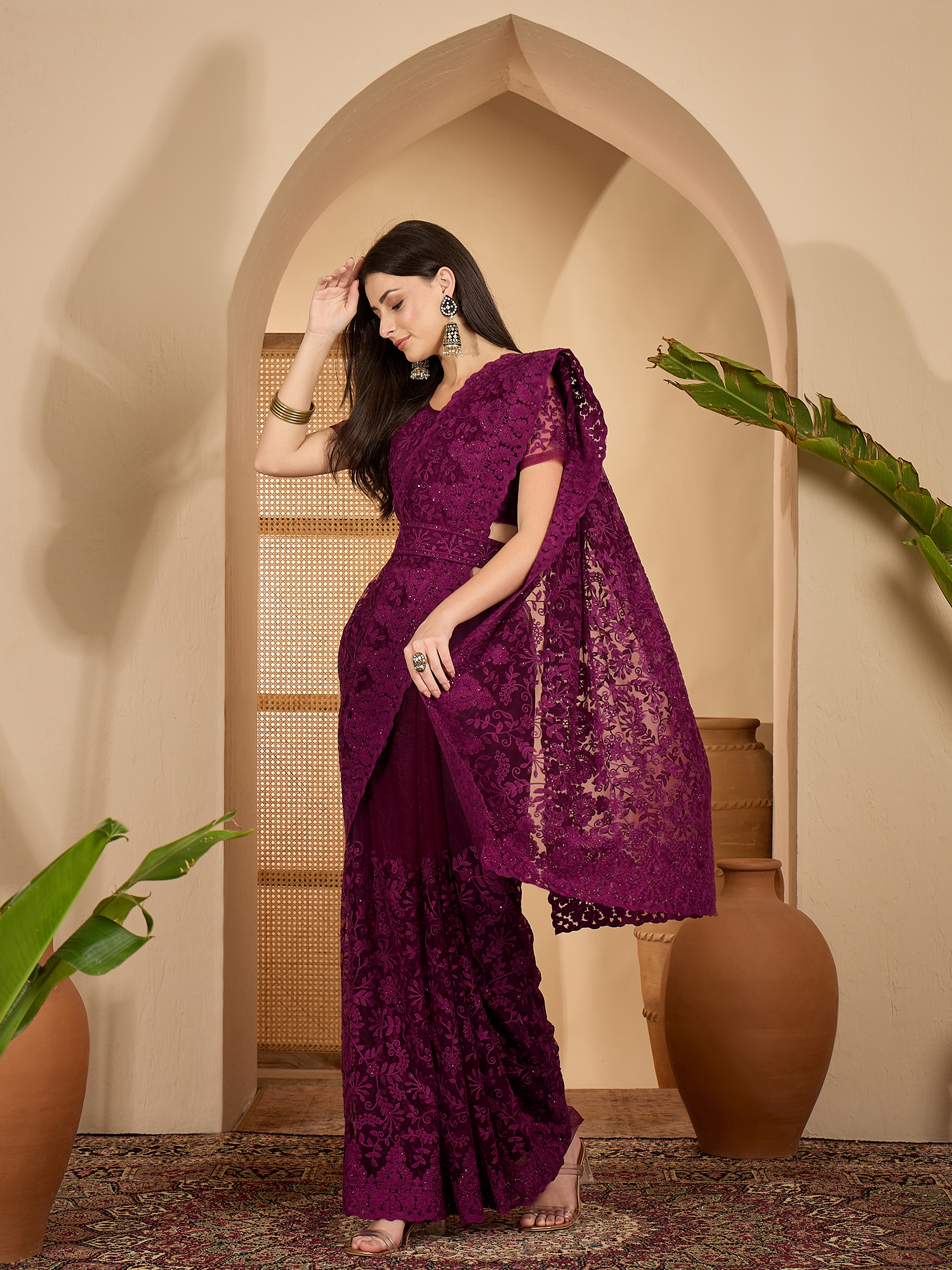 AASTHA FASHION Fashion Dream Womens Purple Heavy Net Saree | Soft & Elegant Traditional Wear