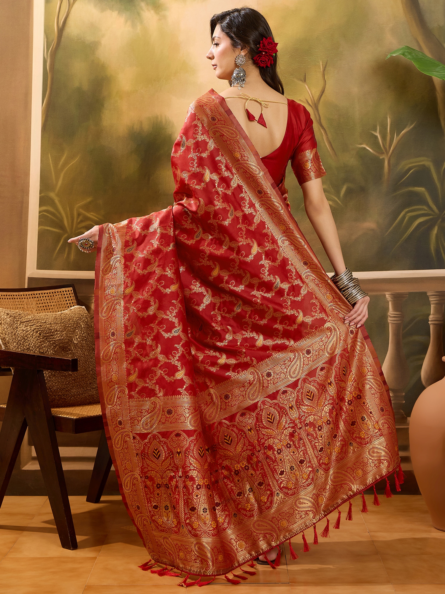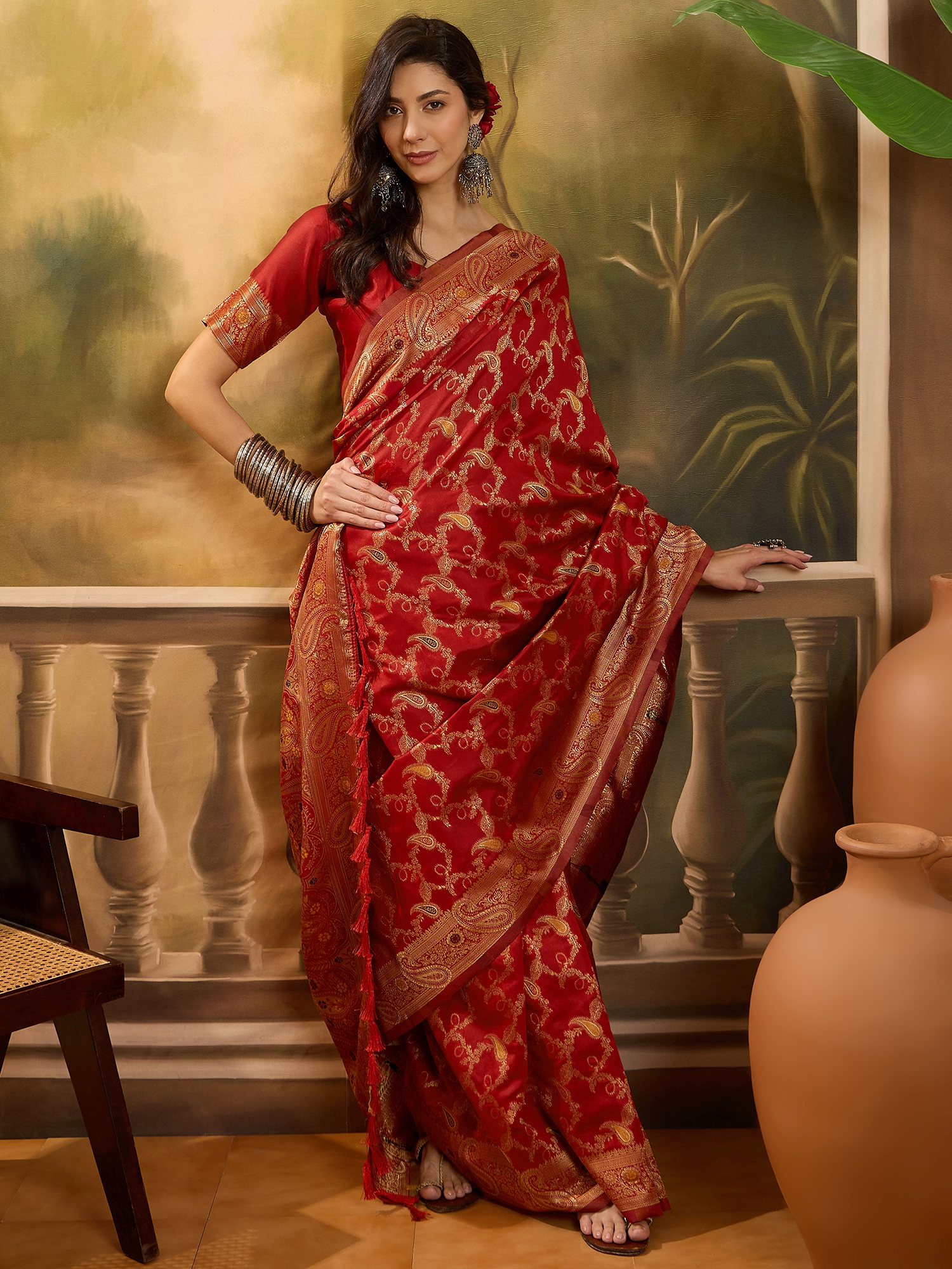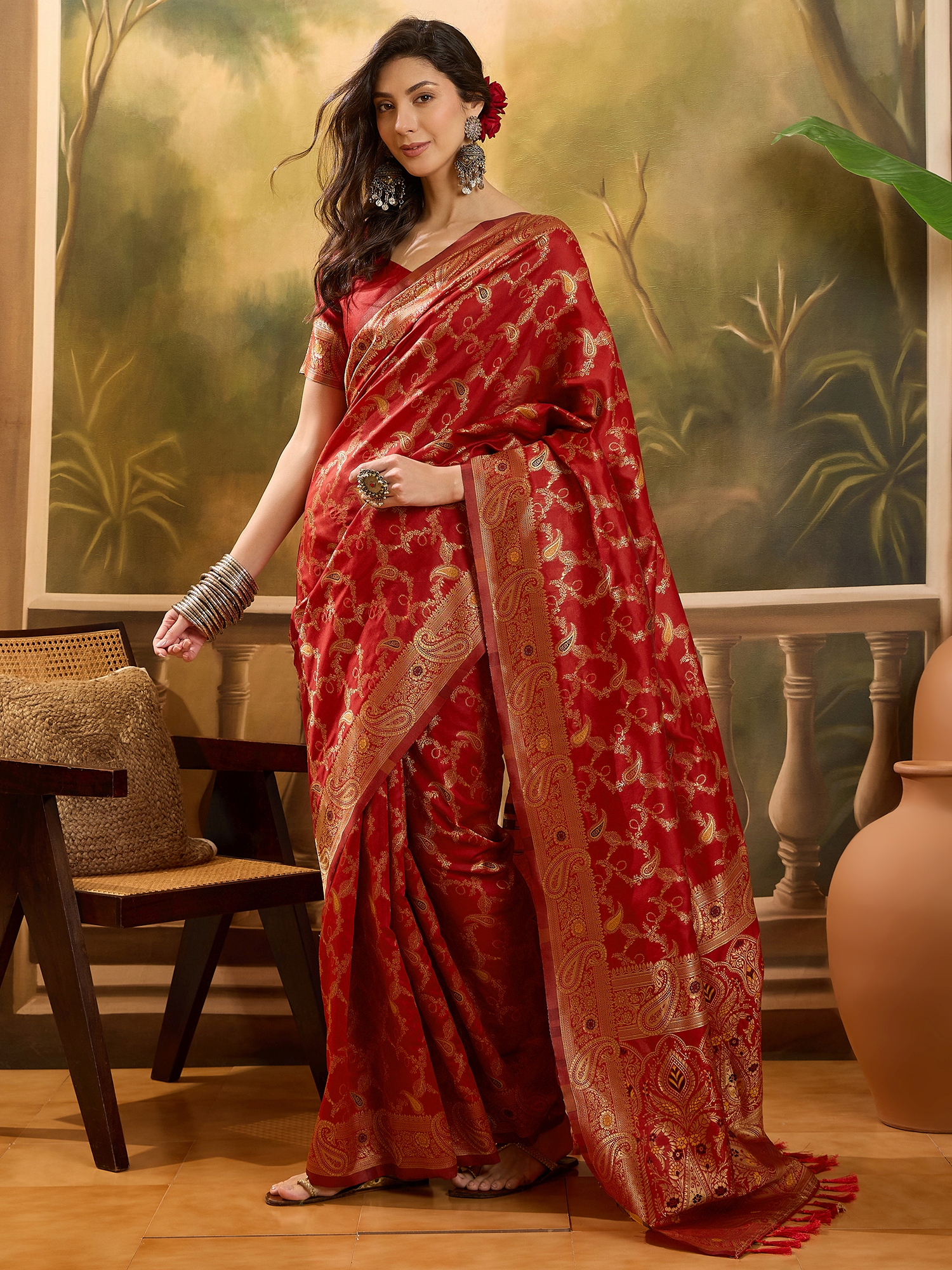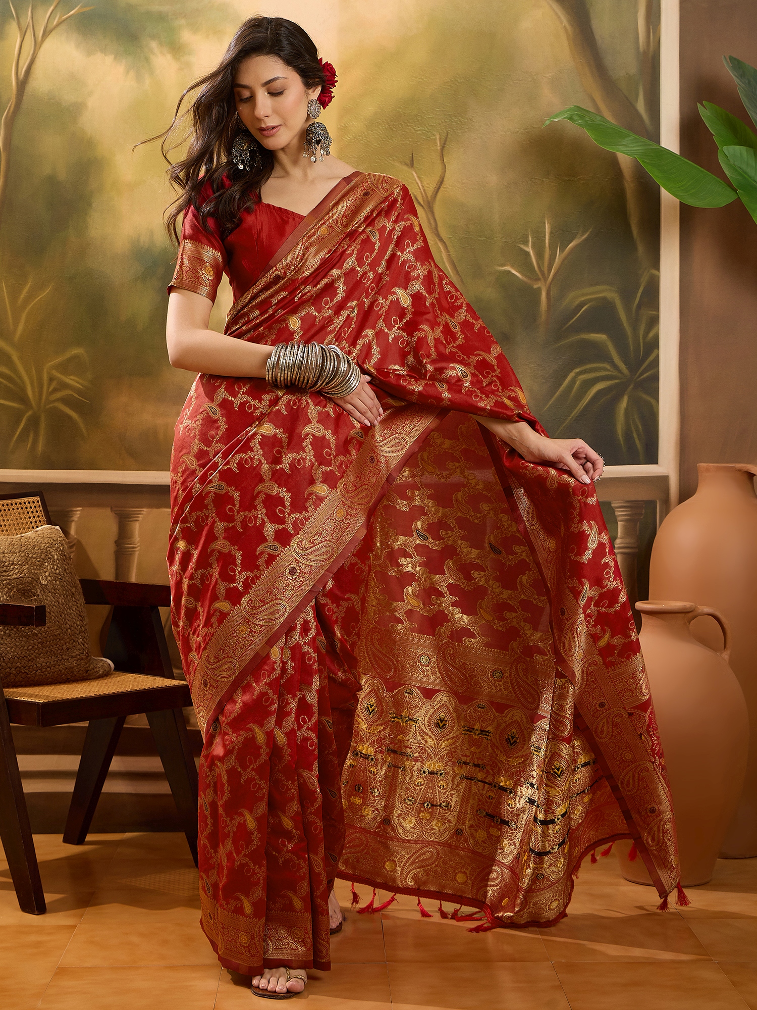 AASTHA FASHION Fashion Dream Womens Red Banarasi Jacquard Saree | Soft & Elegant Traditional Wear