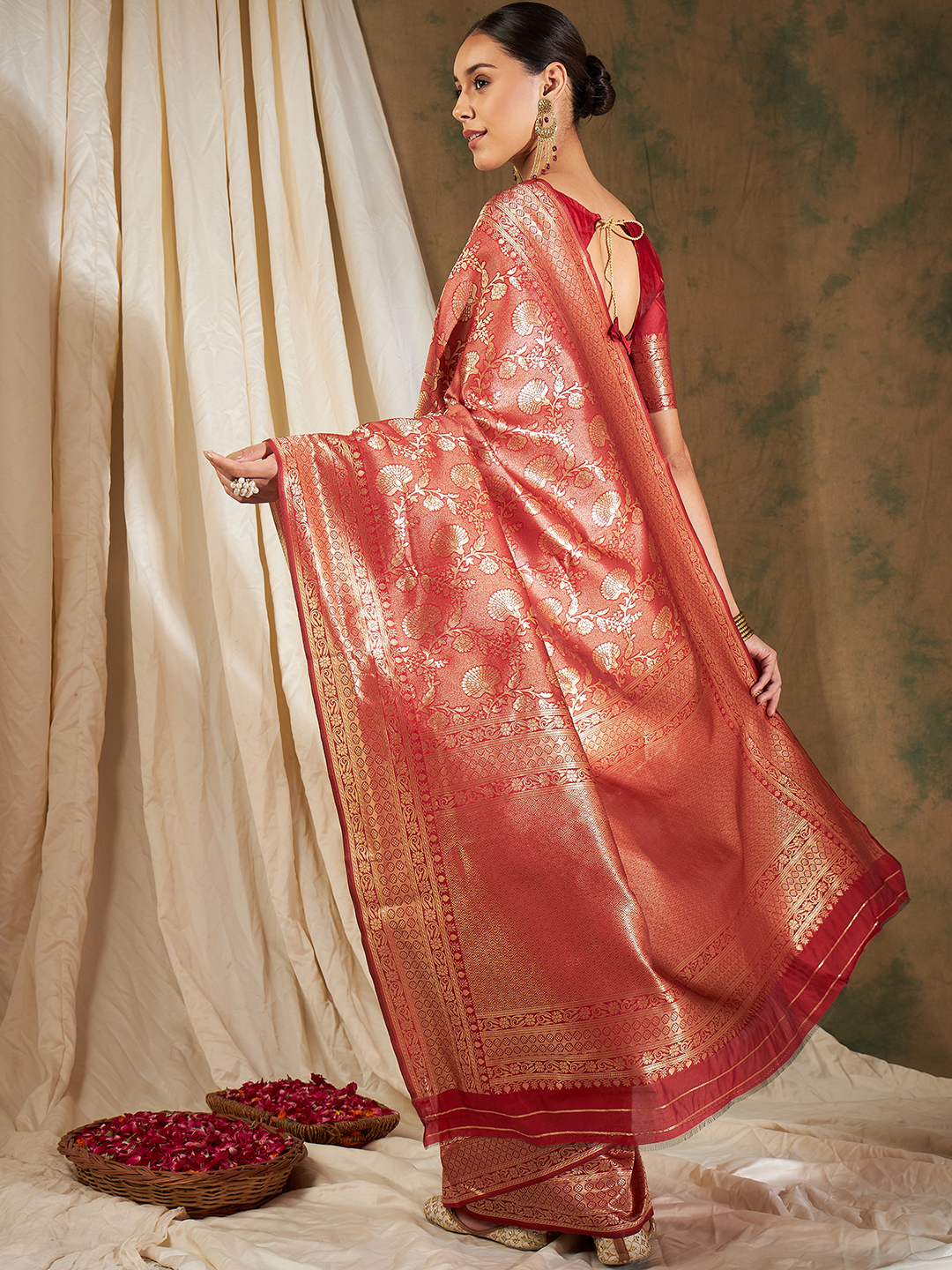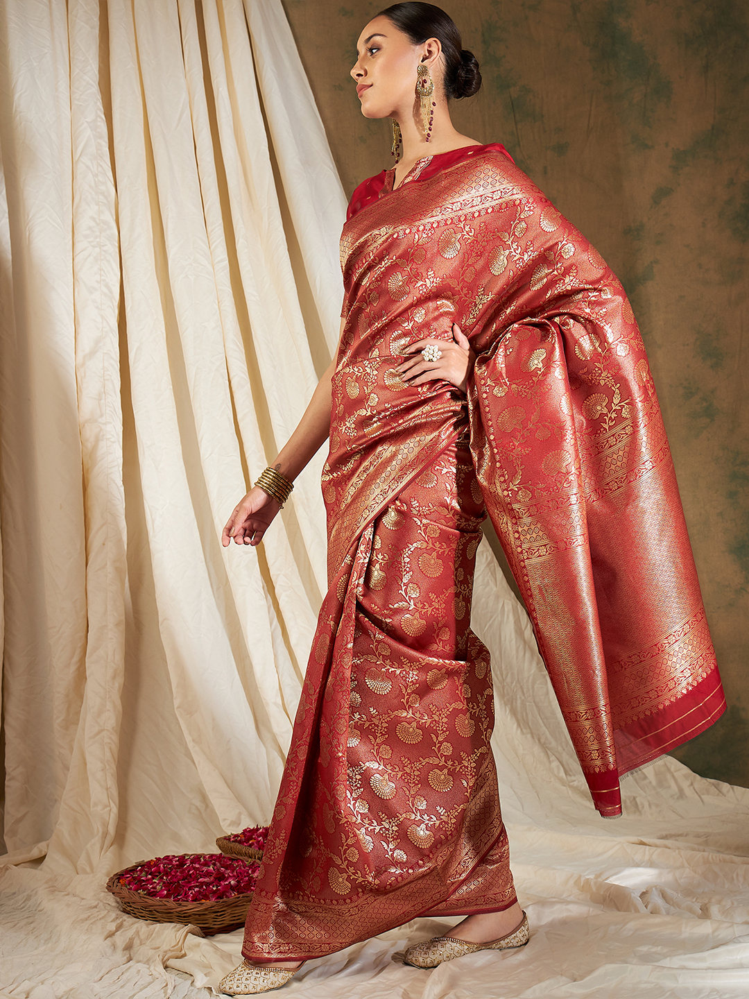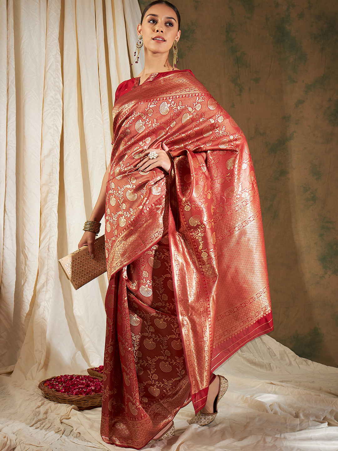 AASTHA FASHION Fashion Dream Womens Red Banarasi Silk Saree | Soft & Elegant Traditional Wear