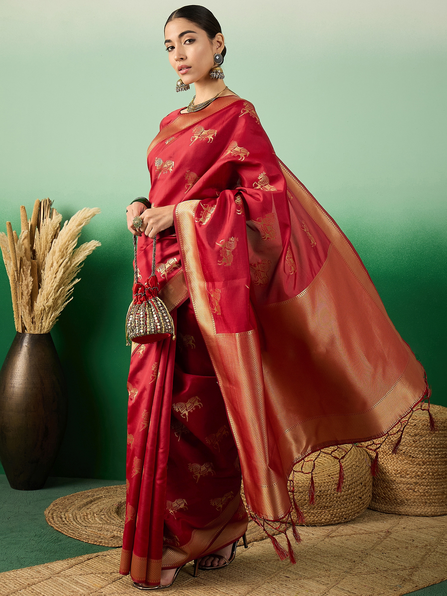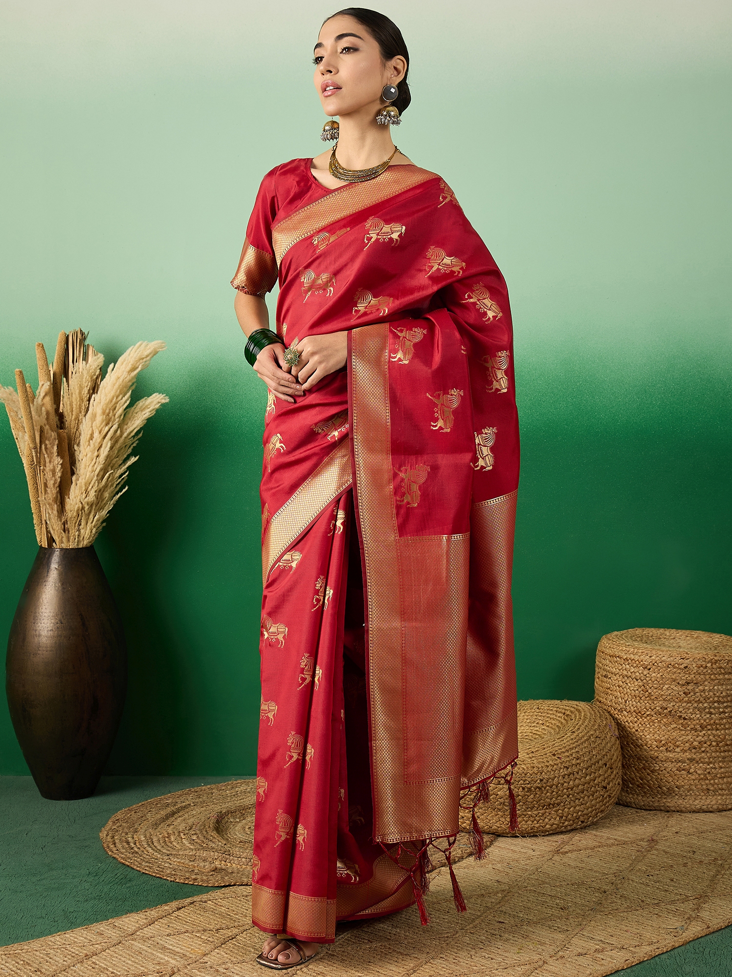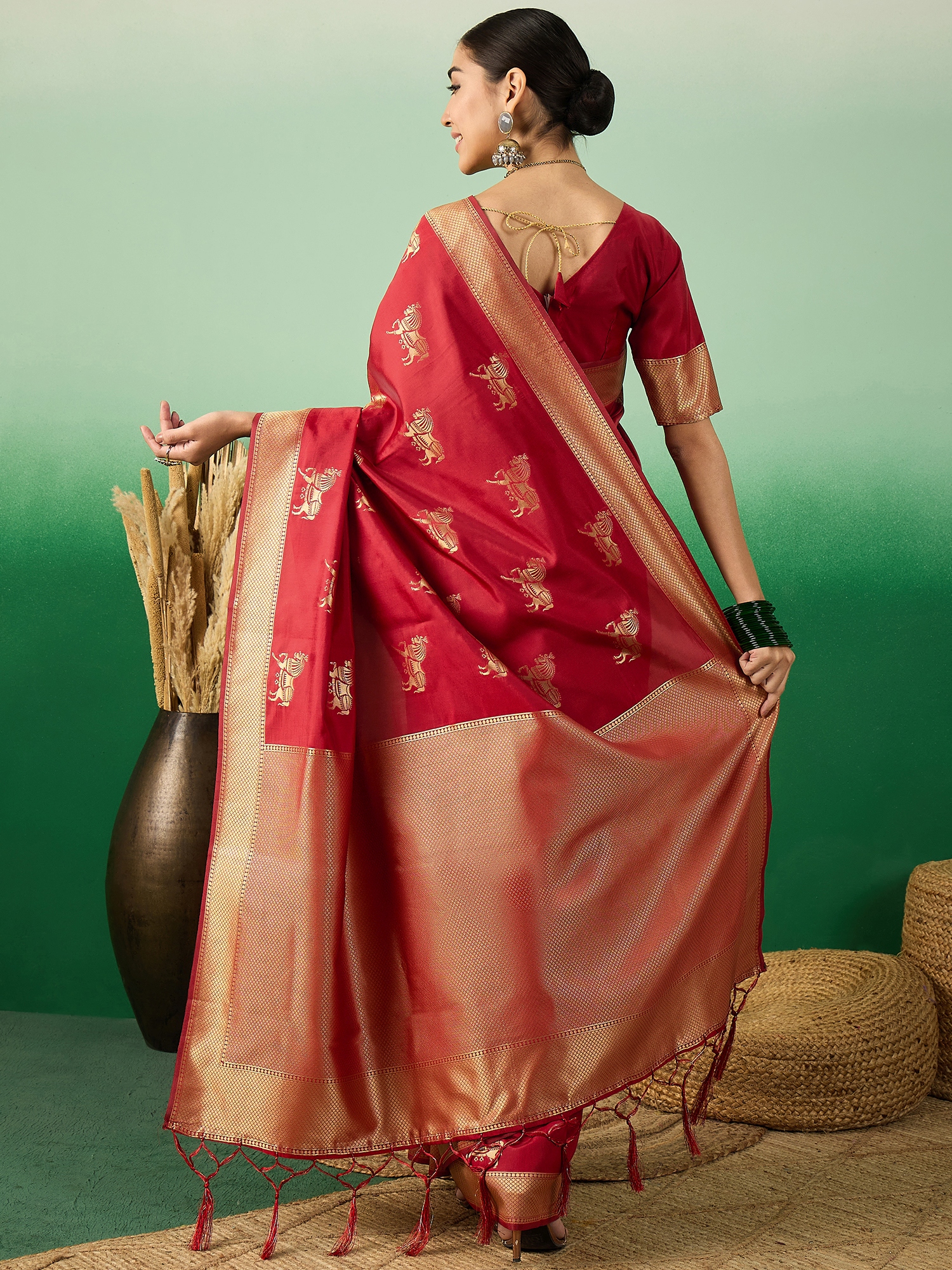 AASTHA FASHION Fashion Dream Womens RED Banarasi Silk Saree | Soft & Elegant Traditional Wear
