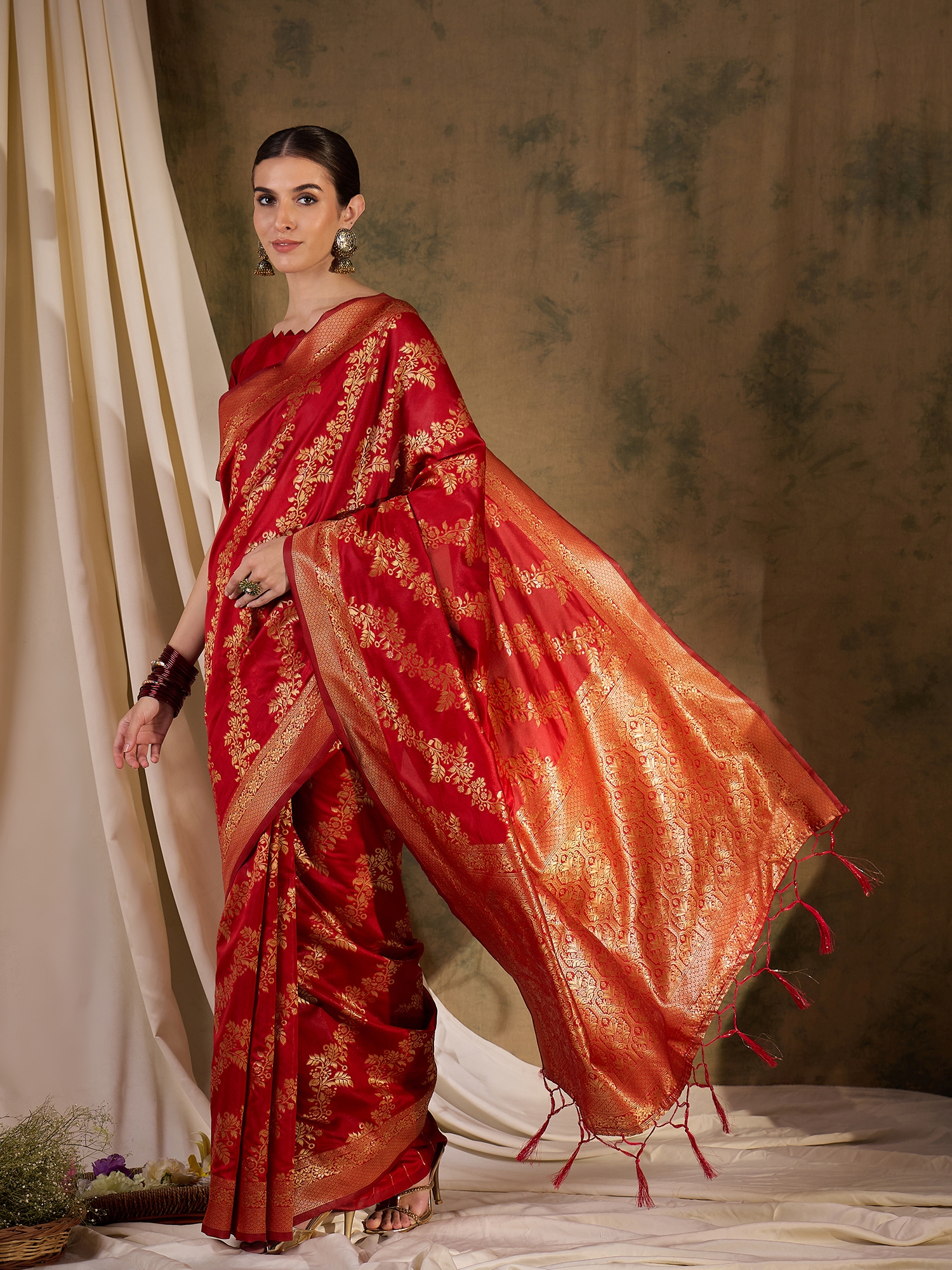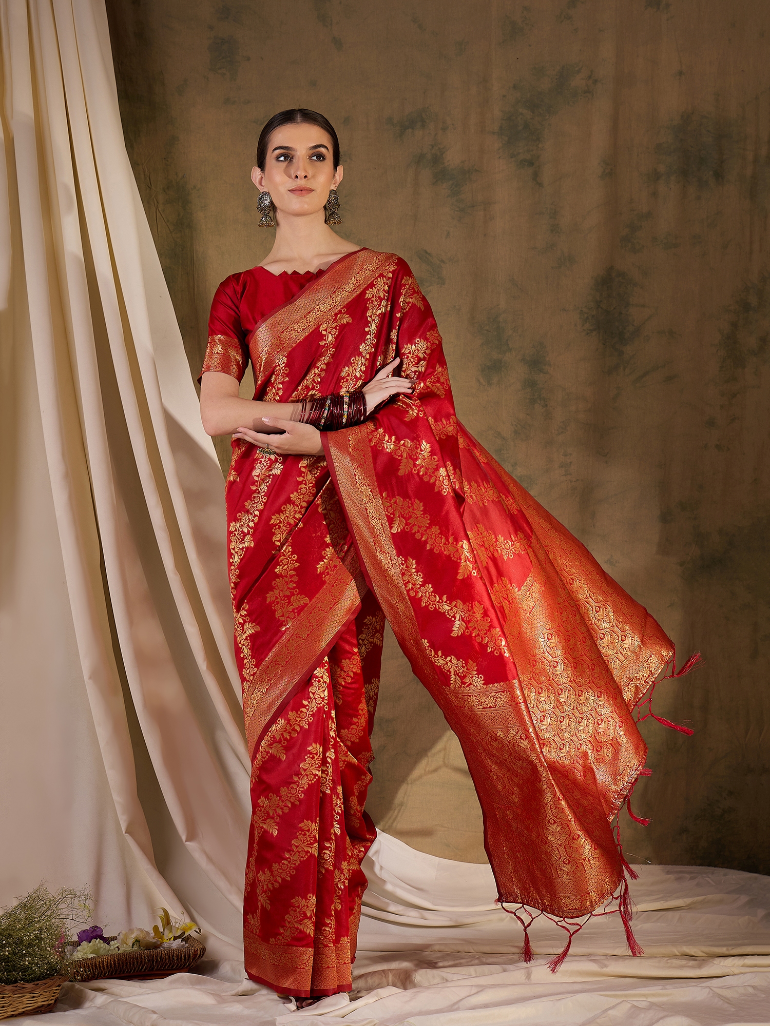 AASTHA FASHION Fashion Dream Womens Red Banarasi Silk Saree | Soft & Elegant Traditional Wear