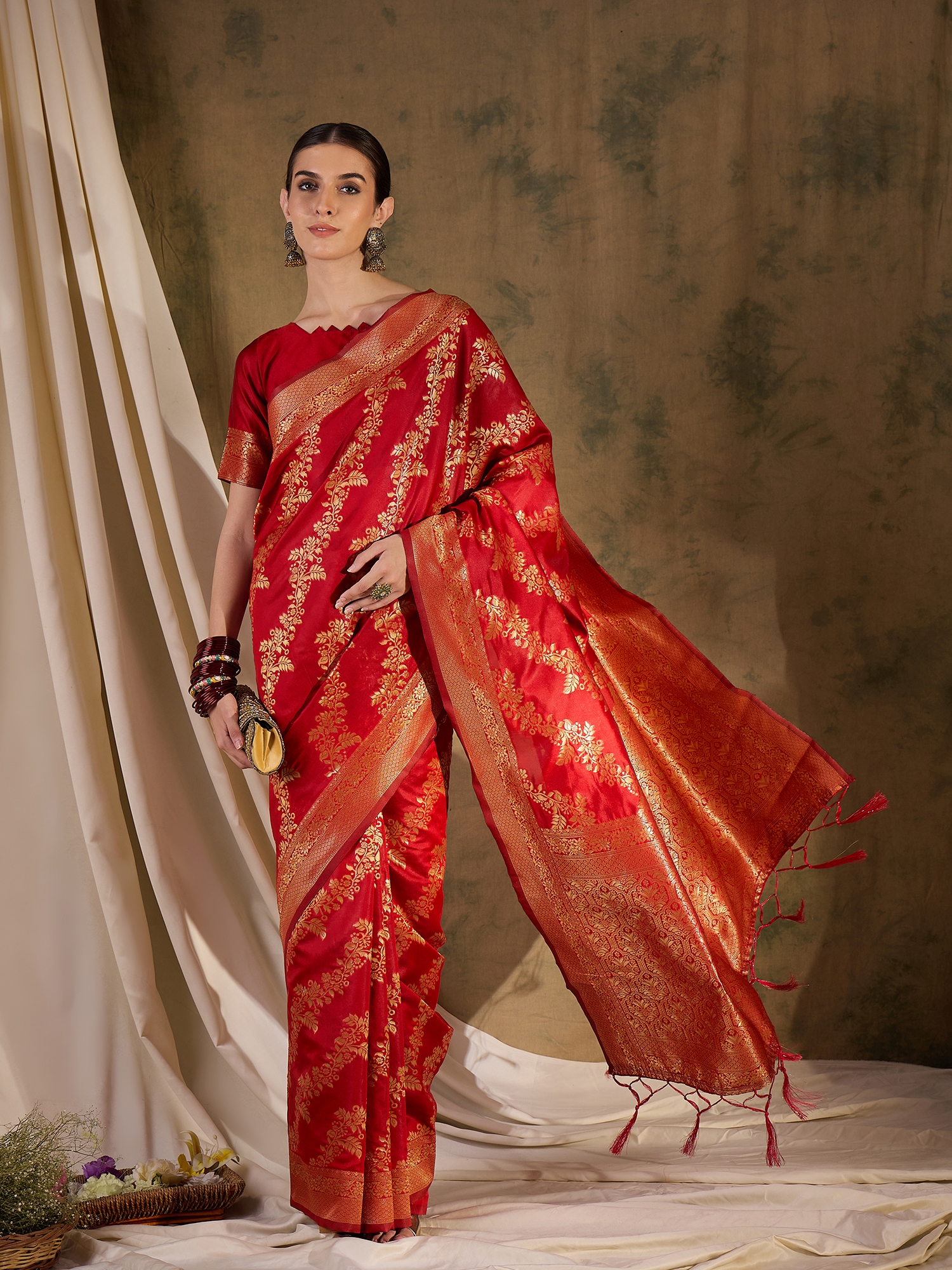 • Saree Fabric-Banarasi Silk ,Blouse Fabric-Banarasi Silk