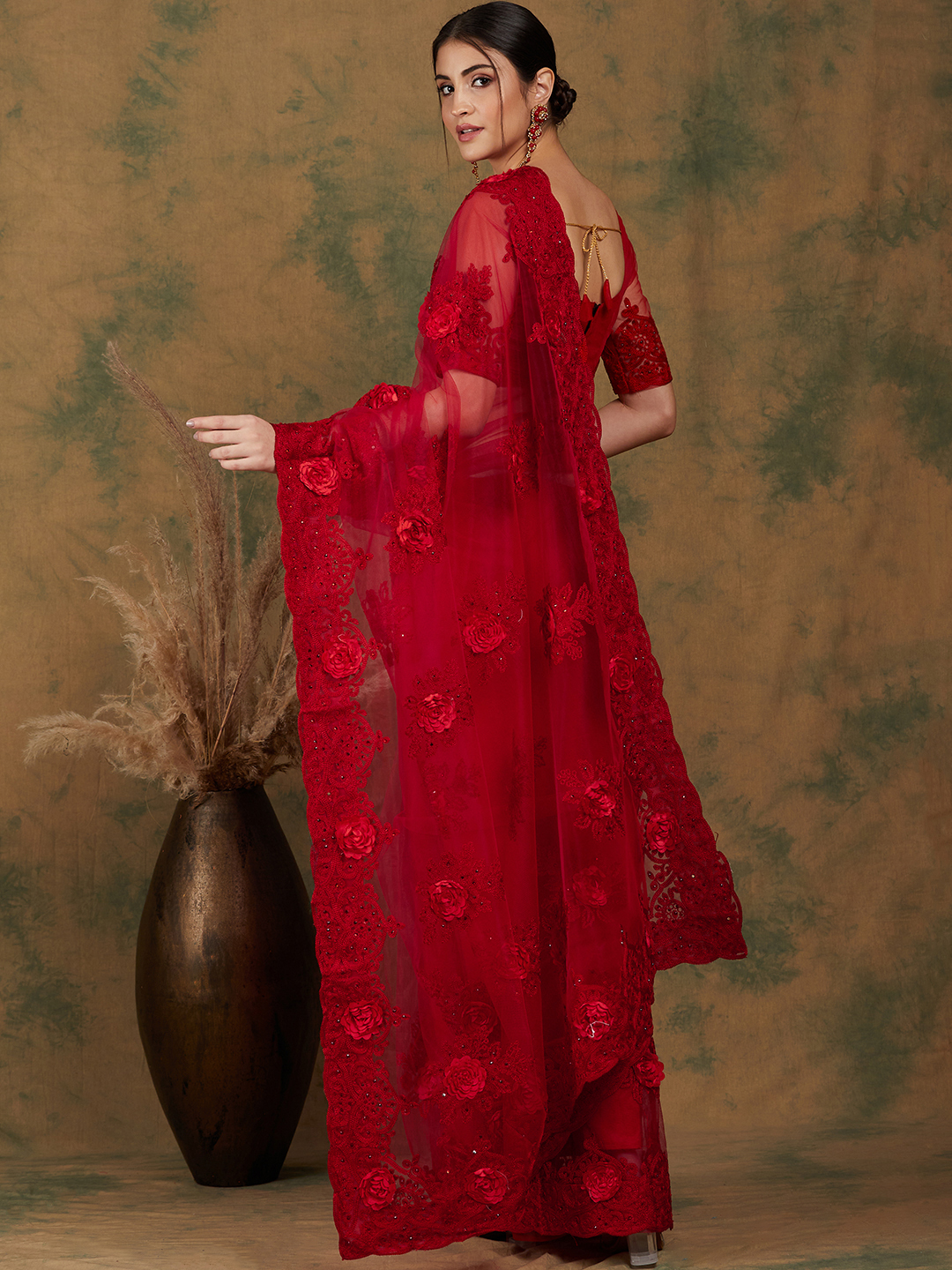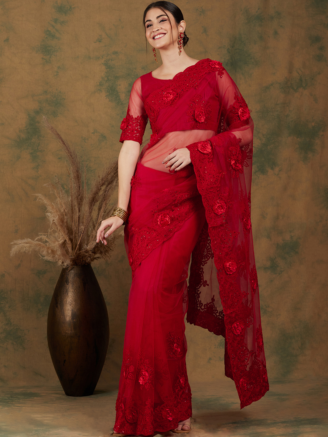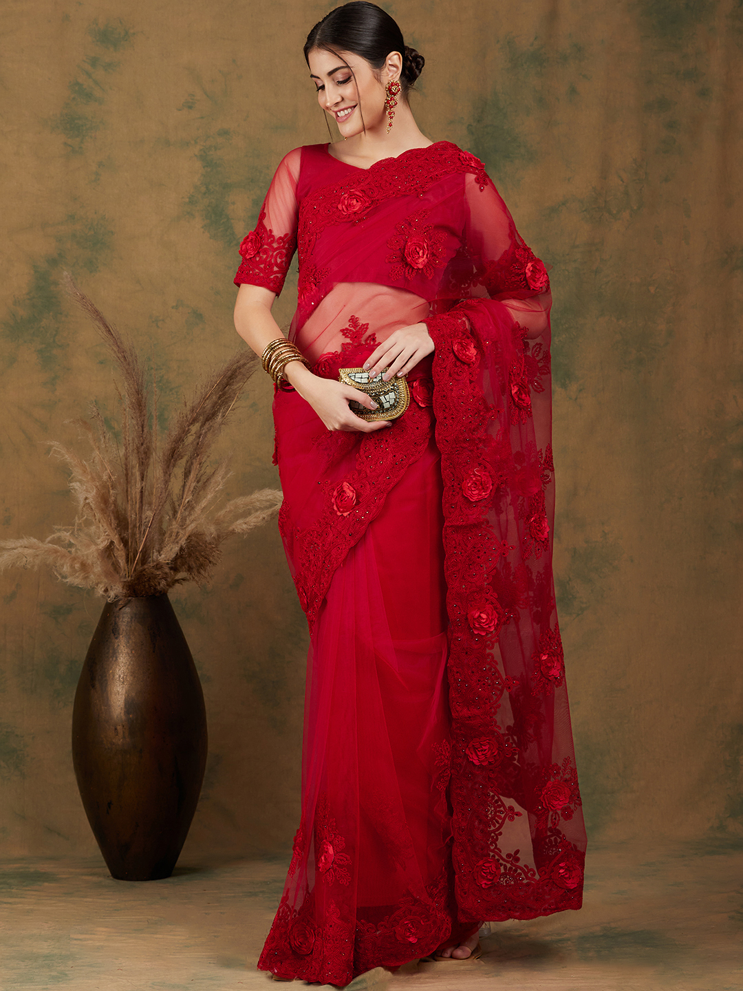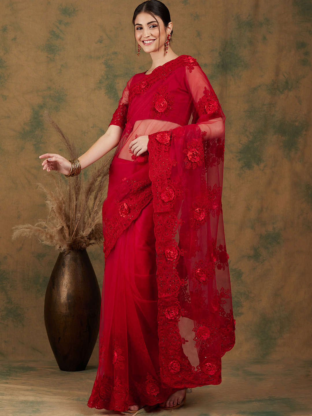 AASTHA FASHION Fashion Dream Womens RED NET Saree | Soft & Elegant Traditional Wear