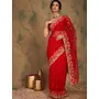 AASTHA FASHION Fashion Dream Womens Red Net Saree | Soft & Elegant Traditional Wear