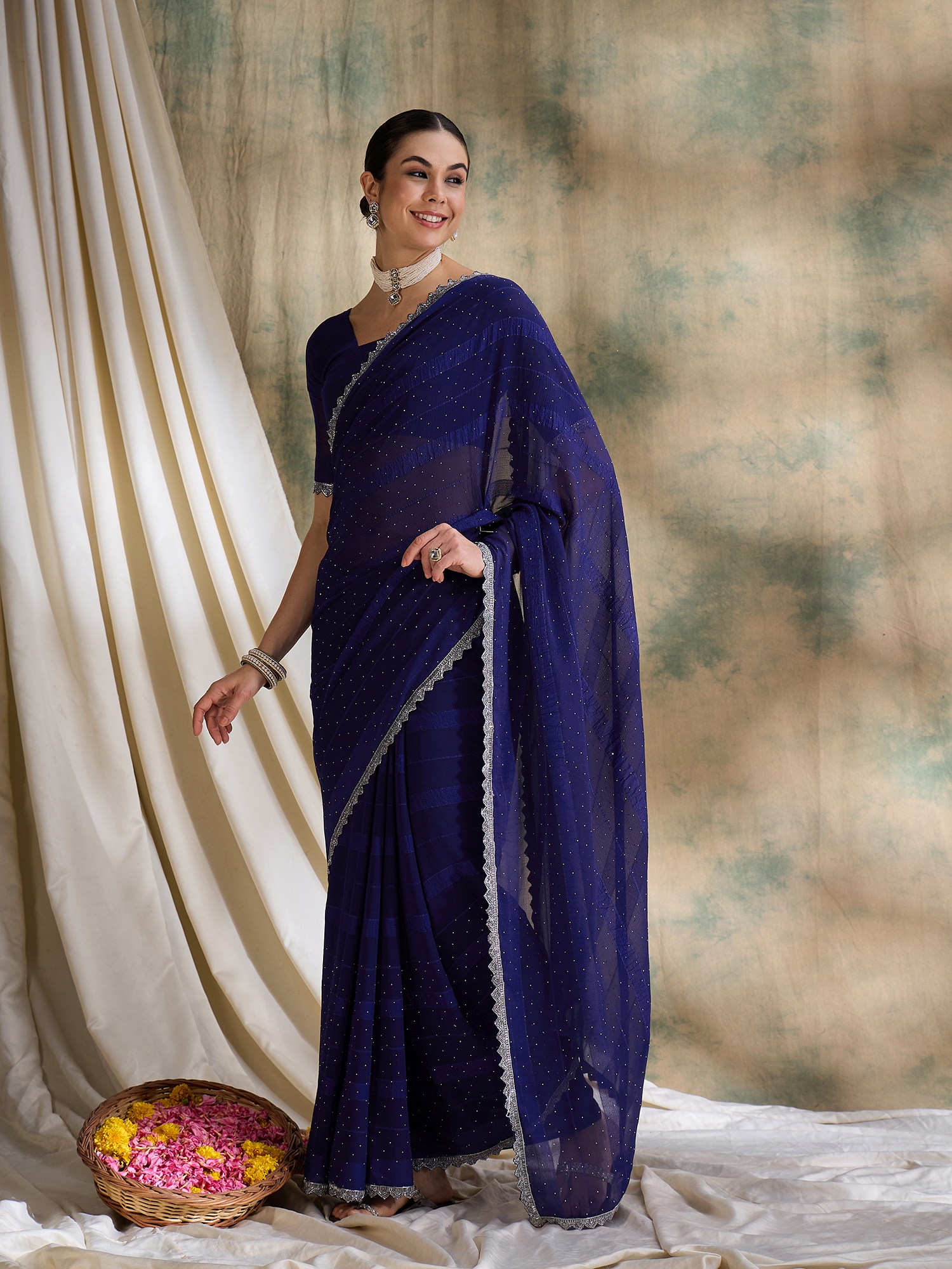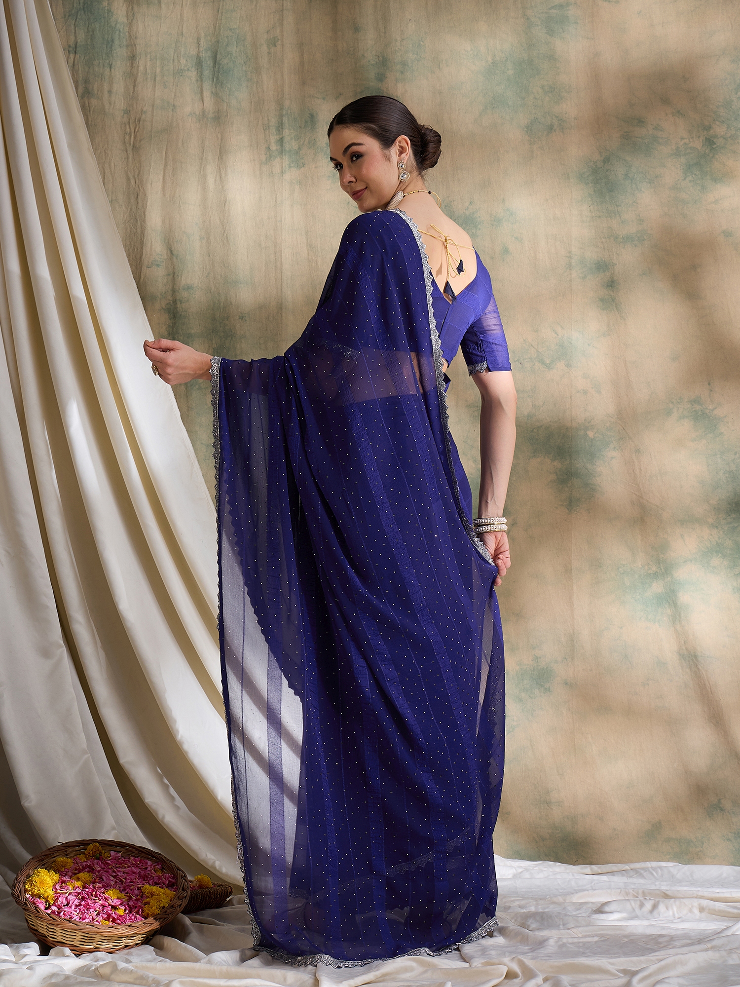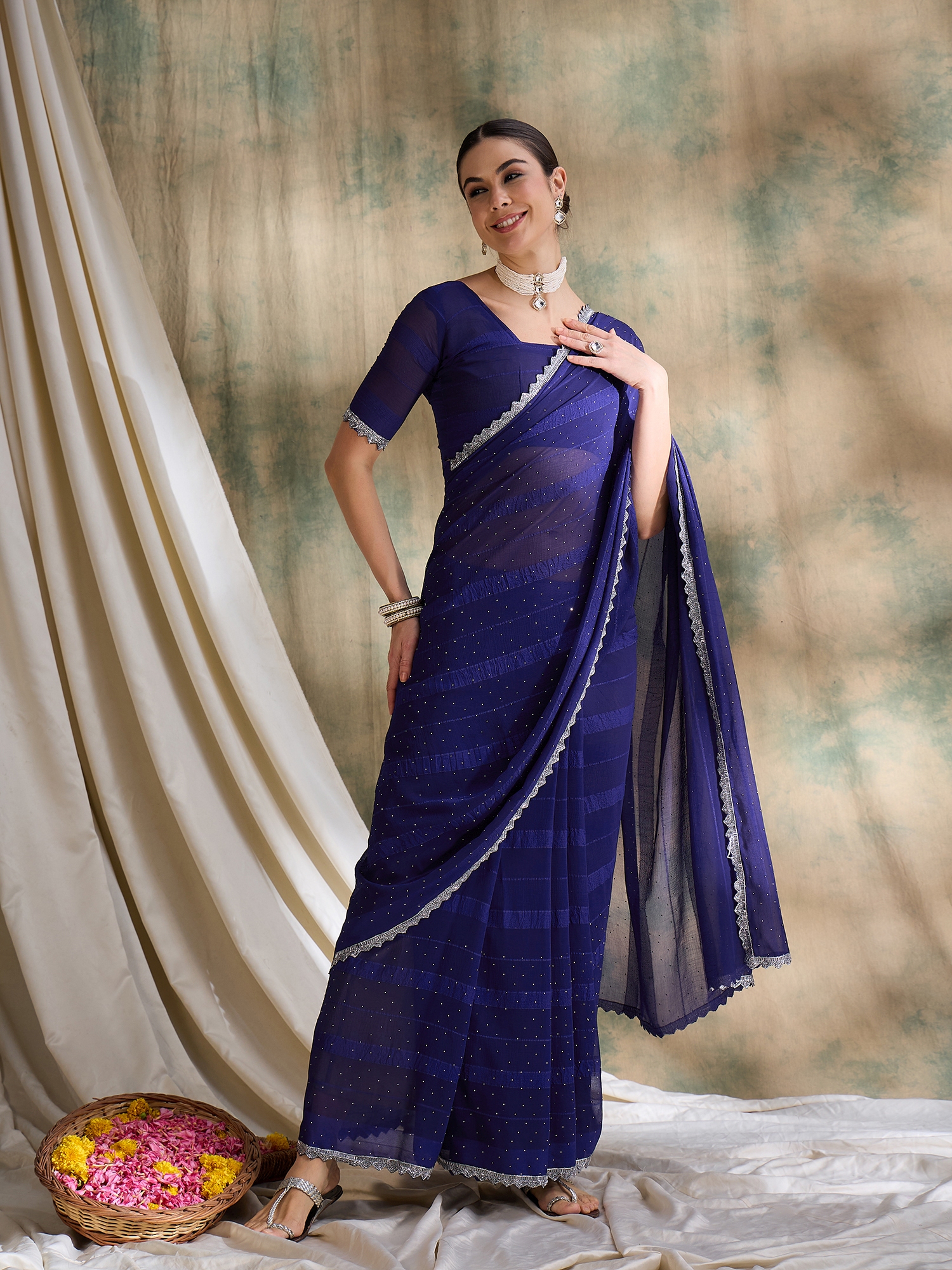 • Saree Fabric-Vichitra Silk ,Blouse Fabric-Silk Blend