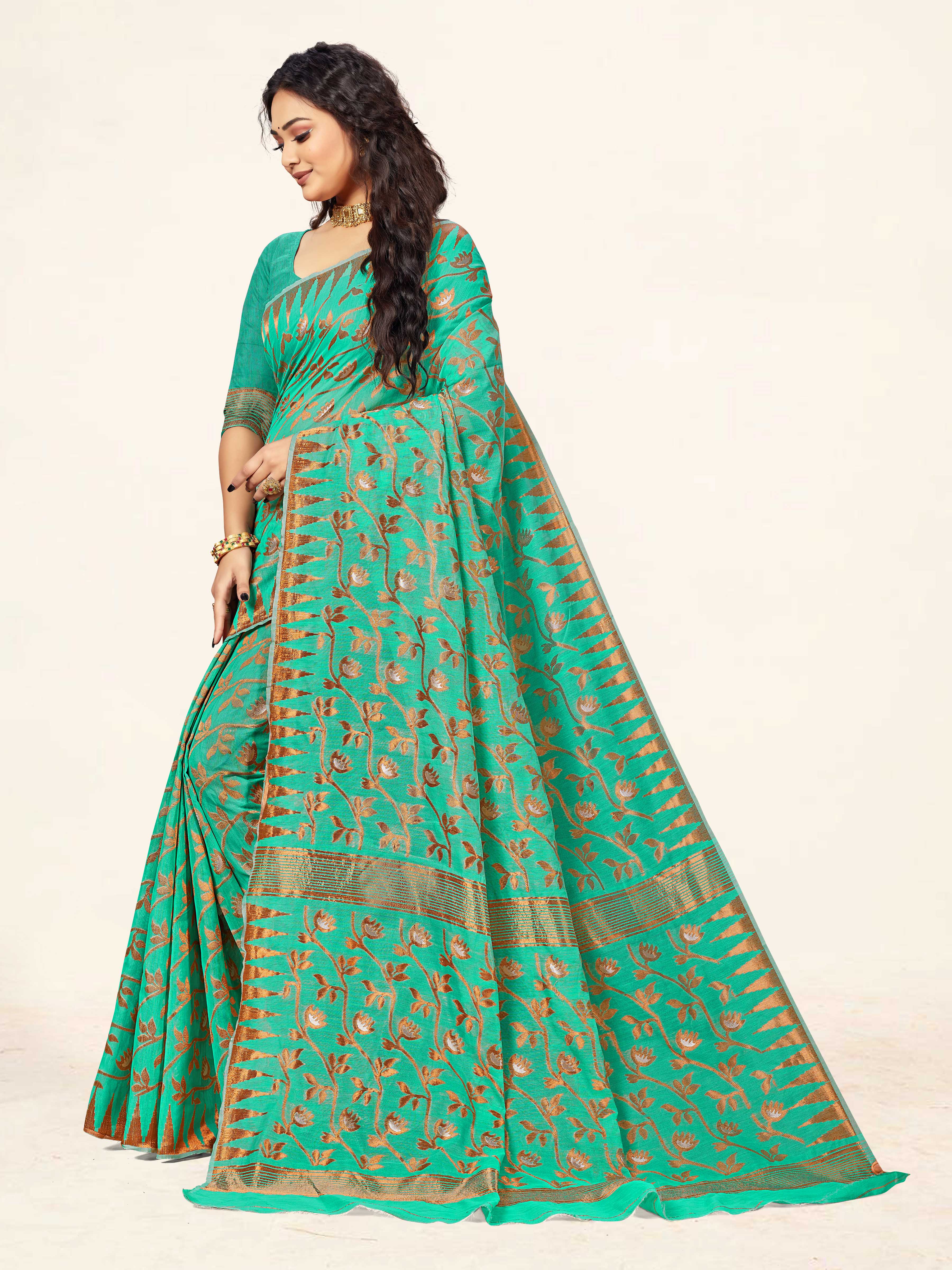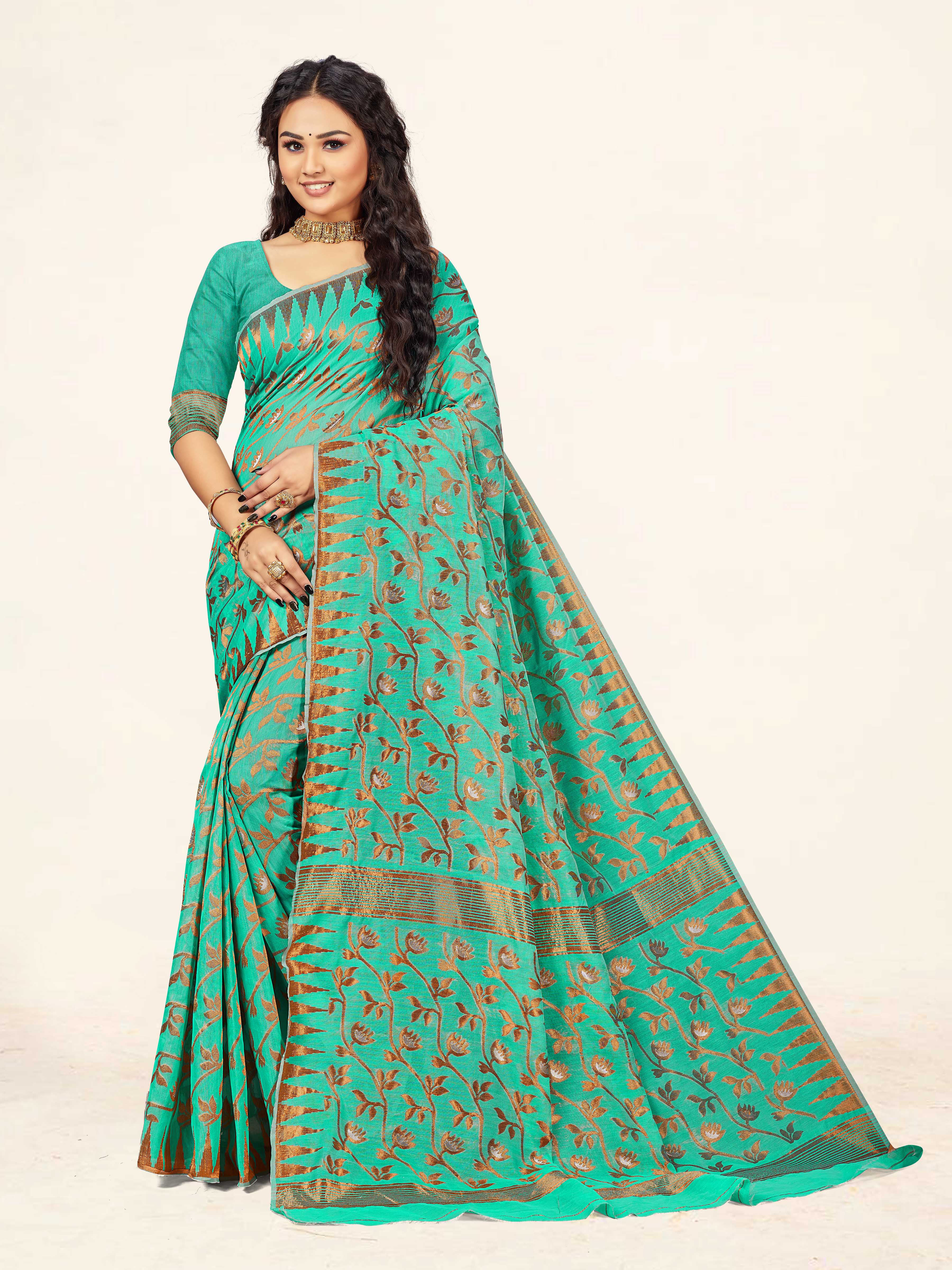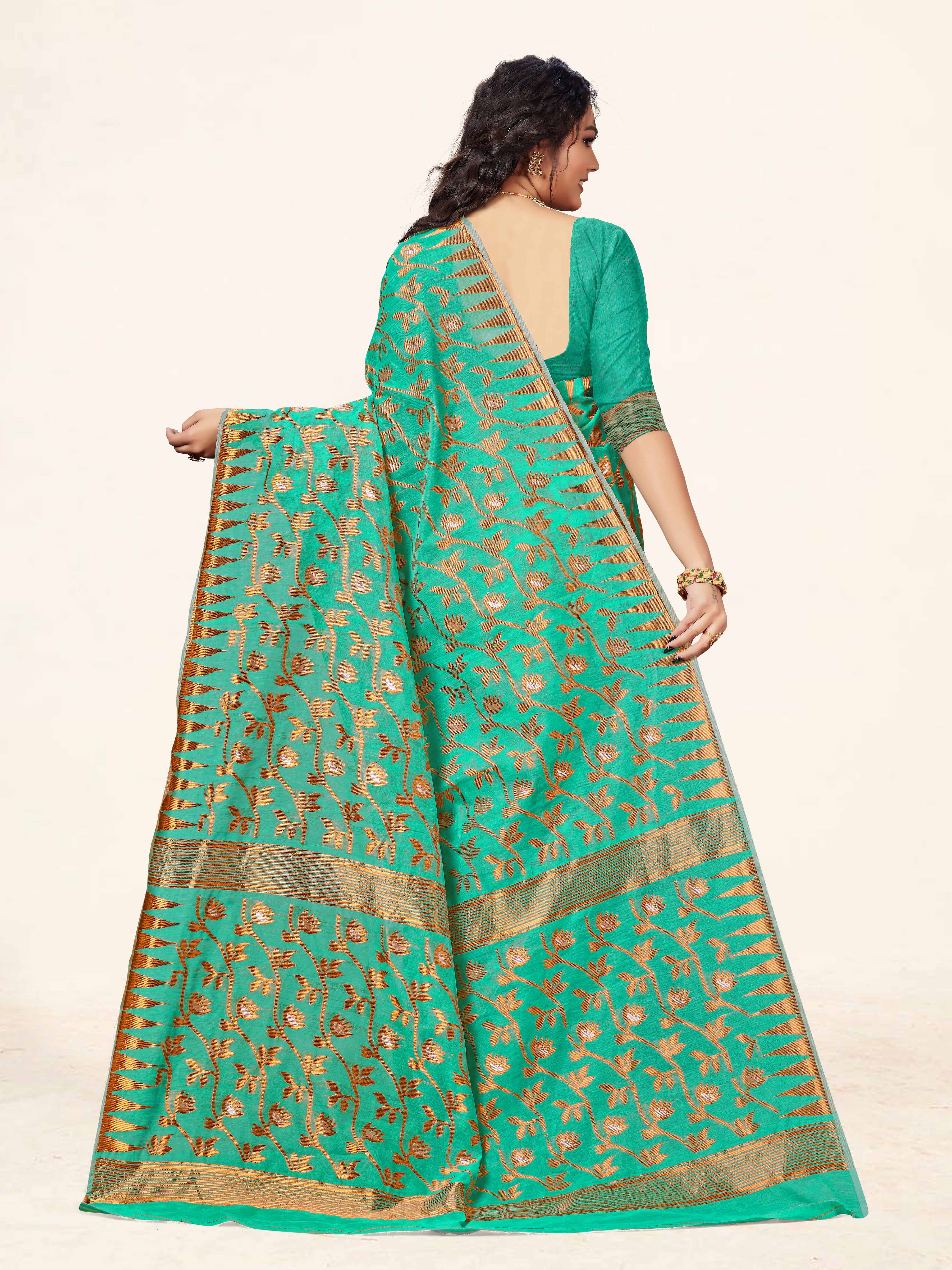 AASTHA FASHION Fashion Dream Womens Sea Green Cotton Saree | Soft & Elegant Traditional Wear