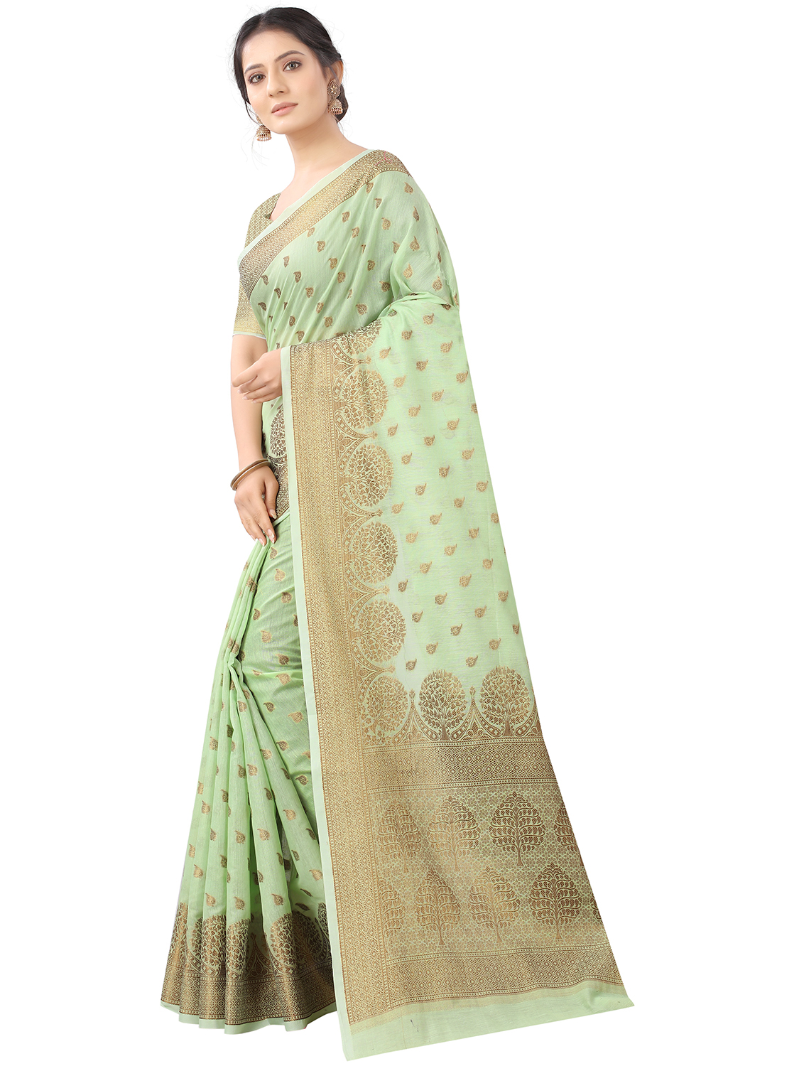 AASTHA FASHION Fashion Dream Womens Sea Green Cotton Silk Saree | Soft & Elegant Traditional Wear