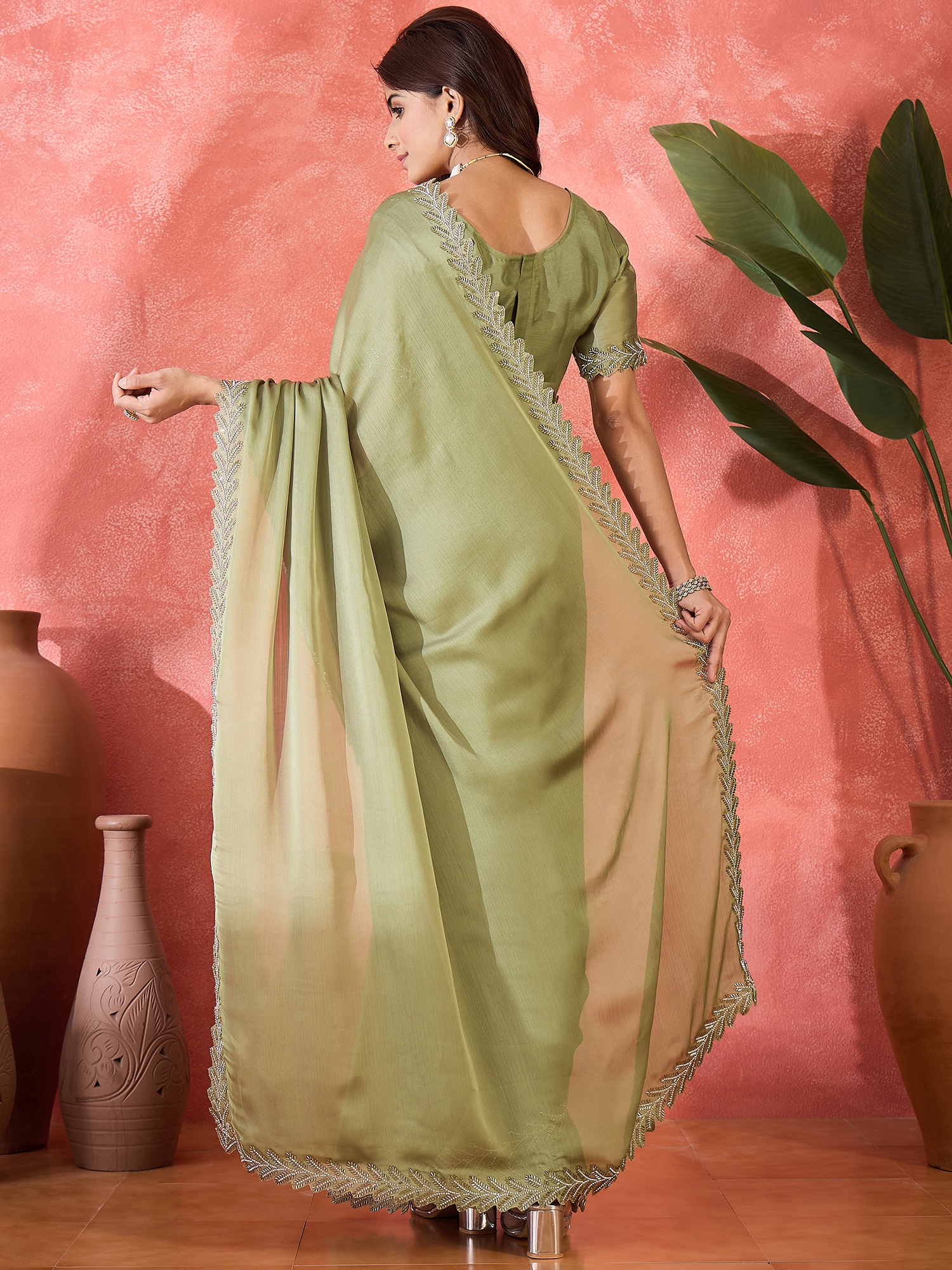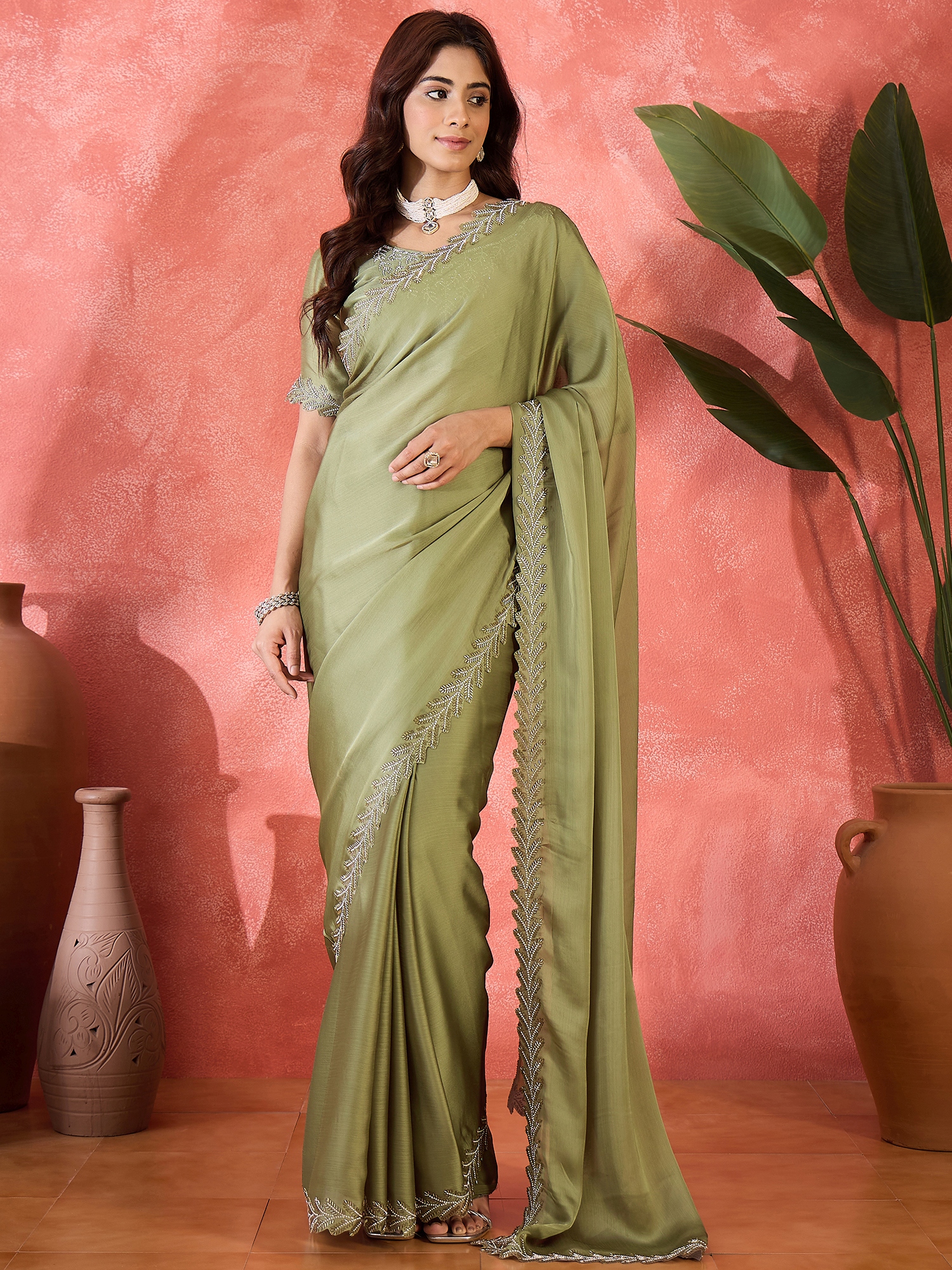 • Saree Fabric-Heavy Satin Chiffon ,Blouse Fabric-Heavy Satin Chiffon